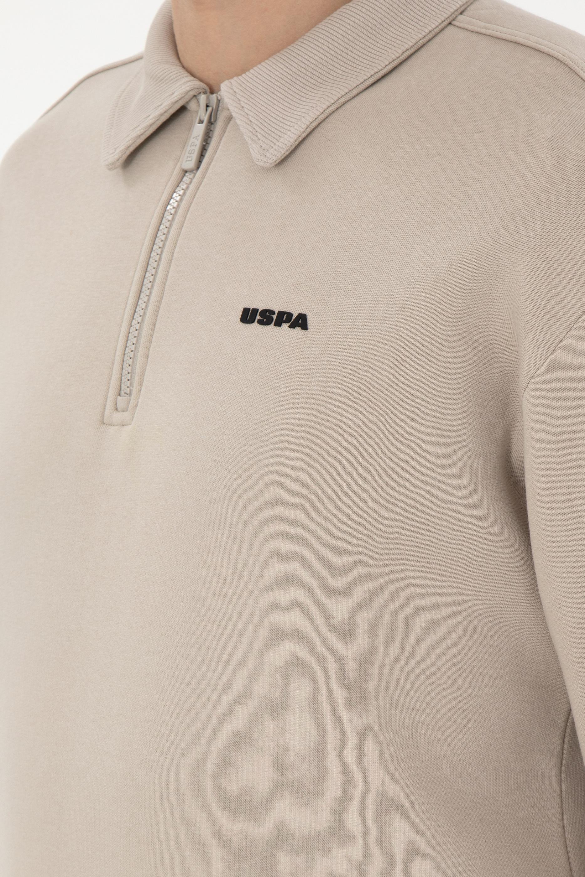 Erkek Comfort Fit Yarım Fermuarlı Taş Basic Sweatshirt