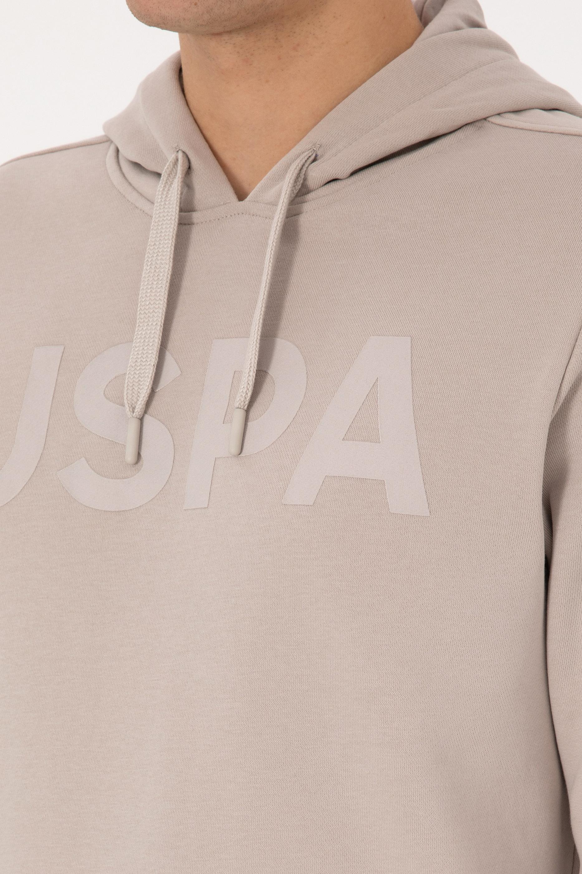 Erkek Slim Fit Kapüşonlu Taş Basic Sweatshirt