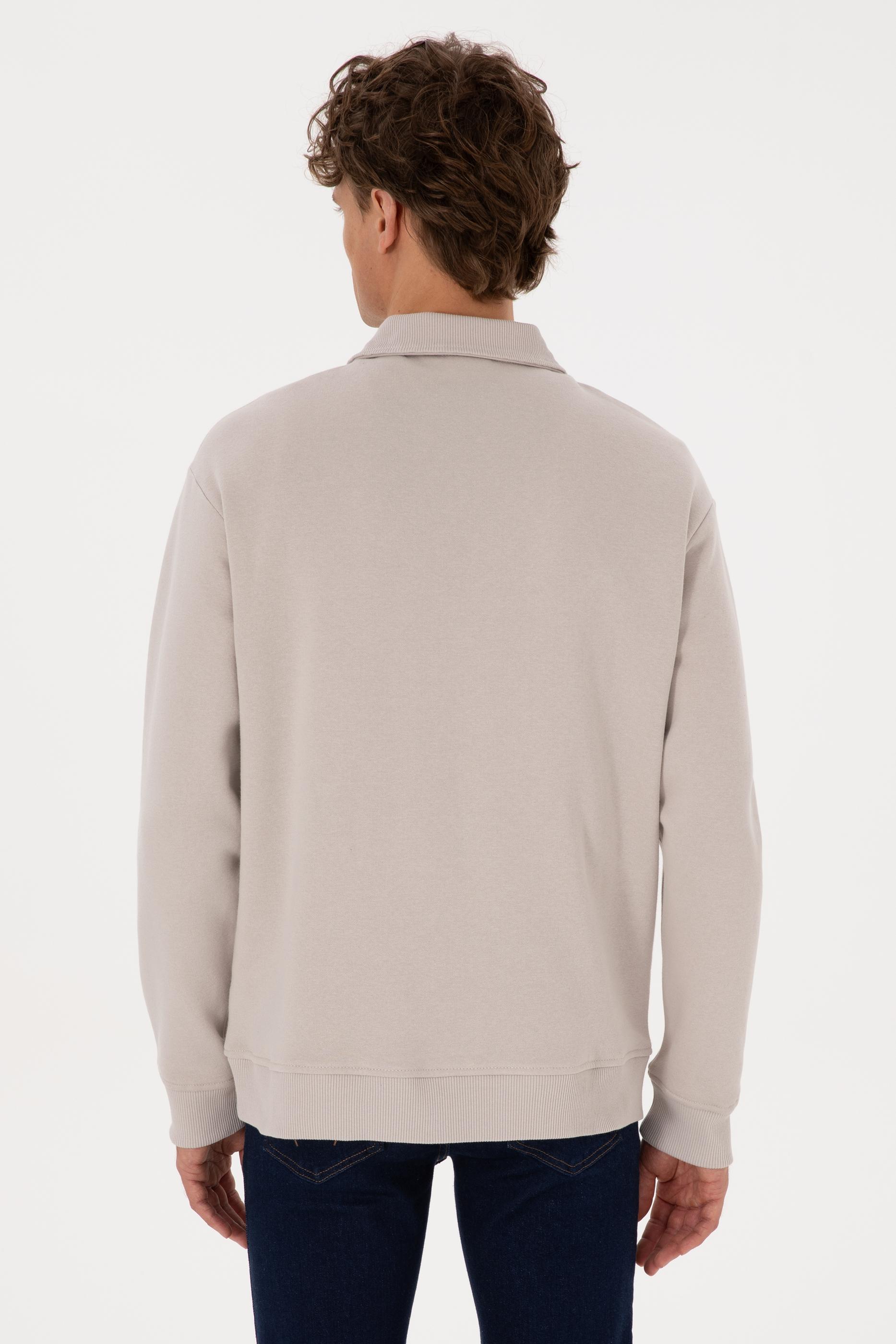 Erkek Regular Fit Yarım Fermuarlı Şardonlu Taş Basic Sweatshirt