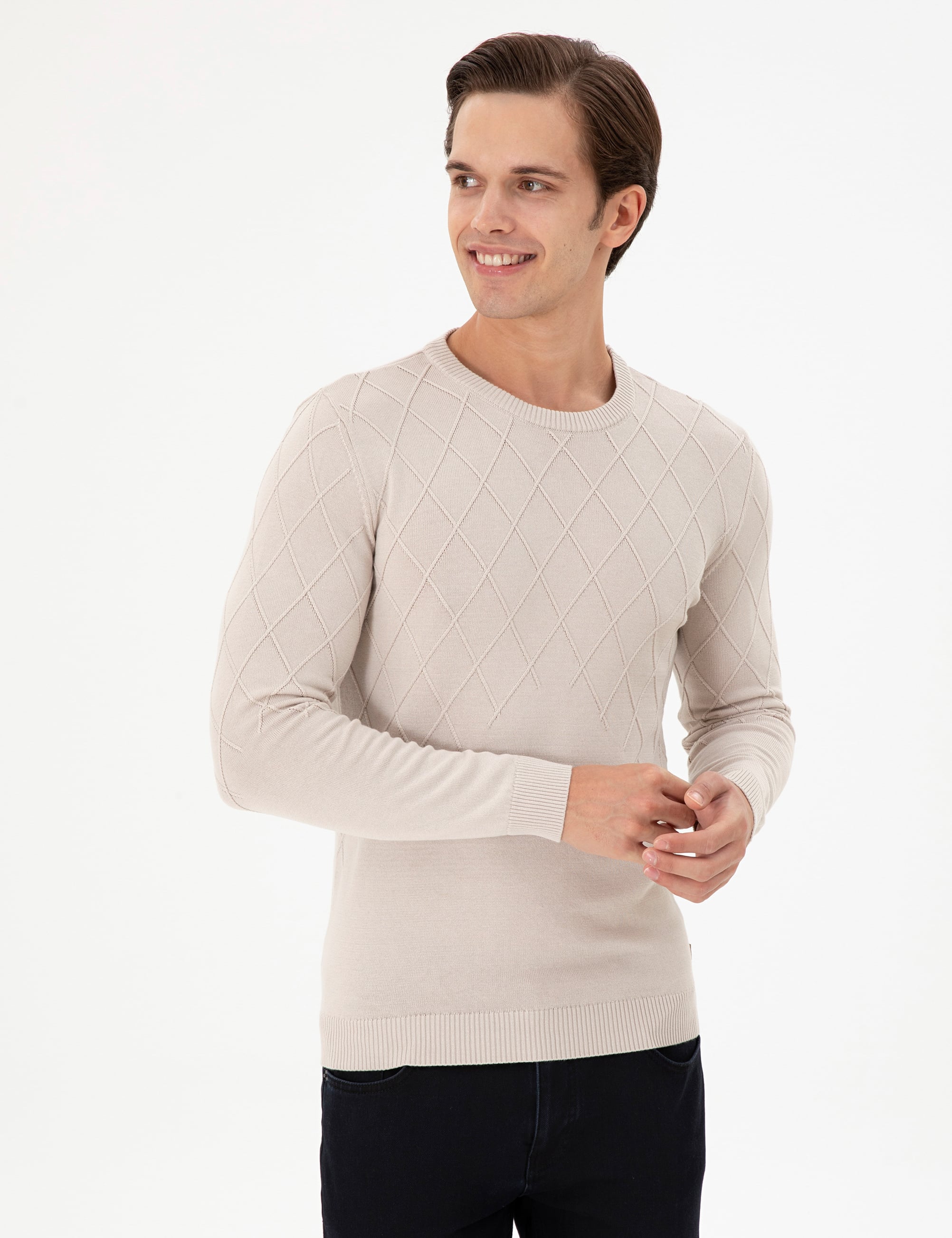 Erkek Slim Fit Bisiklet Yaka Taş Kazak