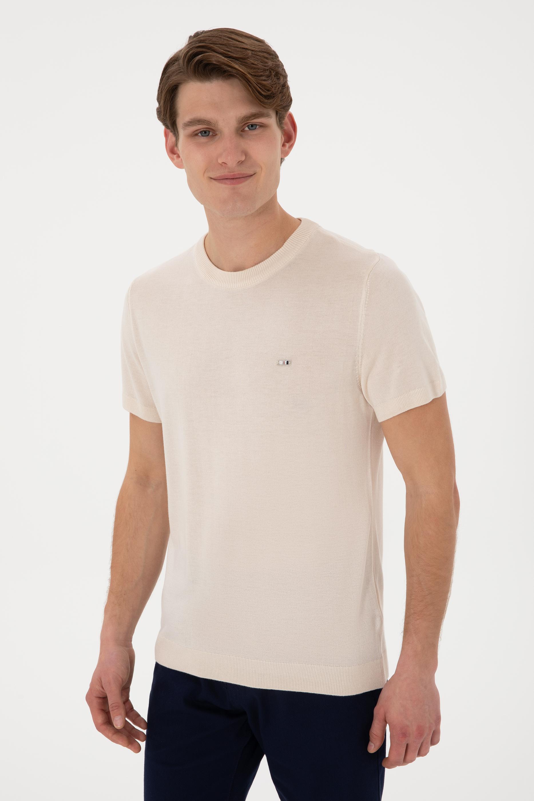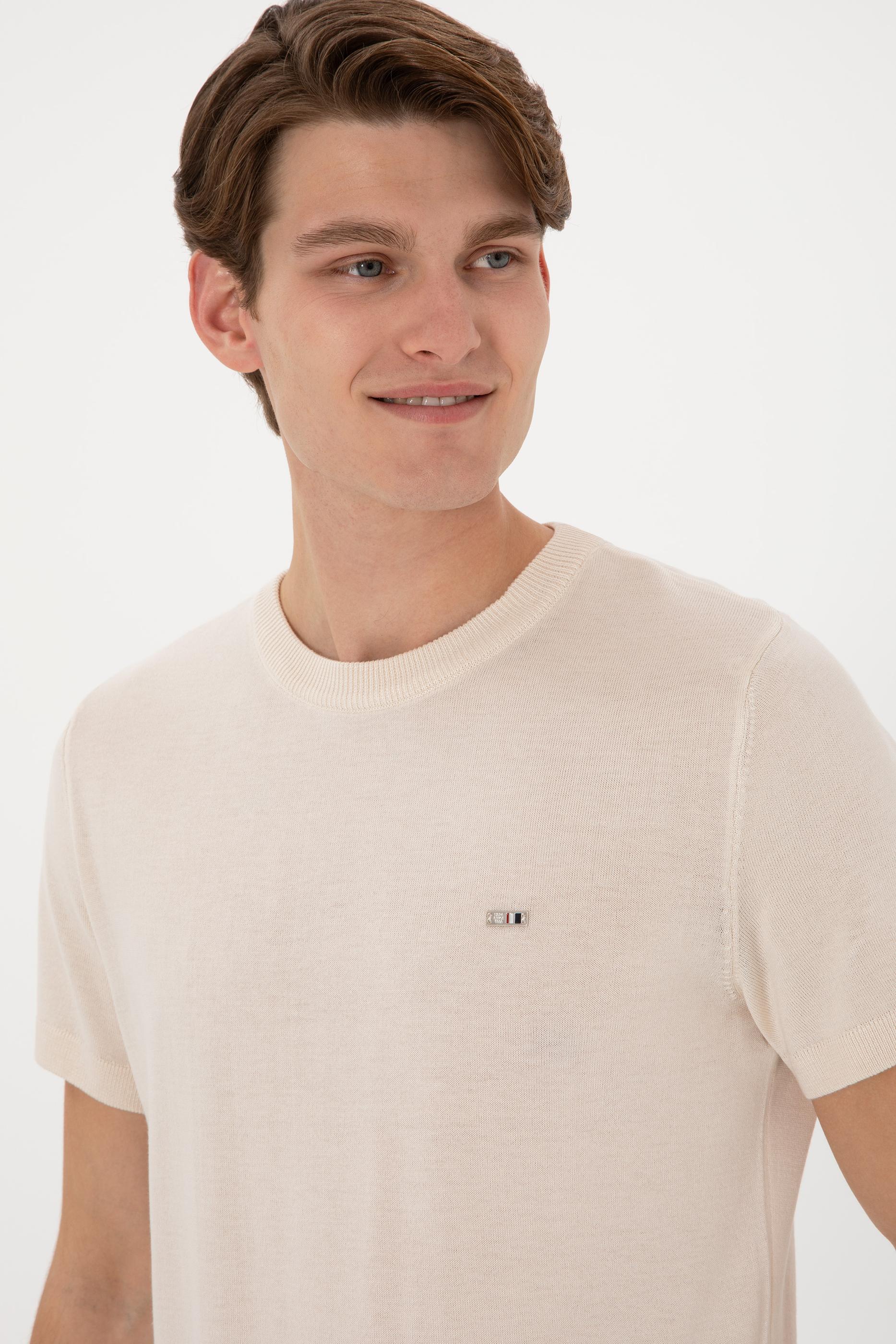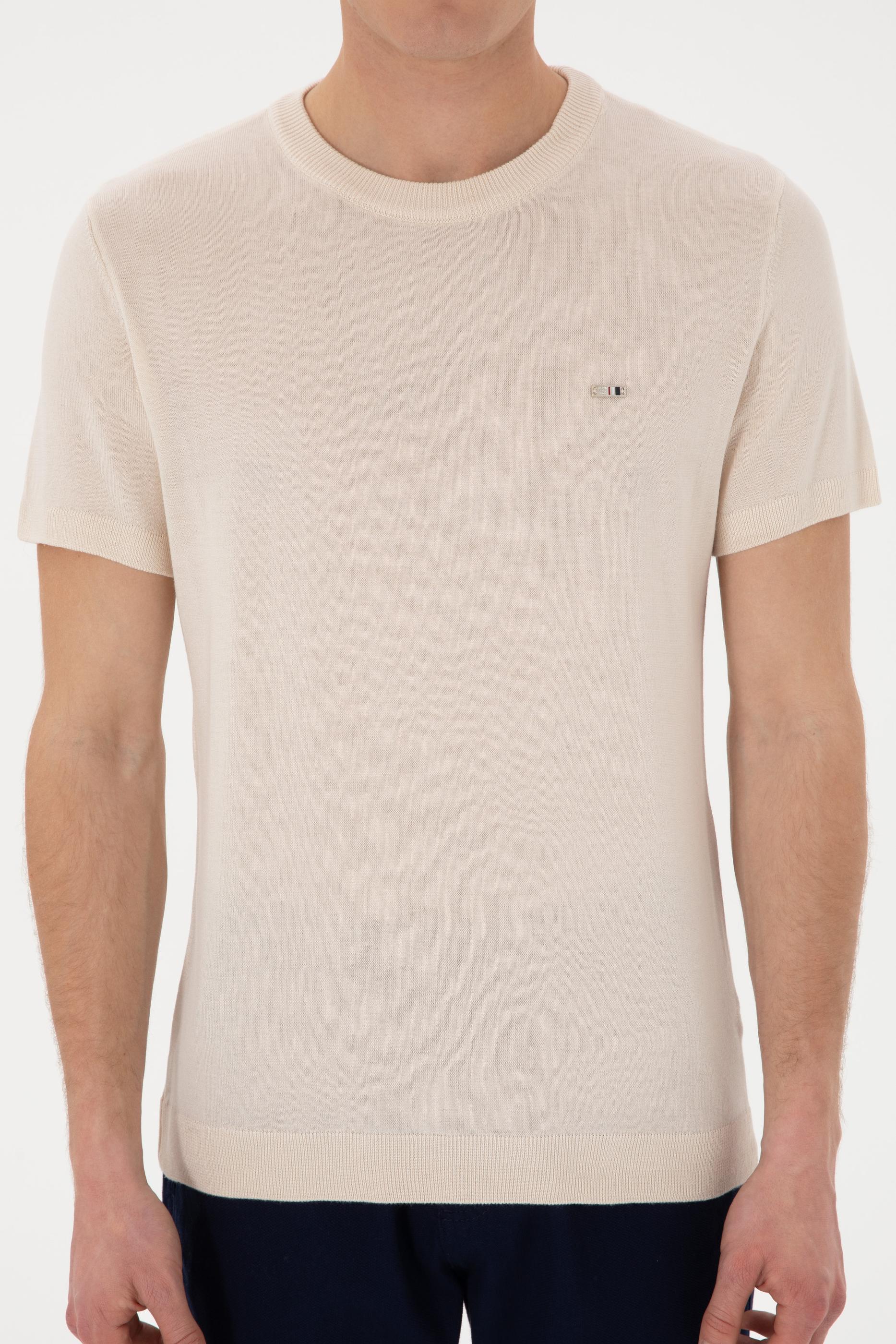 Erkek Slim Fit Bisiklet Yaka Taş Tişört