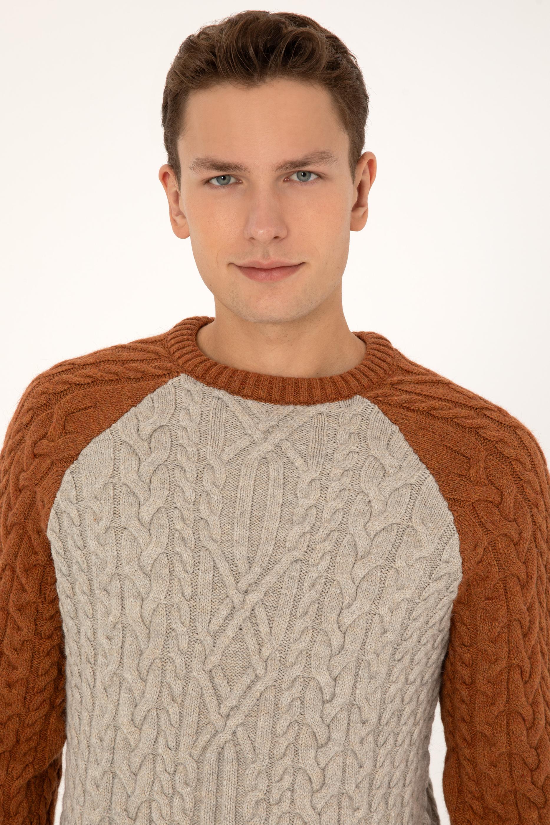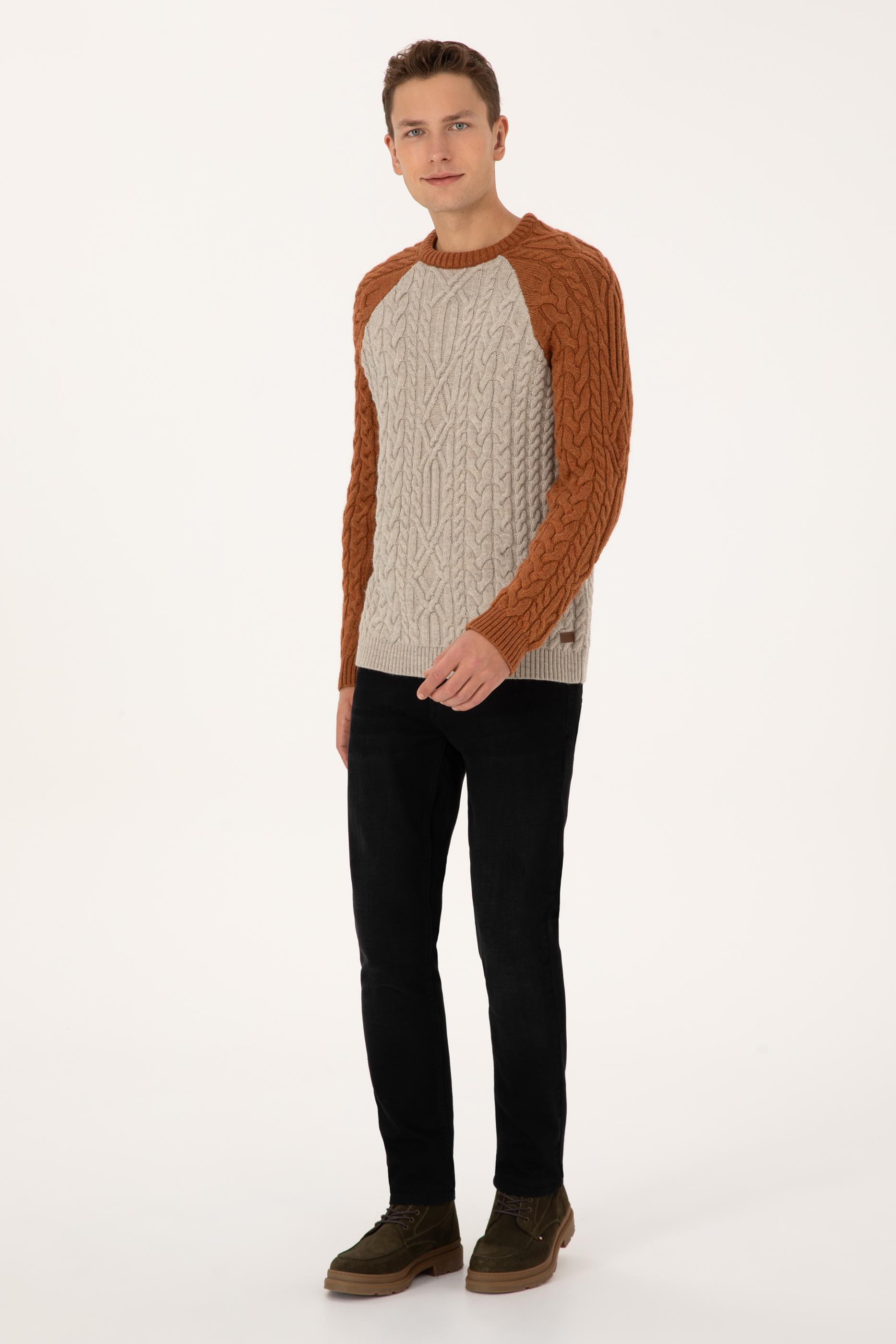 - Erkek Regular Fit Bisiklet Yaka Taş Kazak