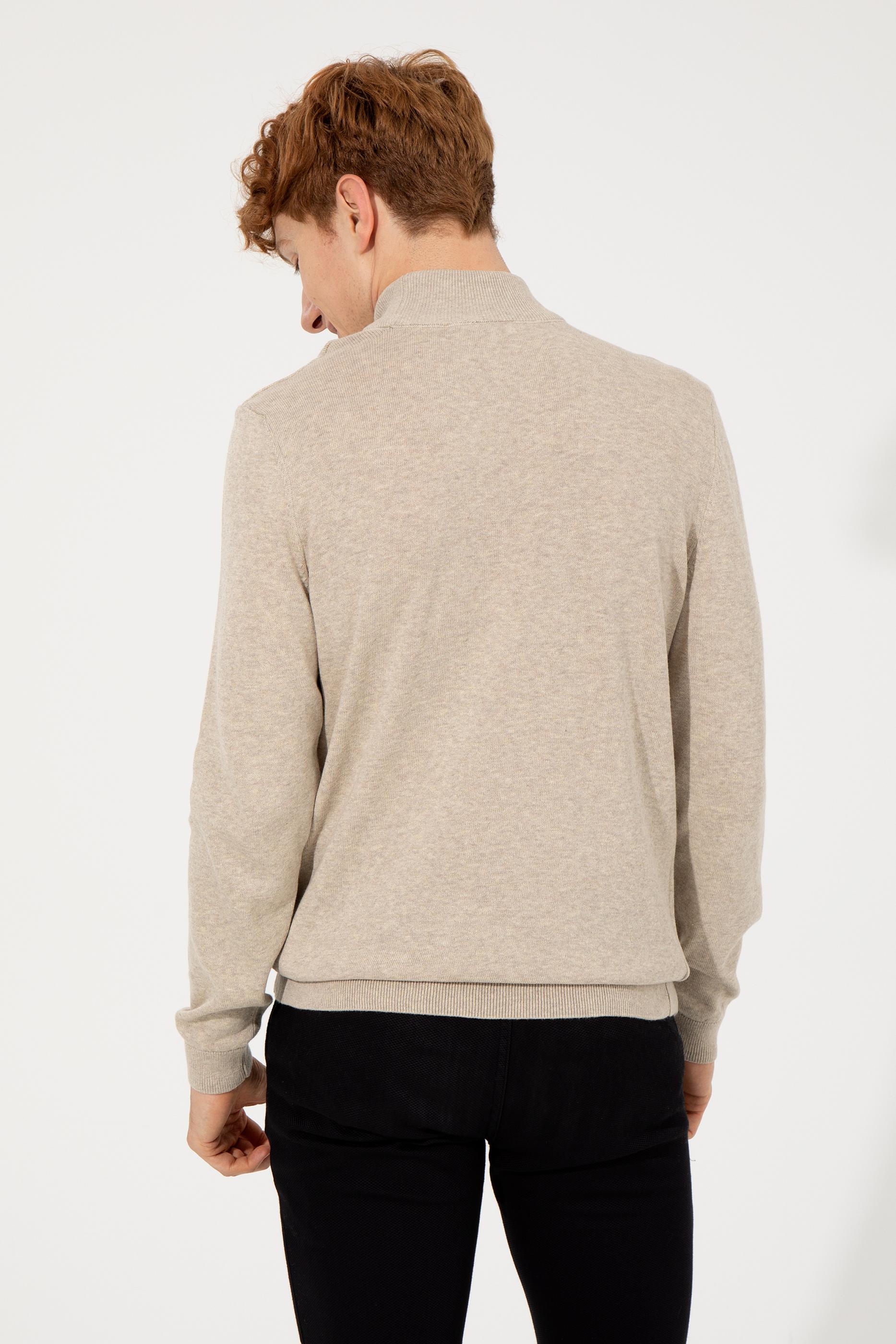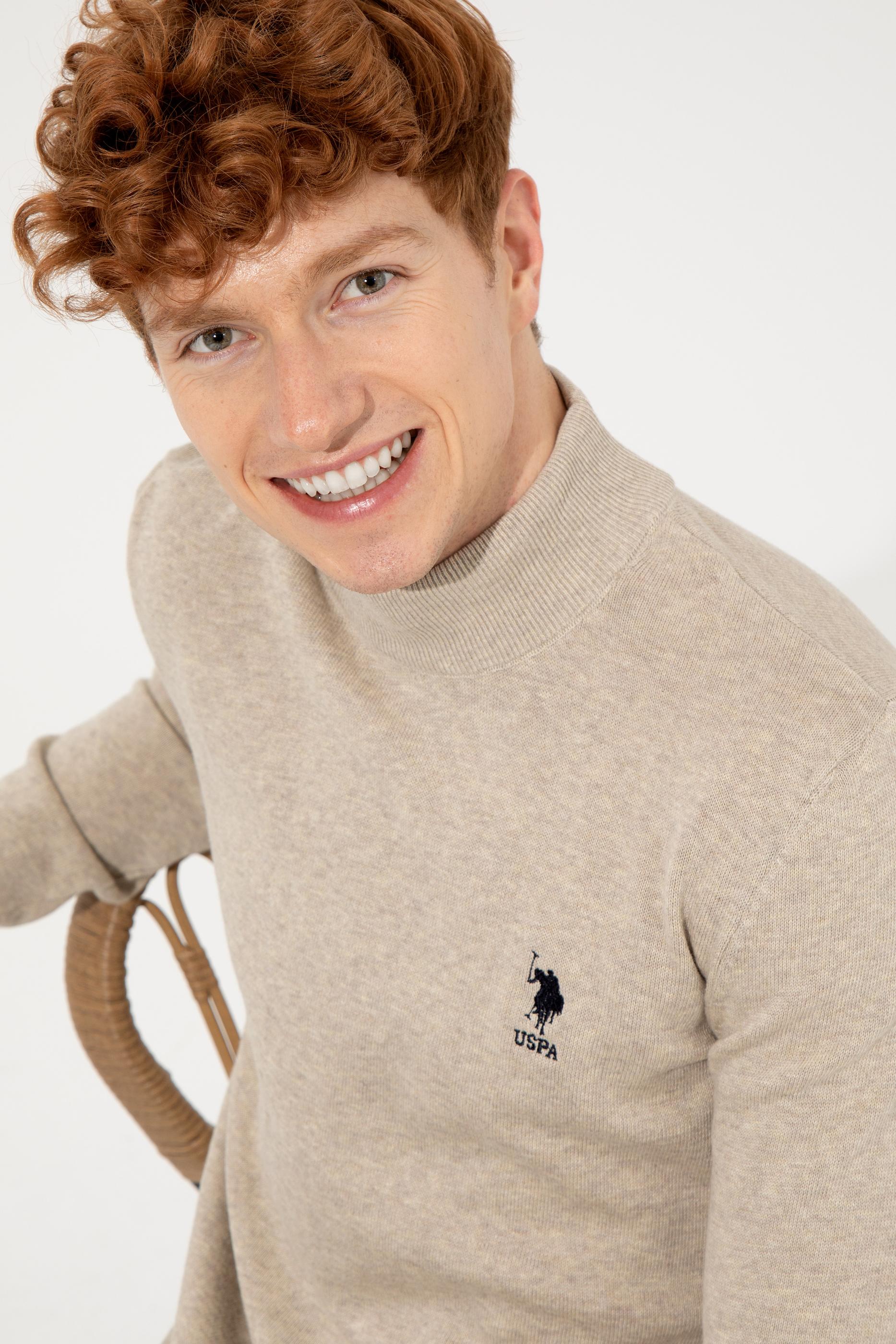 Erkek Taş Melanj Balıkçı Yaka Basic Triko Kazak