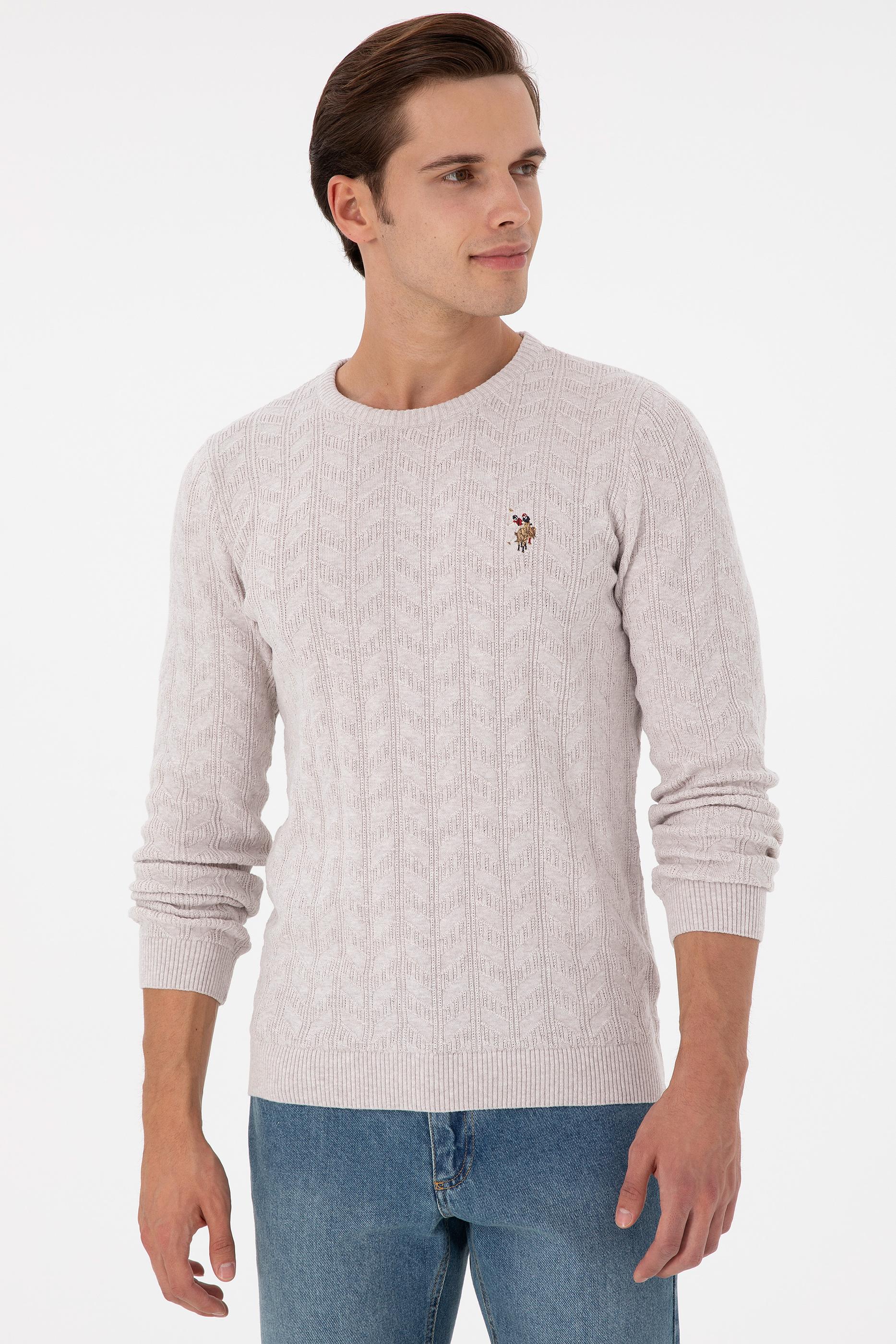 Erkek Slim Fit Bisiklet Yaka Taş Melanj Basic Kazak - 50288883046