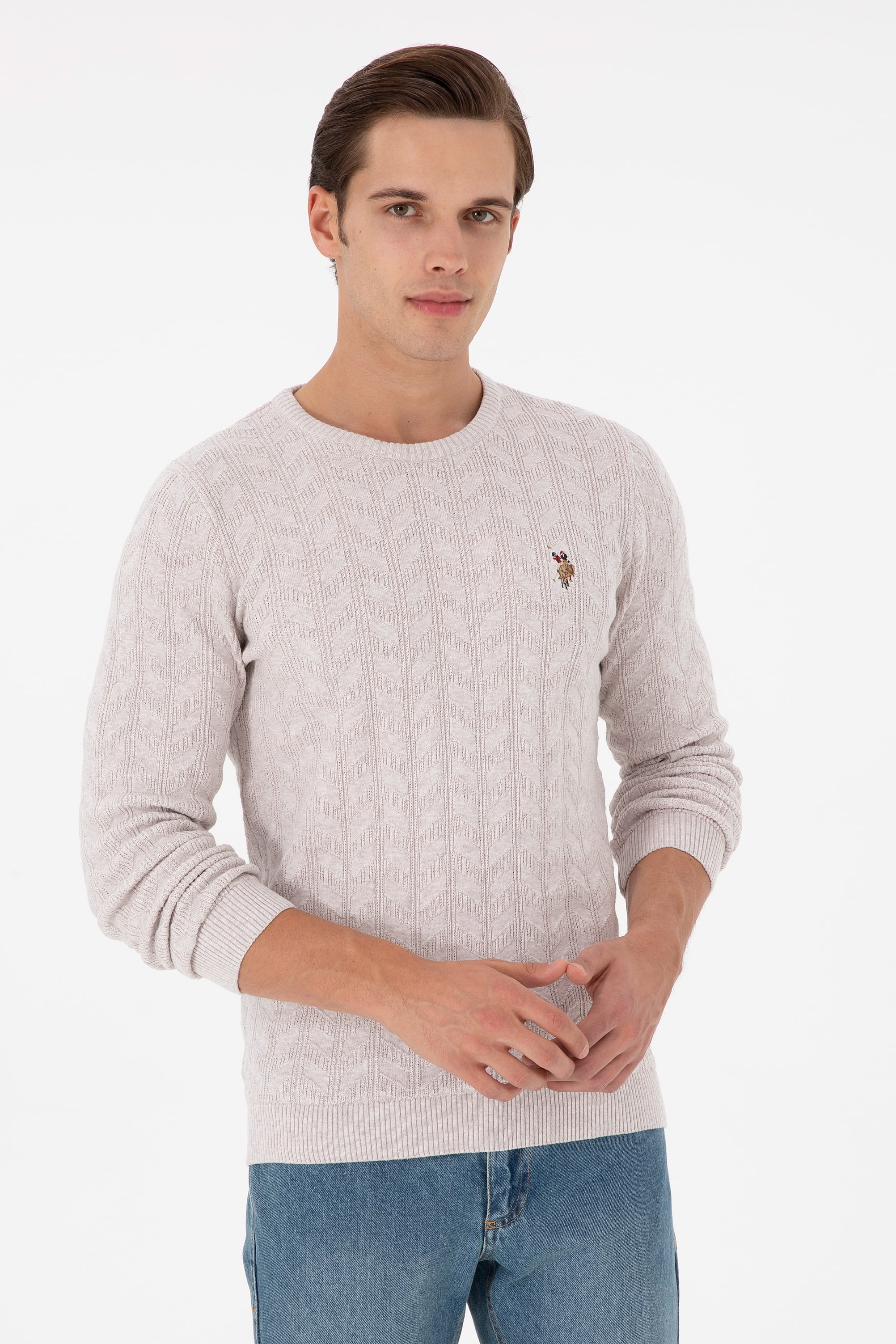 Erkek Slim Fit Bisiklet Yaka Taş Melanj Basic Kazak