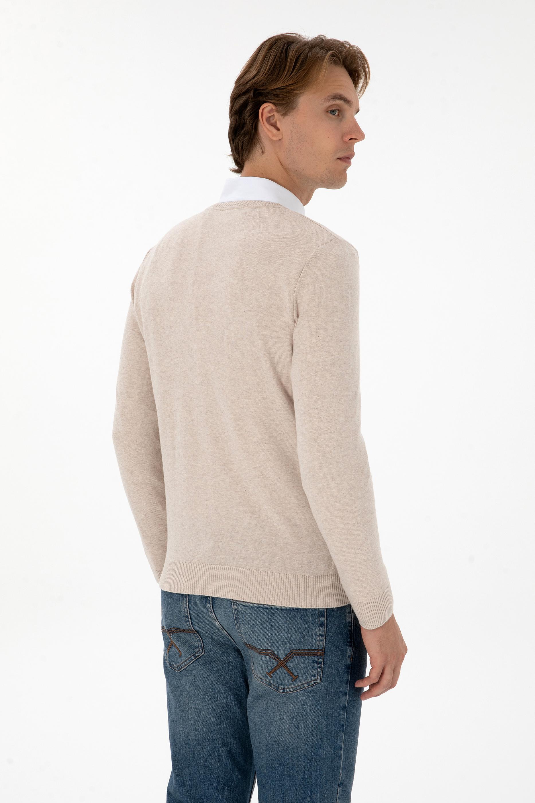 - Erkek Slim Fit V Yaka Taş Melanj Basic Kazak