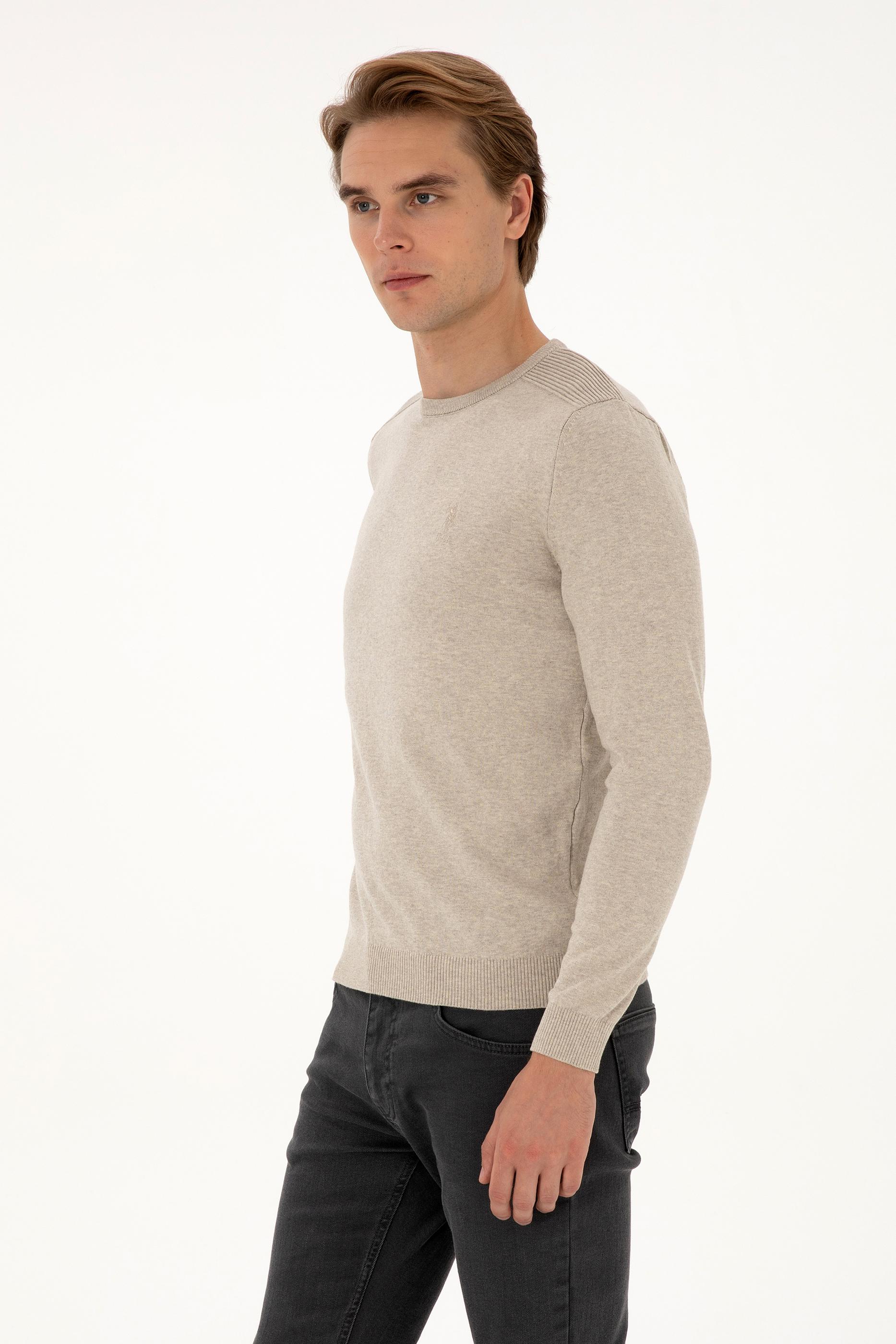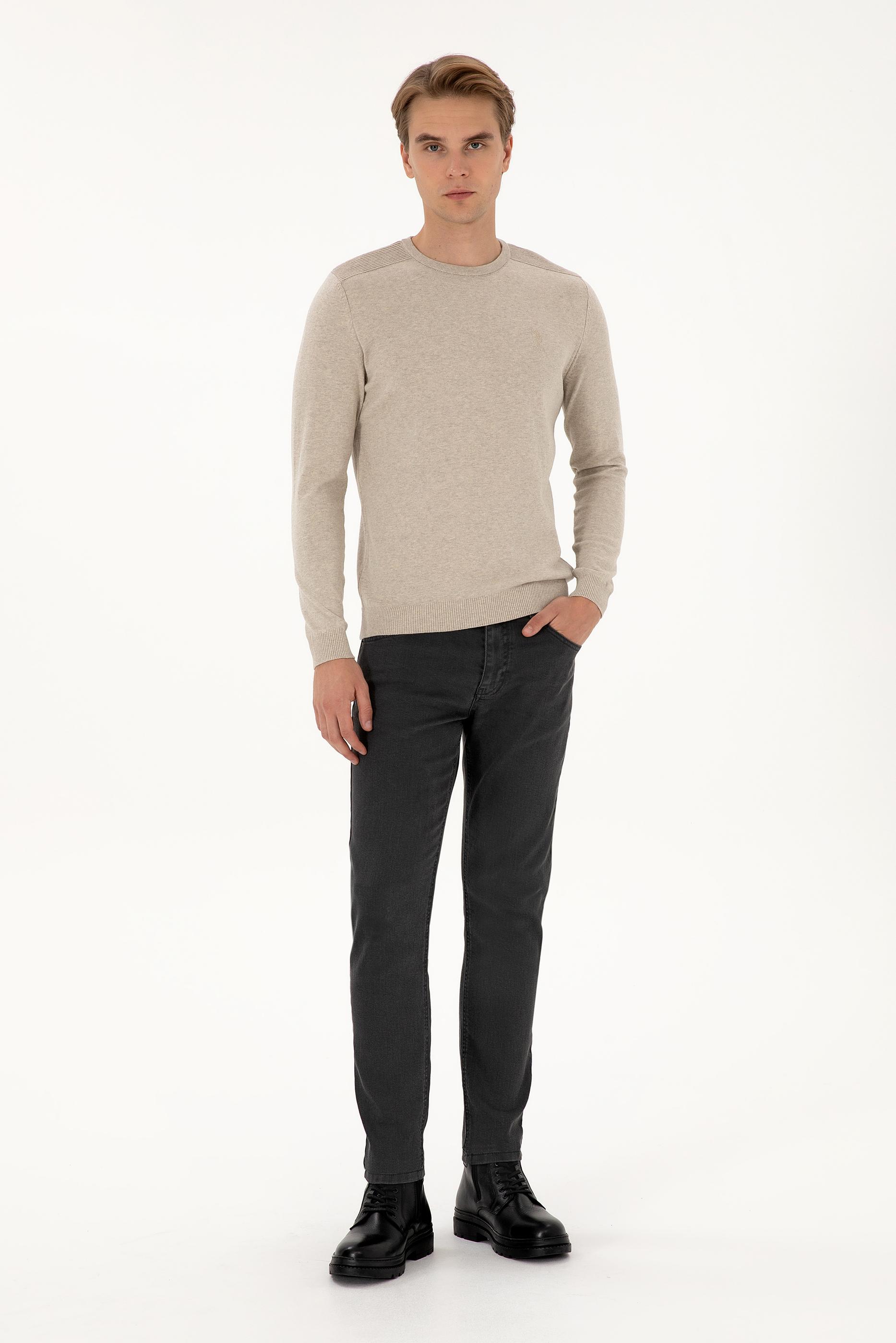 Erkek Slim Fit Bisiklet Yaka Taş Melanj Basic Kazak