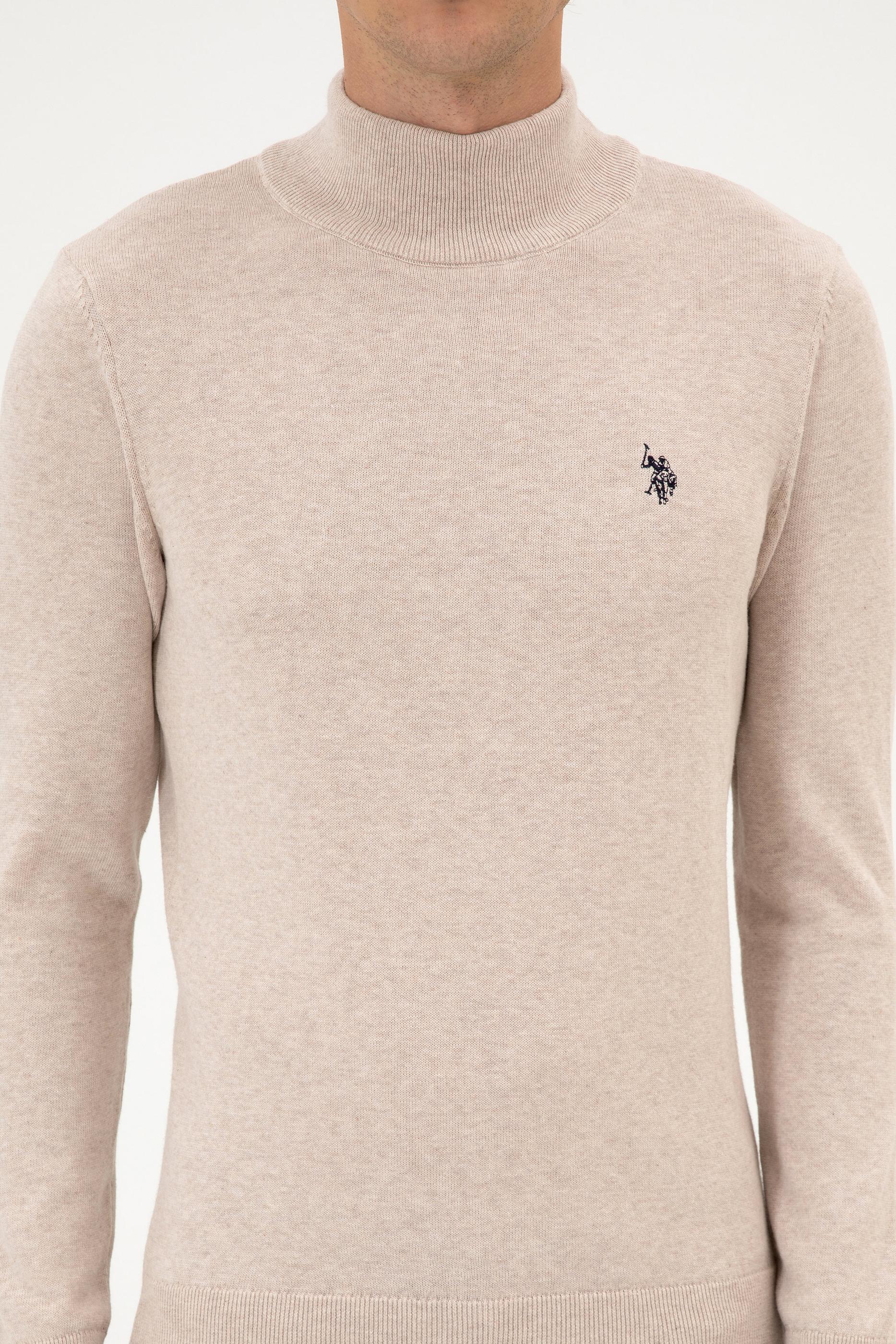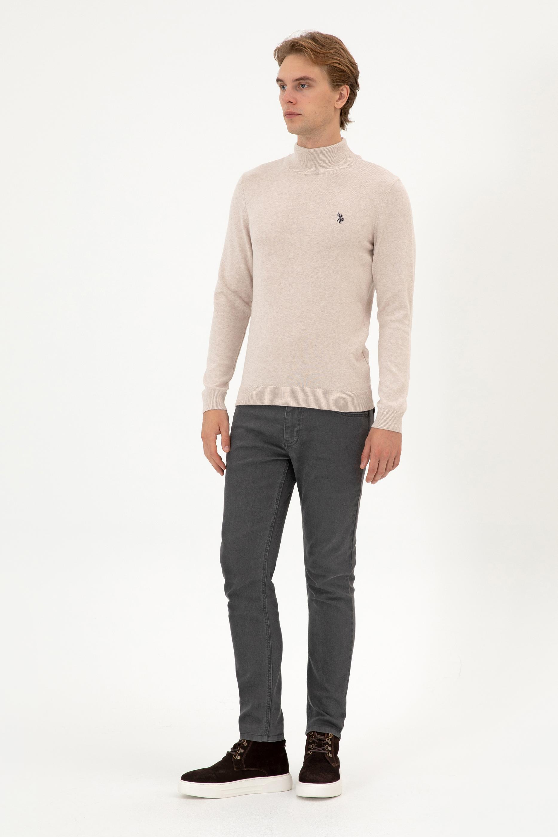 Erkek Slim Fit Boğazlı Taş Melanj Basic Kazak