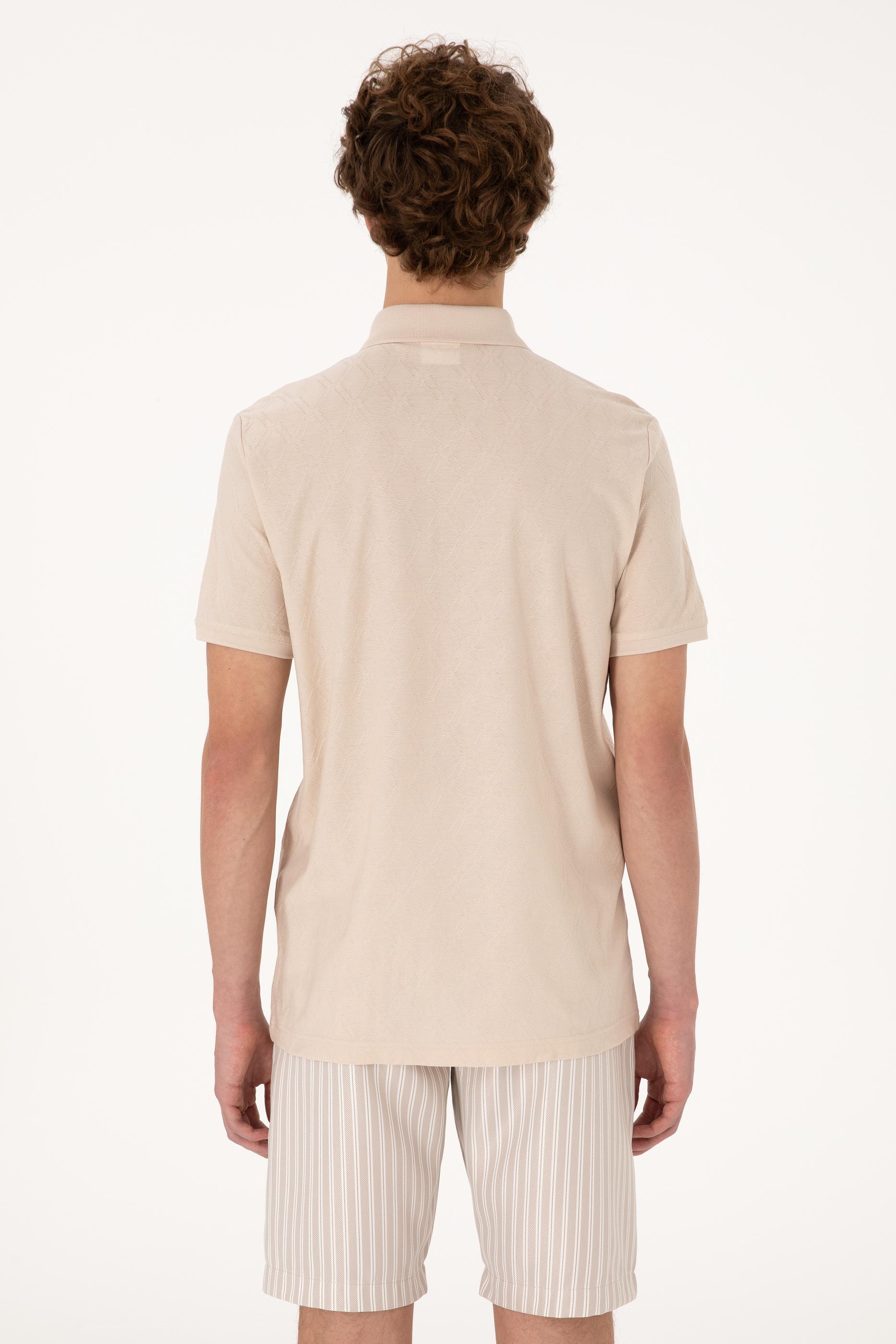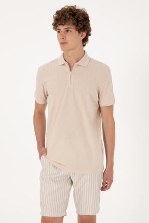 - Erkek Regular Fit Fermuarlı Taş Desenli Tişört