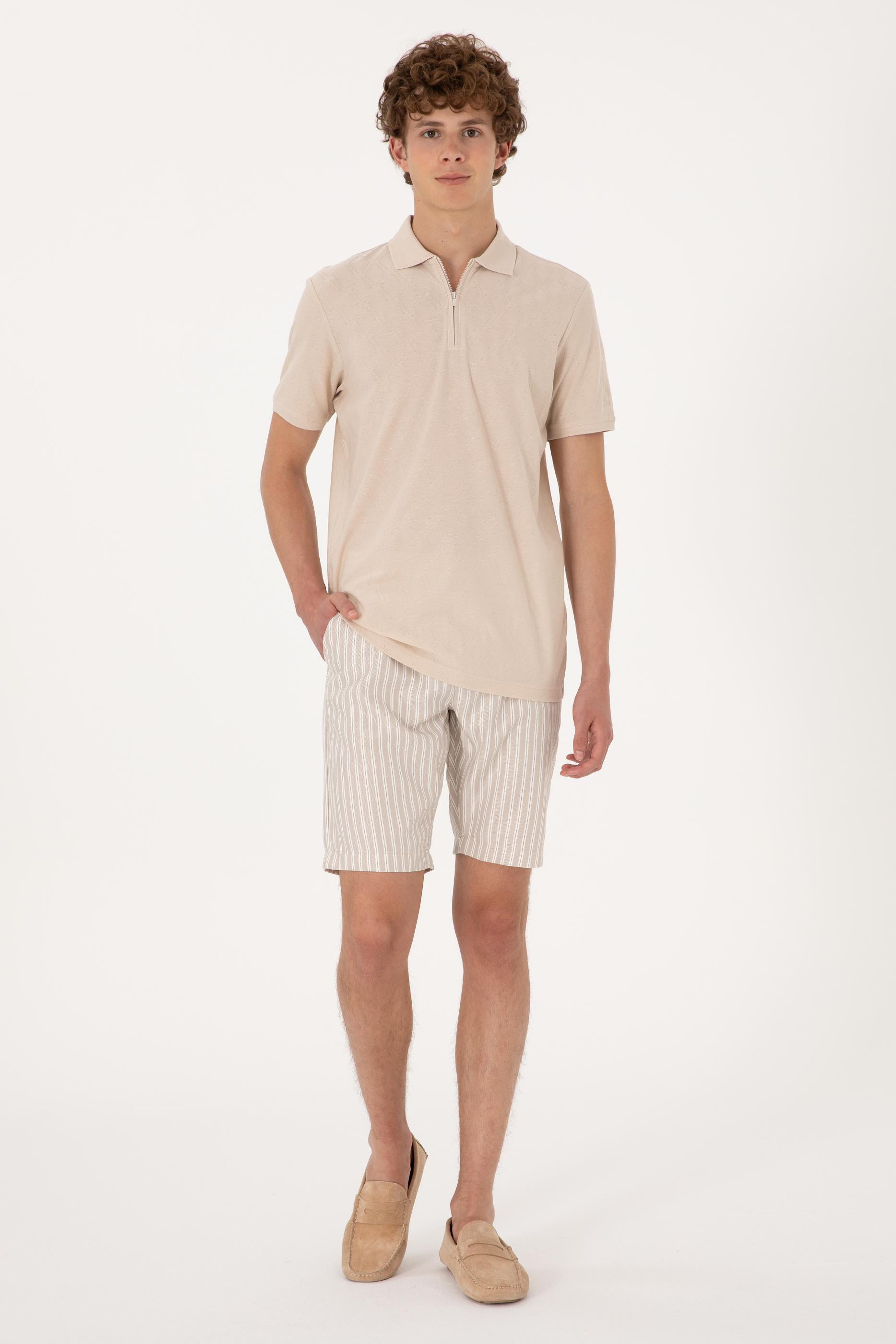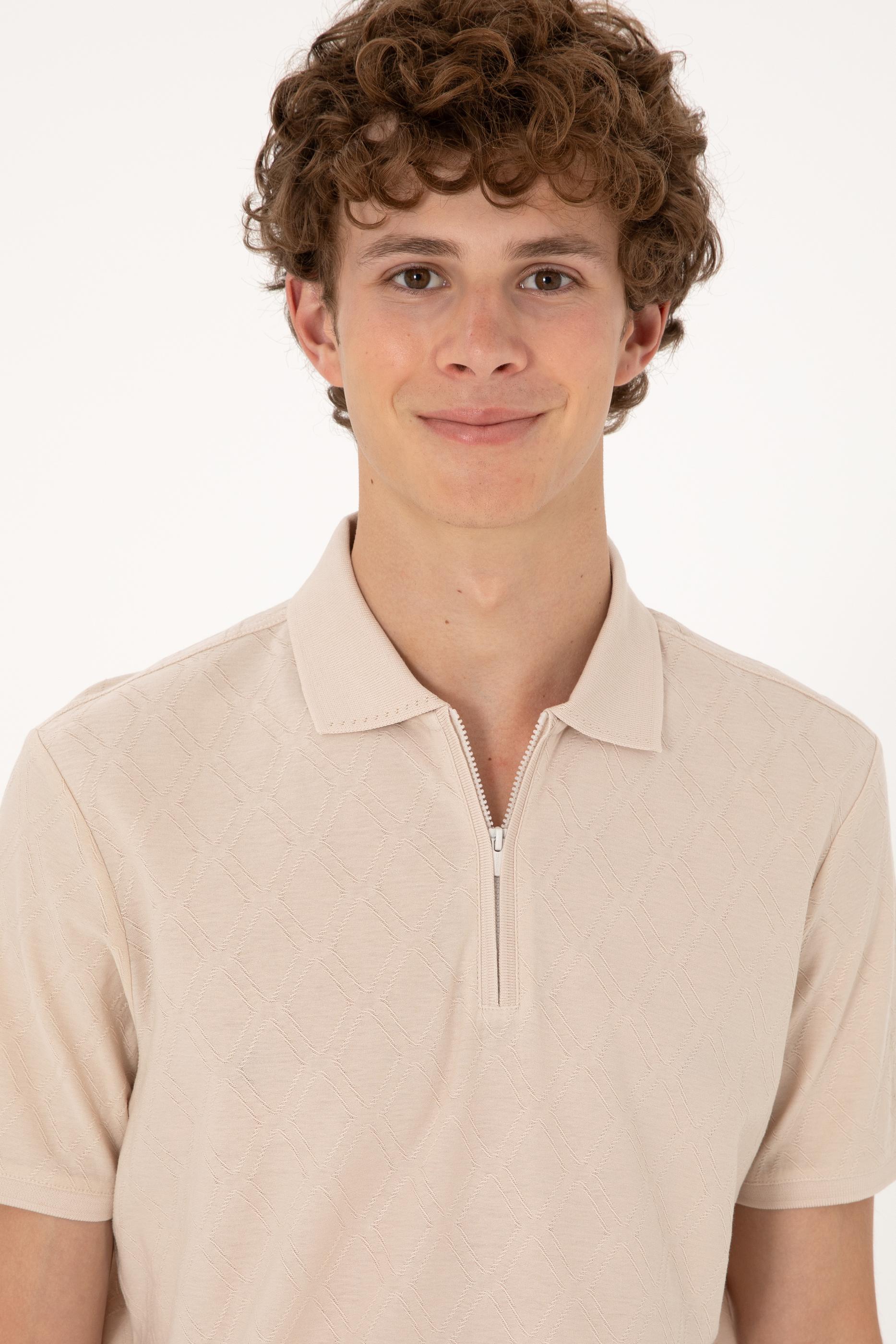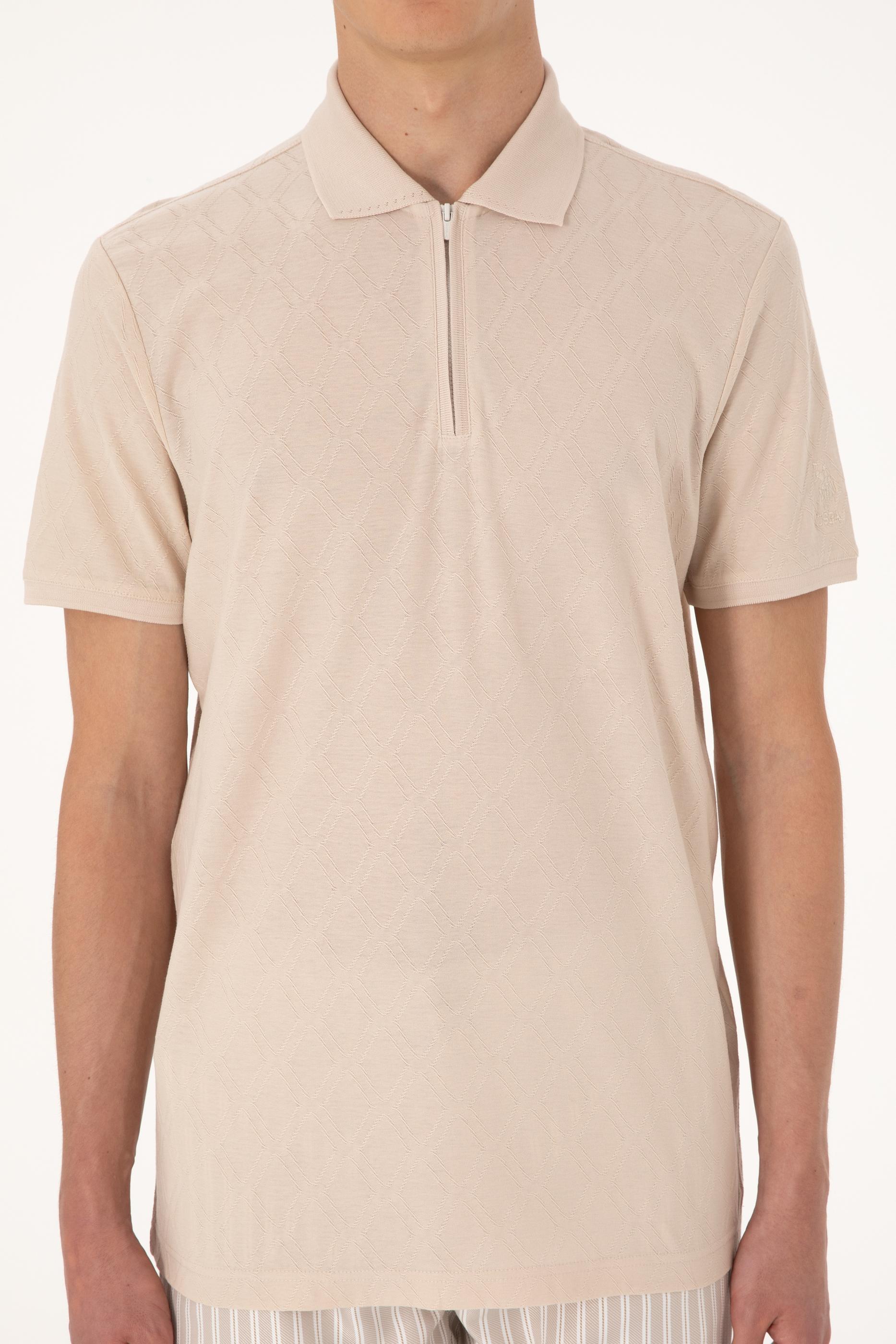 Erkek Regular Fit Fermuarlı Taş Desenli Tişört