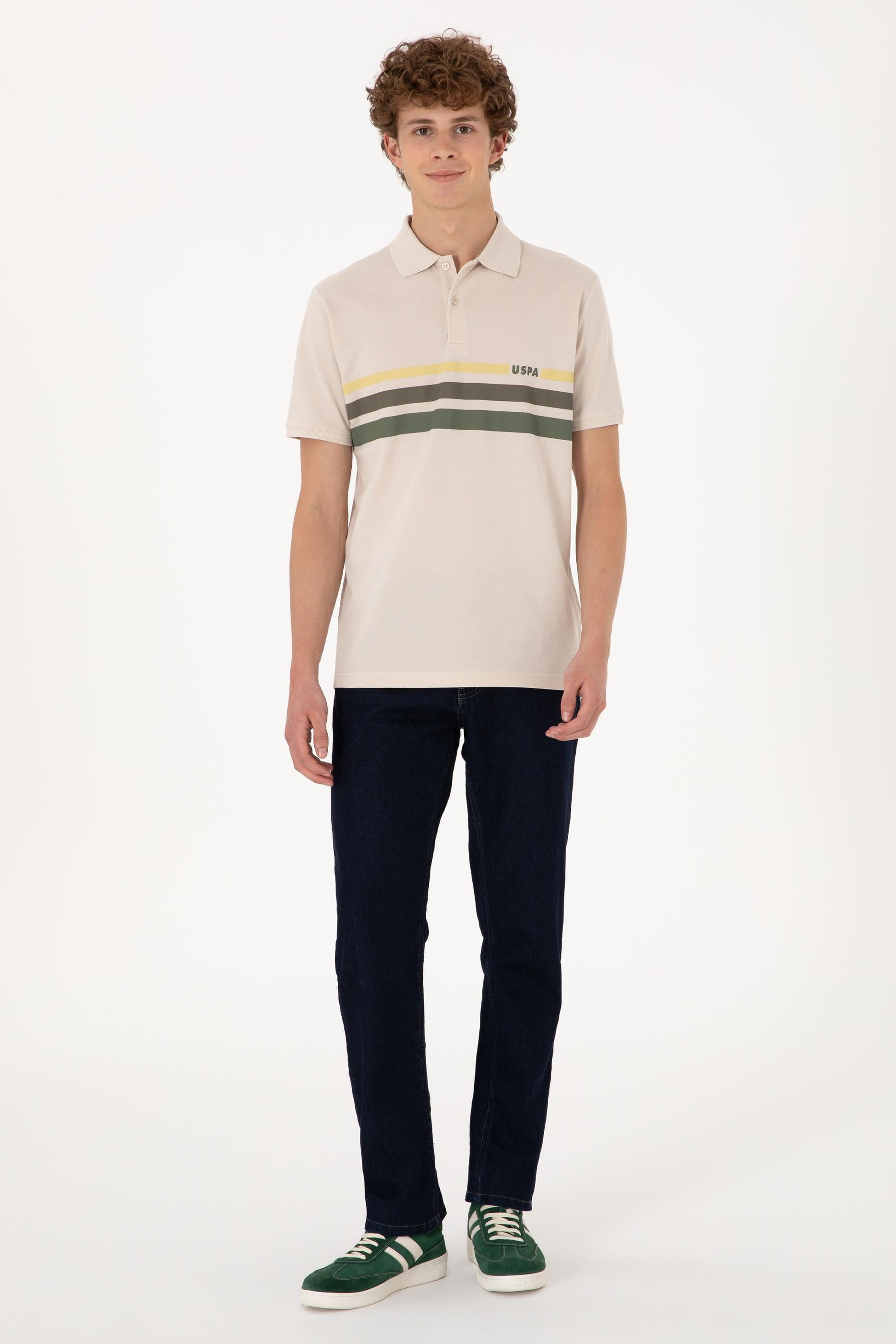 U.S. Polo Assn. stilini dinamik bir dokunuşla sunan bu taş polo yaka erkek tişört, yatay renk bloklarıyla göz alıcı bir tasarım sunar. %100 pamuklu dokusu sayesinde yumuşaklık ve nefes alabilirlik sağlayarak gün boyu konforlu bir kullanım sunar. Regular fit kesimiyle vücudu sıkmadan oturur, polo yaka yapısıyla da hem klasik hem sportif kombinlere kolaylıkla uyum sağlar. Göğüs hizasında yer alan mavi ve lacivert tonlardaki şerit detayları tişörte modern bir hava kazandırırken, sade zemini dengeler. Hem jean hem chino pantolonlarla kombinlenebilir bu model, hafta sonu buluşmalarından tatil valizlerine kadar pek çok ortam için şık ve rahat bir seçenektir.