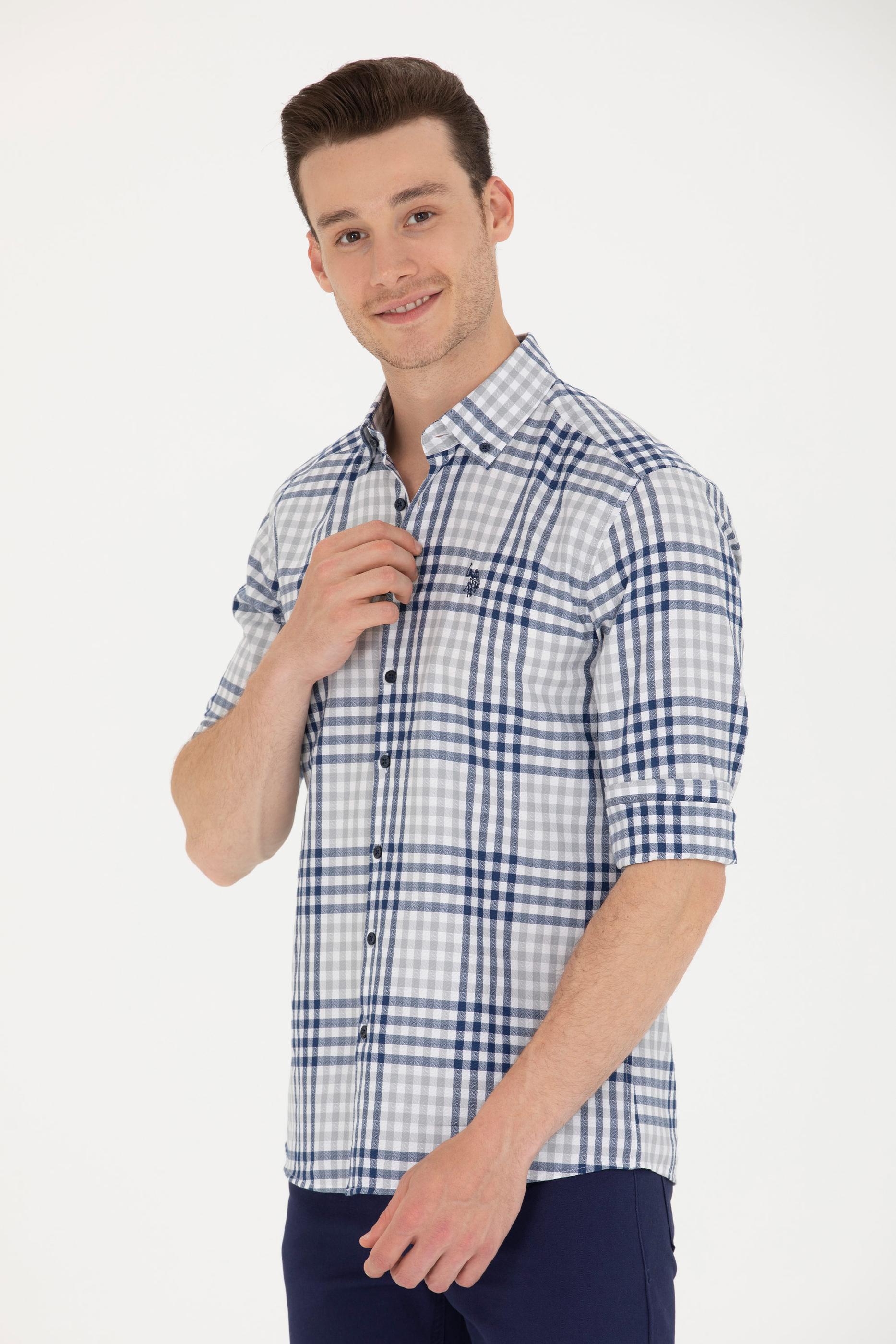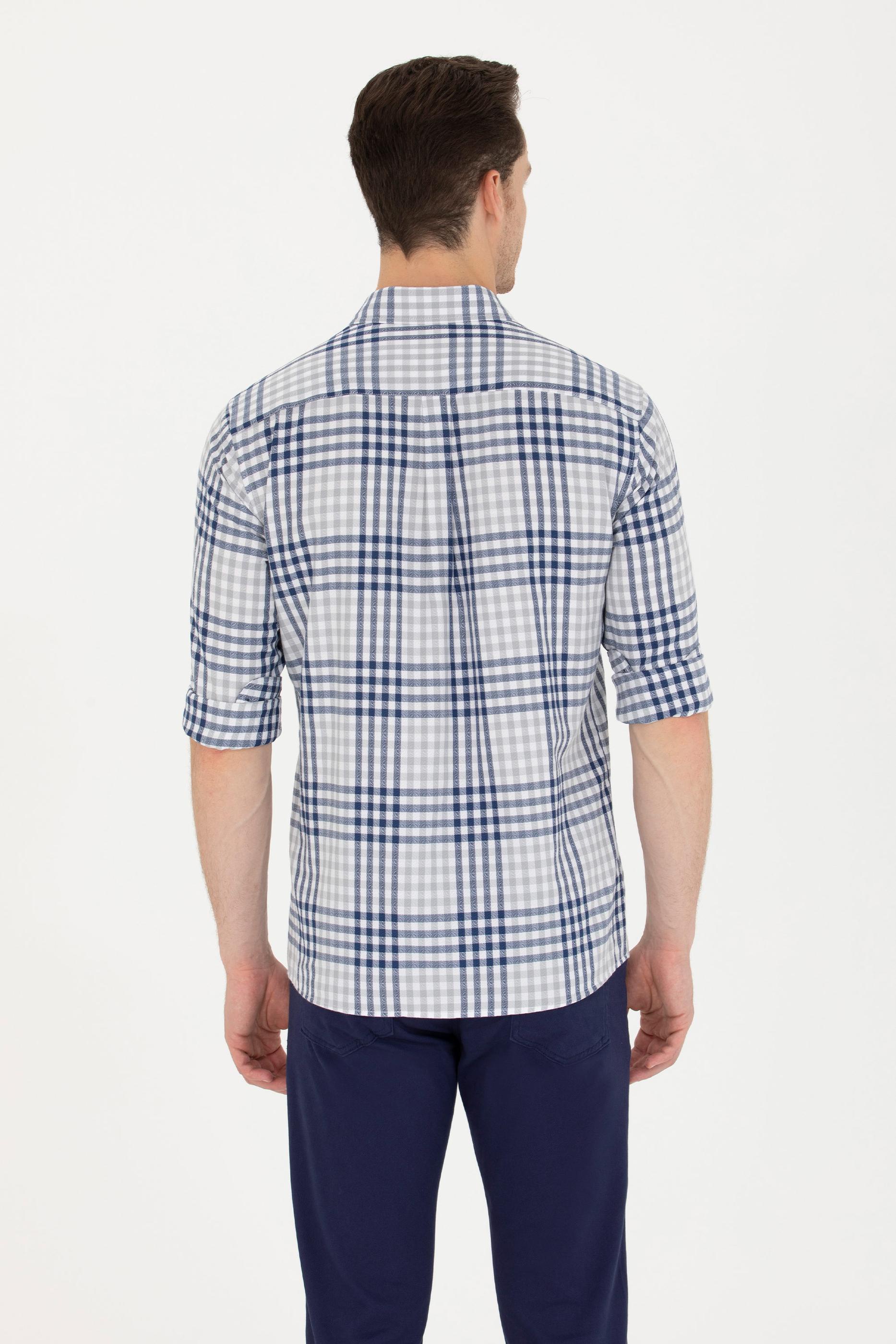 Erkek Ekoseli Lacivert Gömlek
