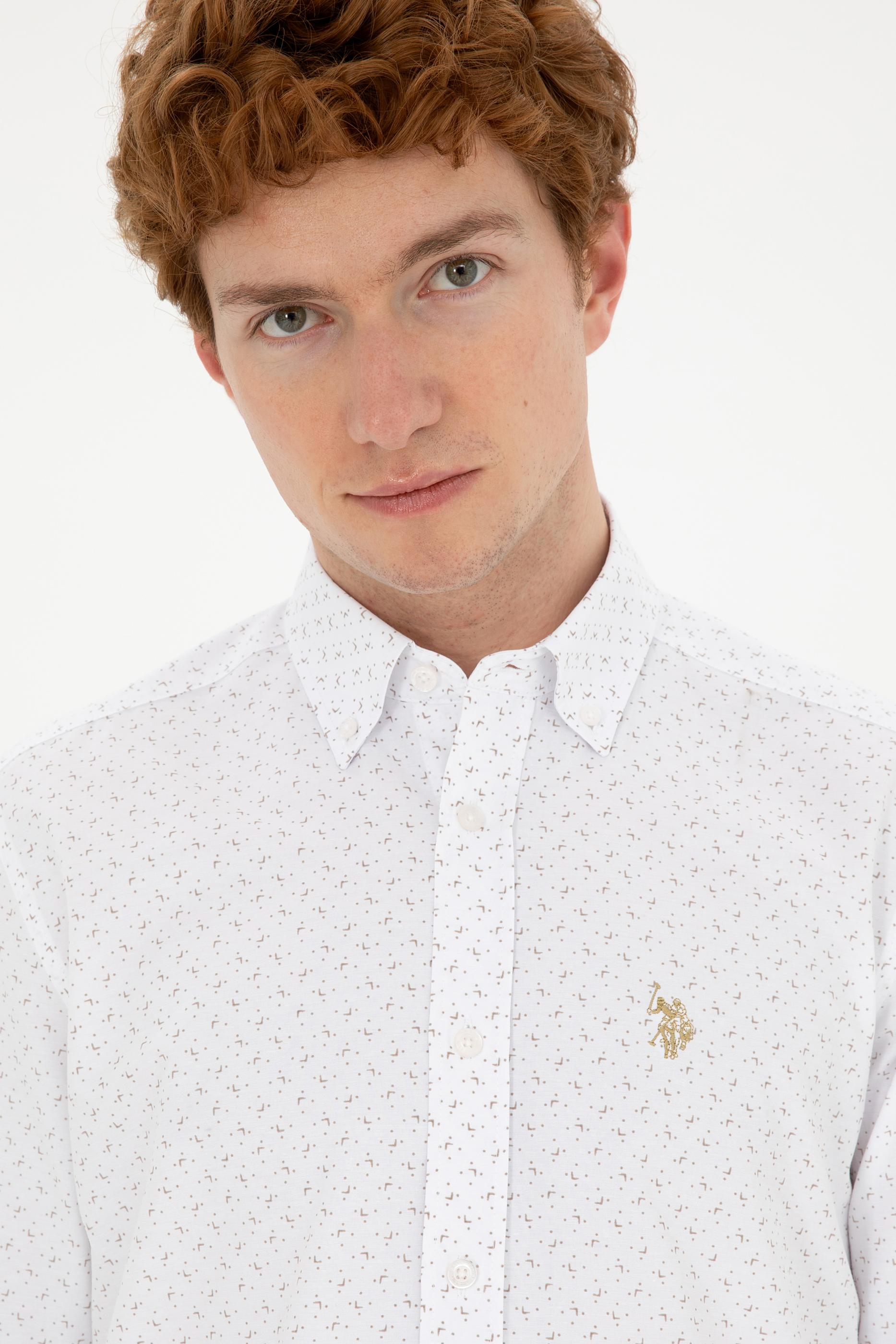 - Erkek Taş Baskılı Beyaz Gömlek