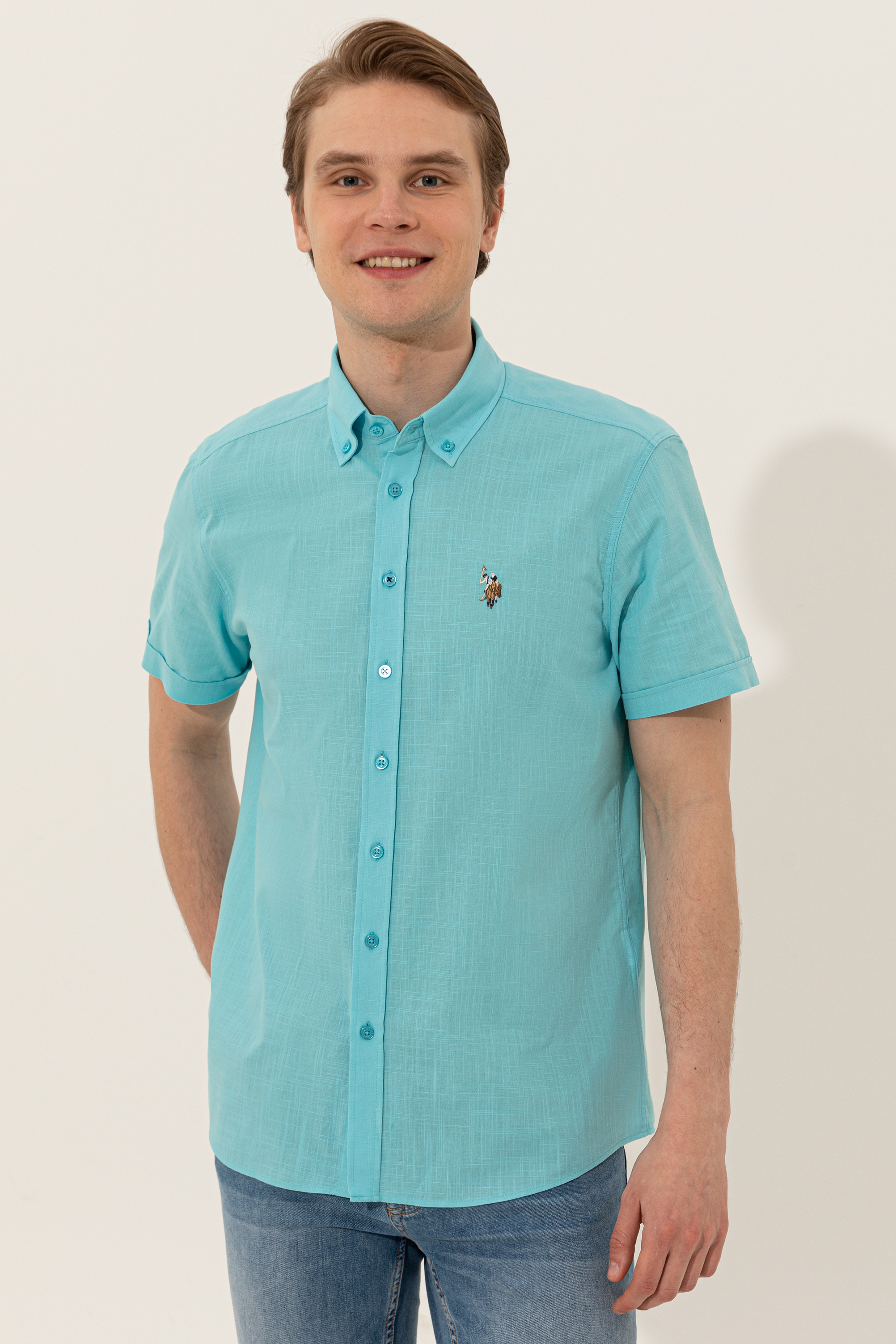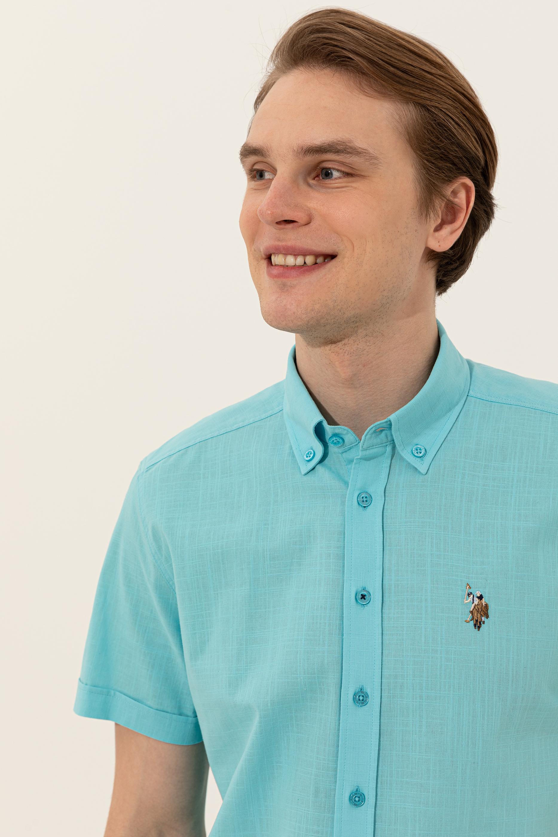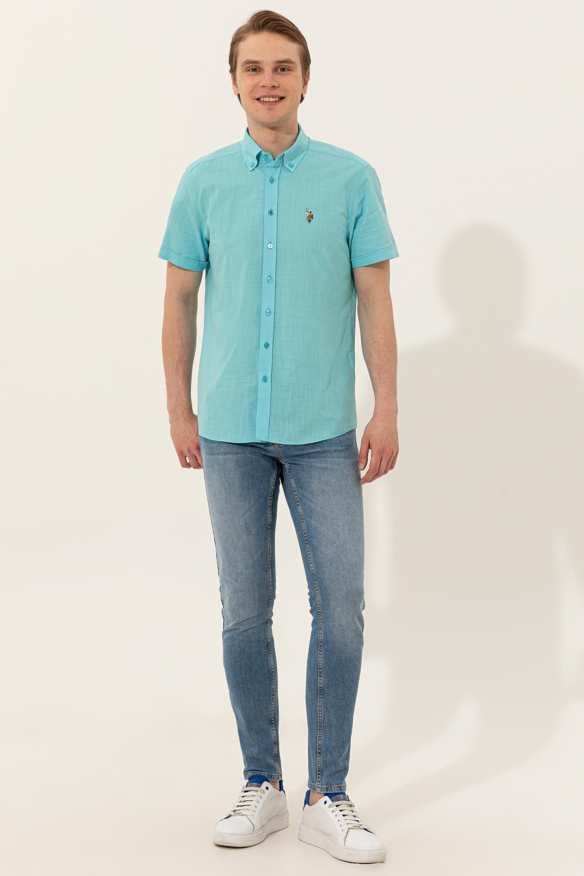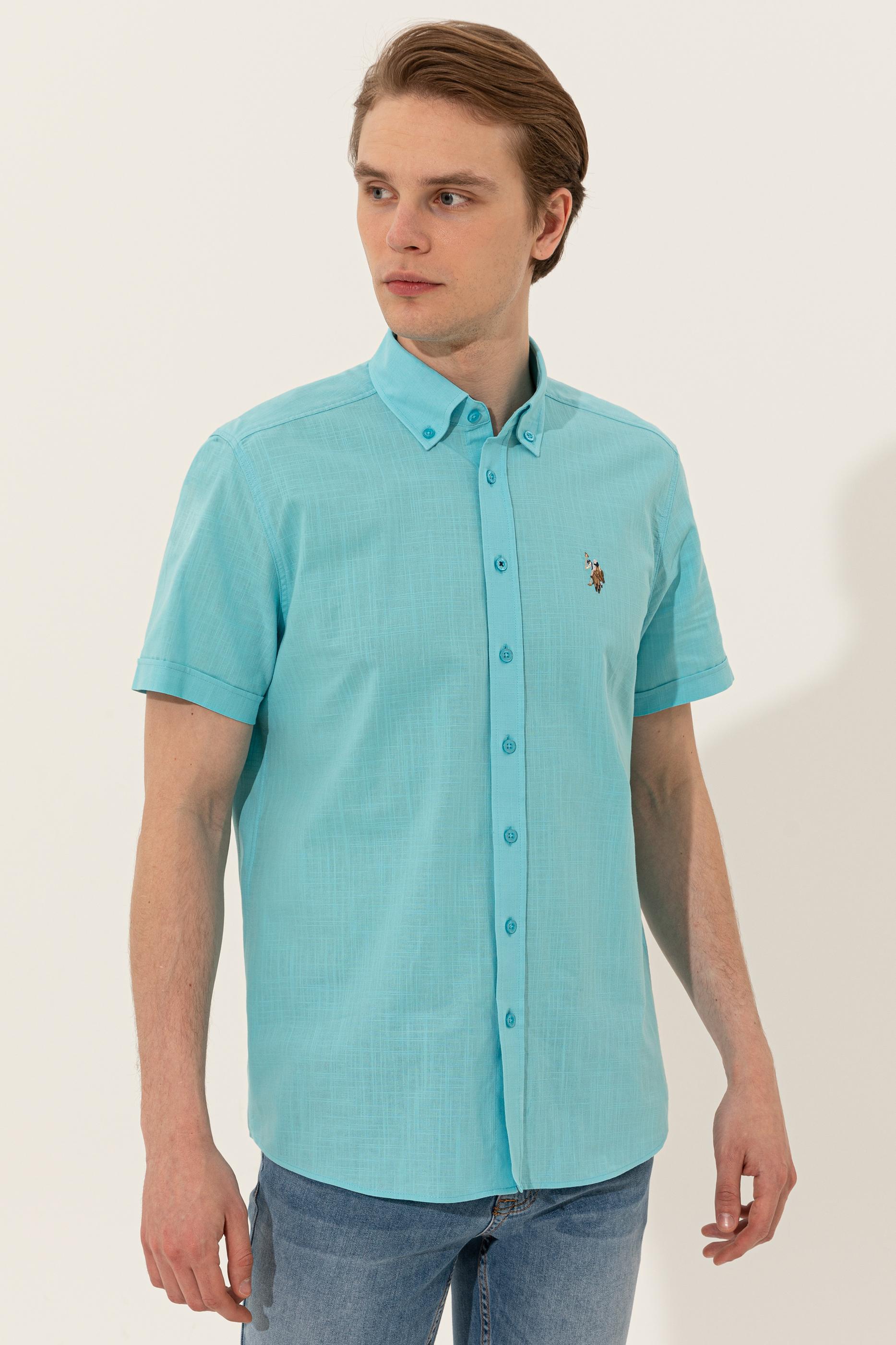 Erkek Turkuaz Kısa Kollu Gömlek - 50246425036