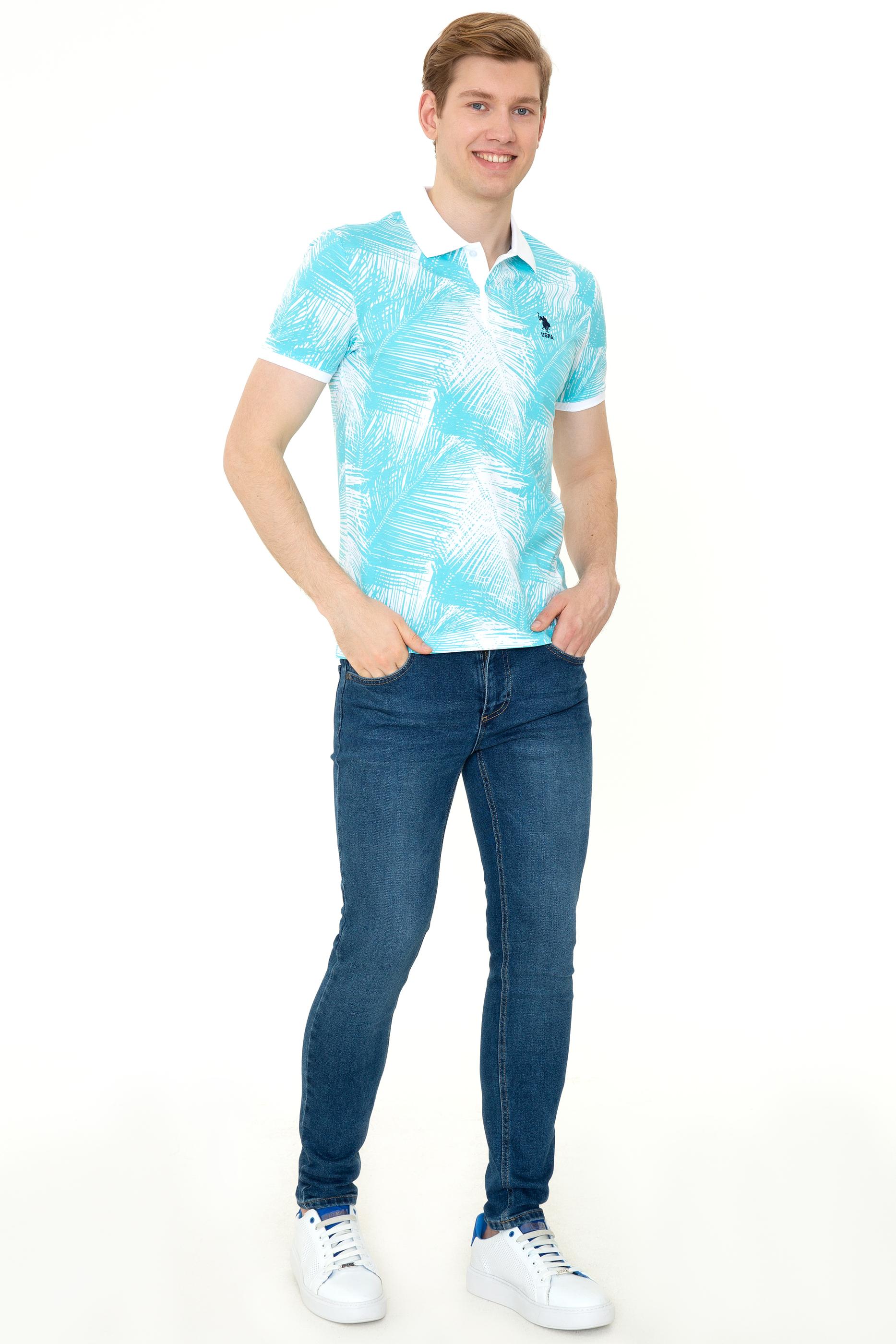 Terletmeyen %100 pamuklu yapı sayesinde sıcak yaz günlerinde yüksek konfor sunan baskılı ve desenli polo yaka erkek tişörtümüze