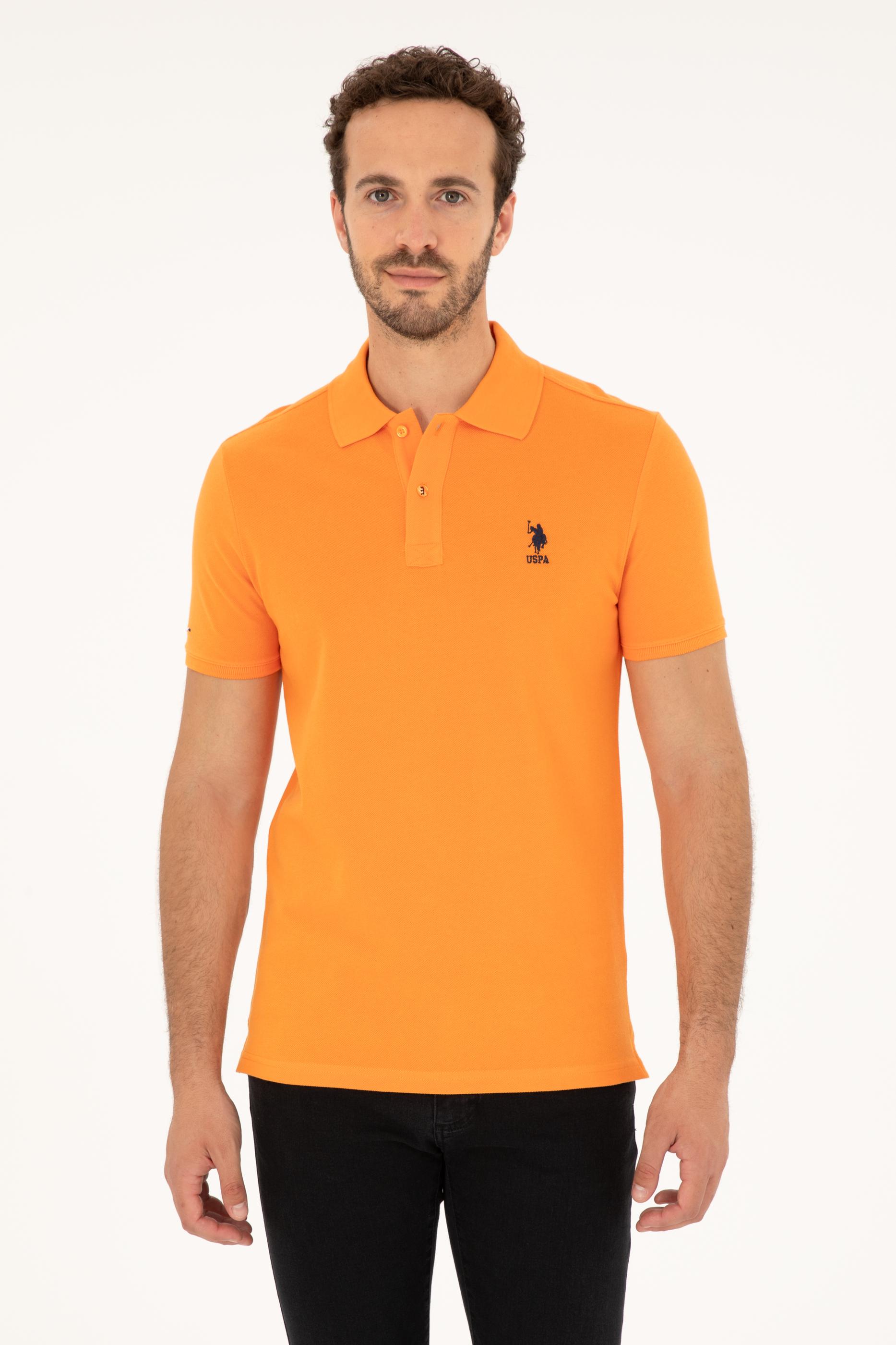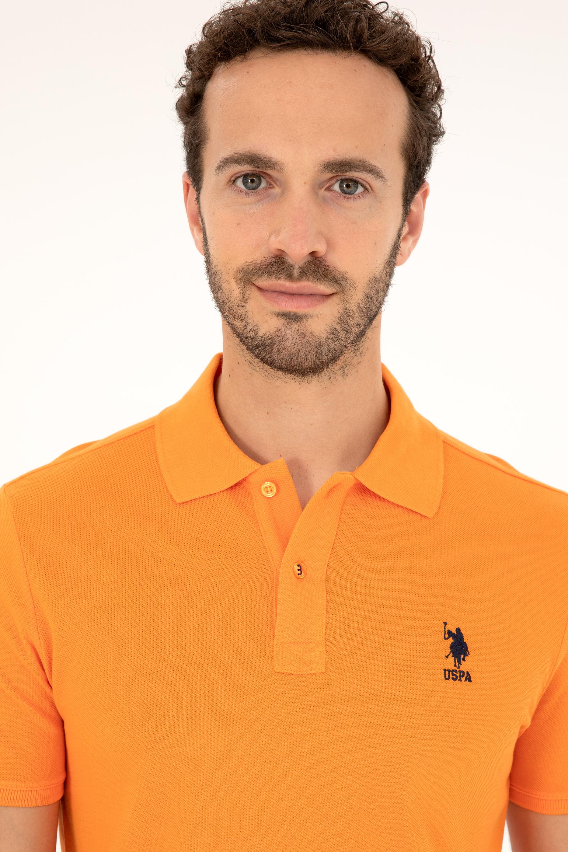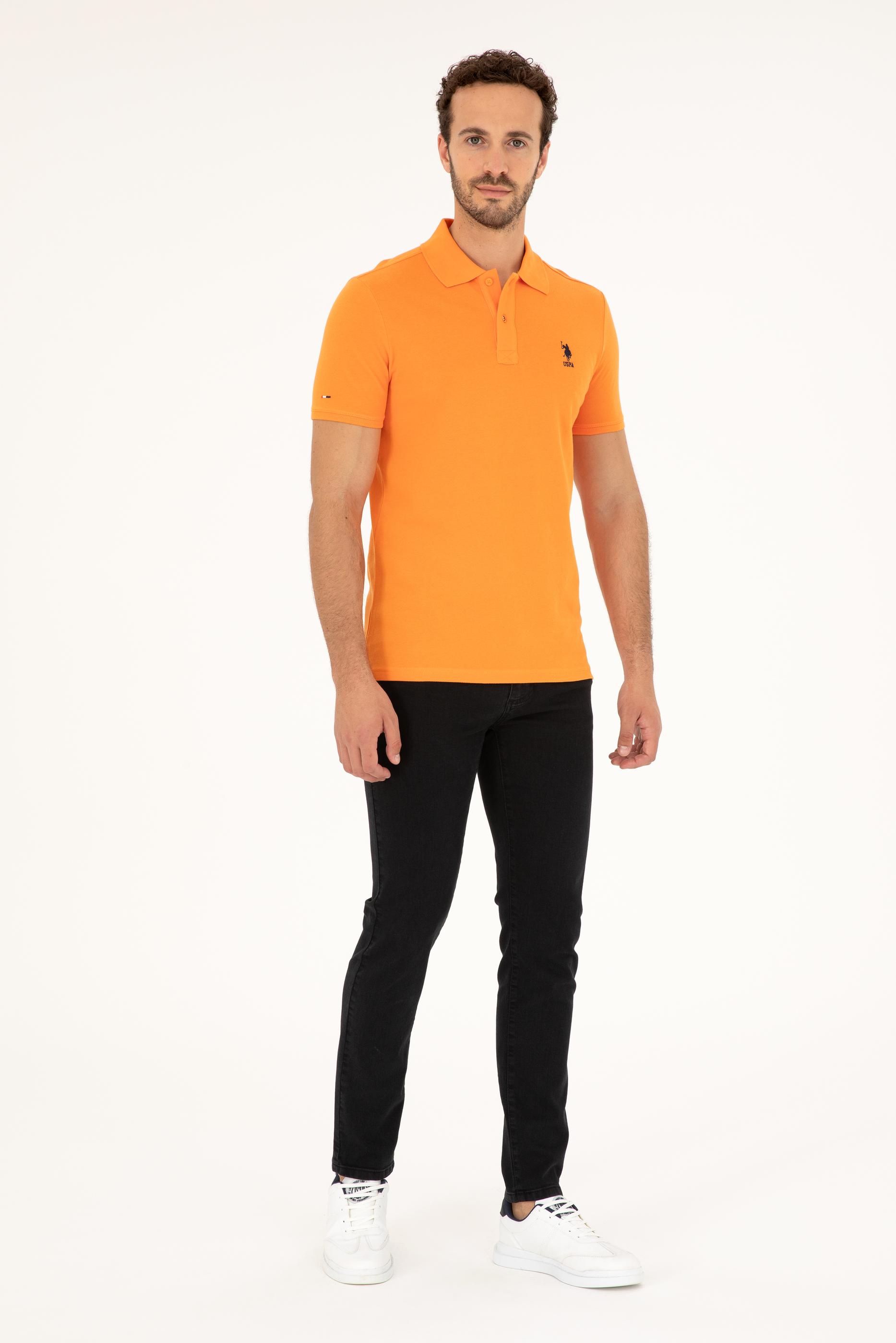 - Erkek Slim Fit Polo Yaka Turuncu Basic Tişört