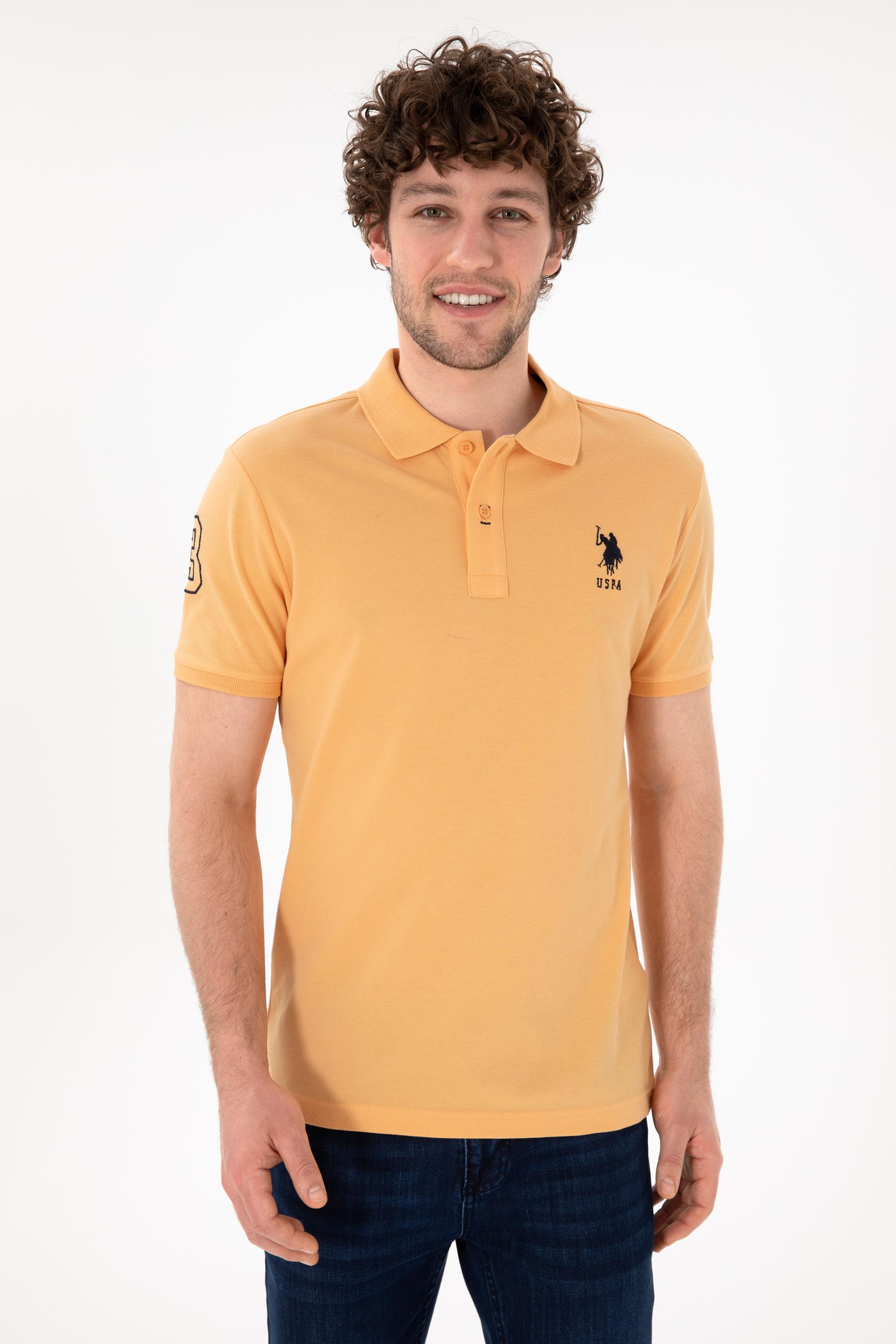 - Erkek Slim Fit Polo Yaka Turuncu Basic Tişört