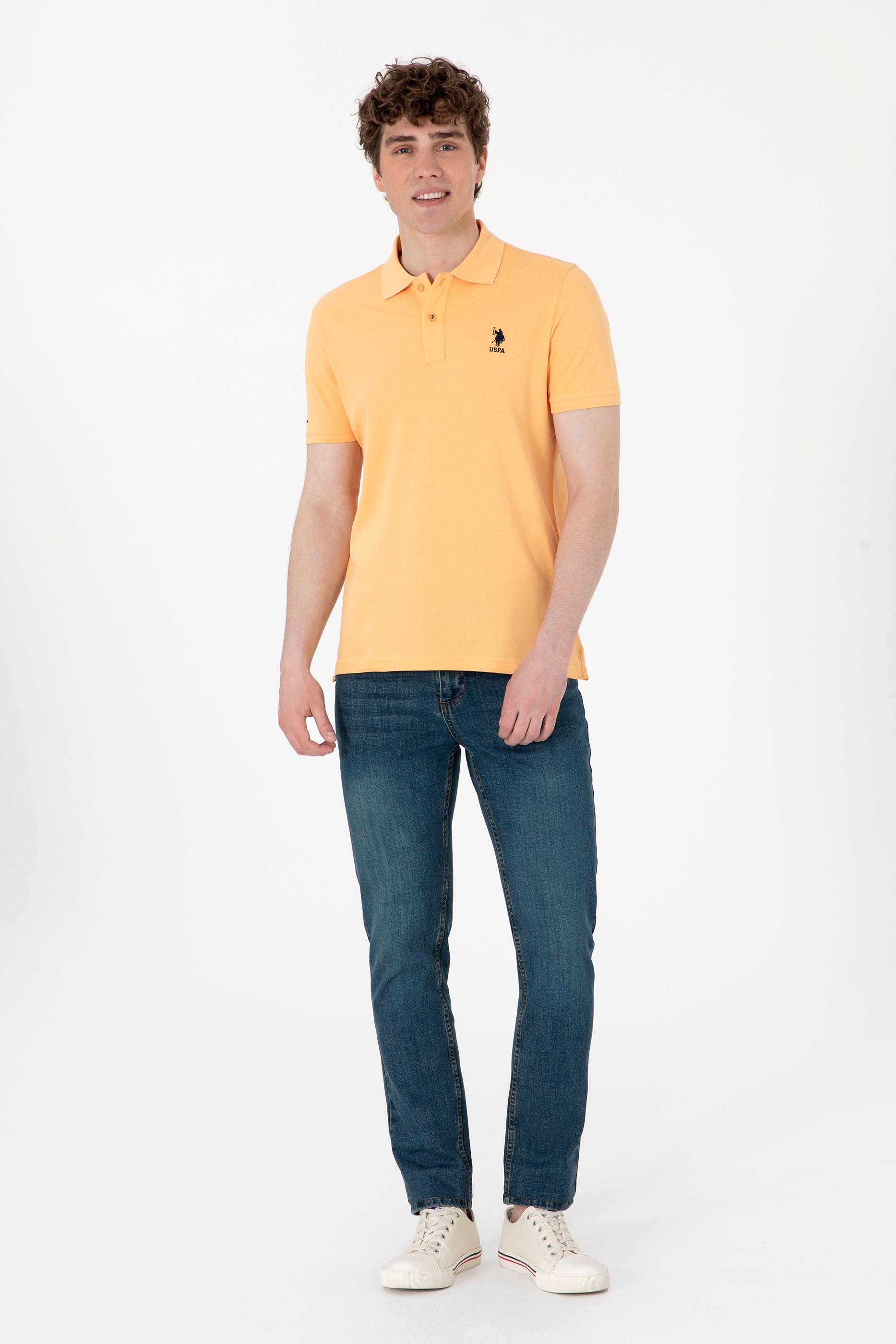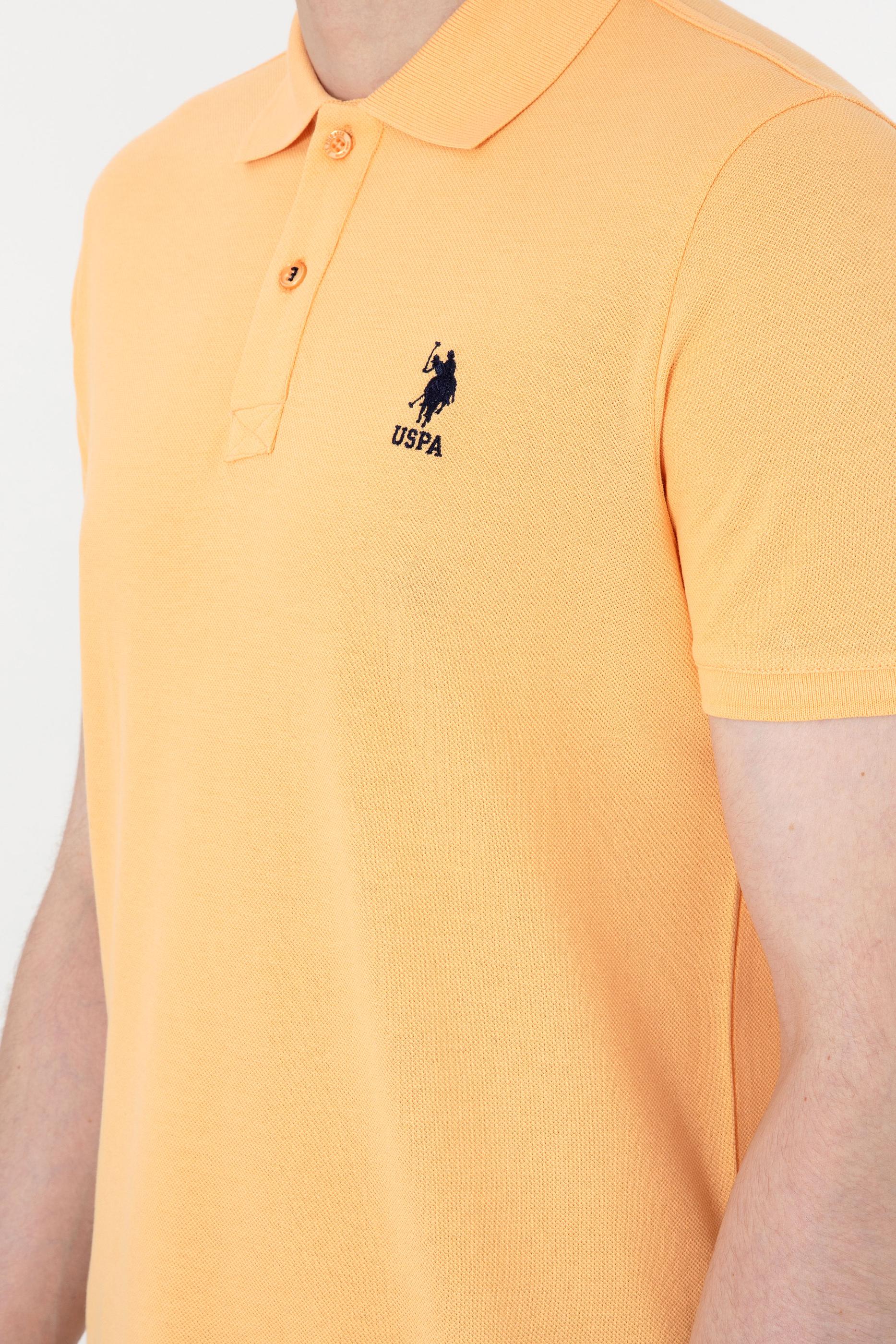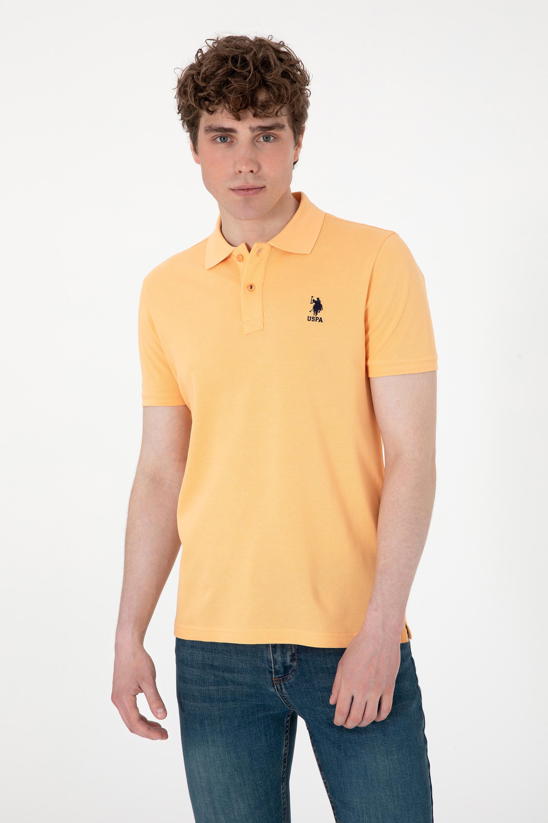 - Erkek Slim Fit Polo Yaka Turuncu Basic Tişört