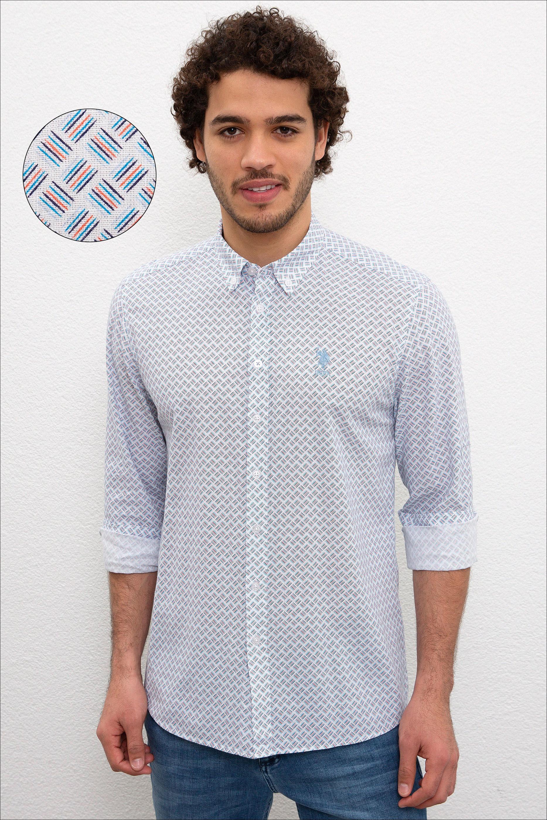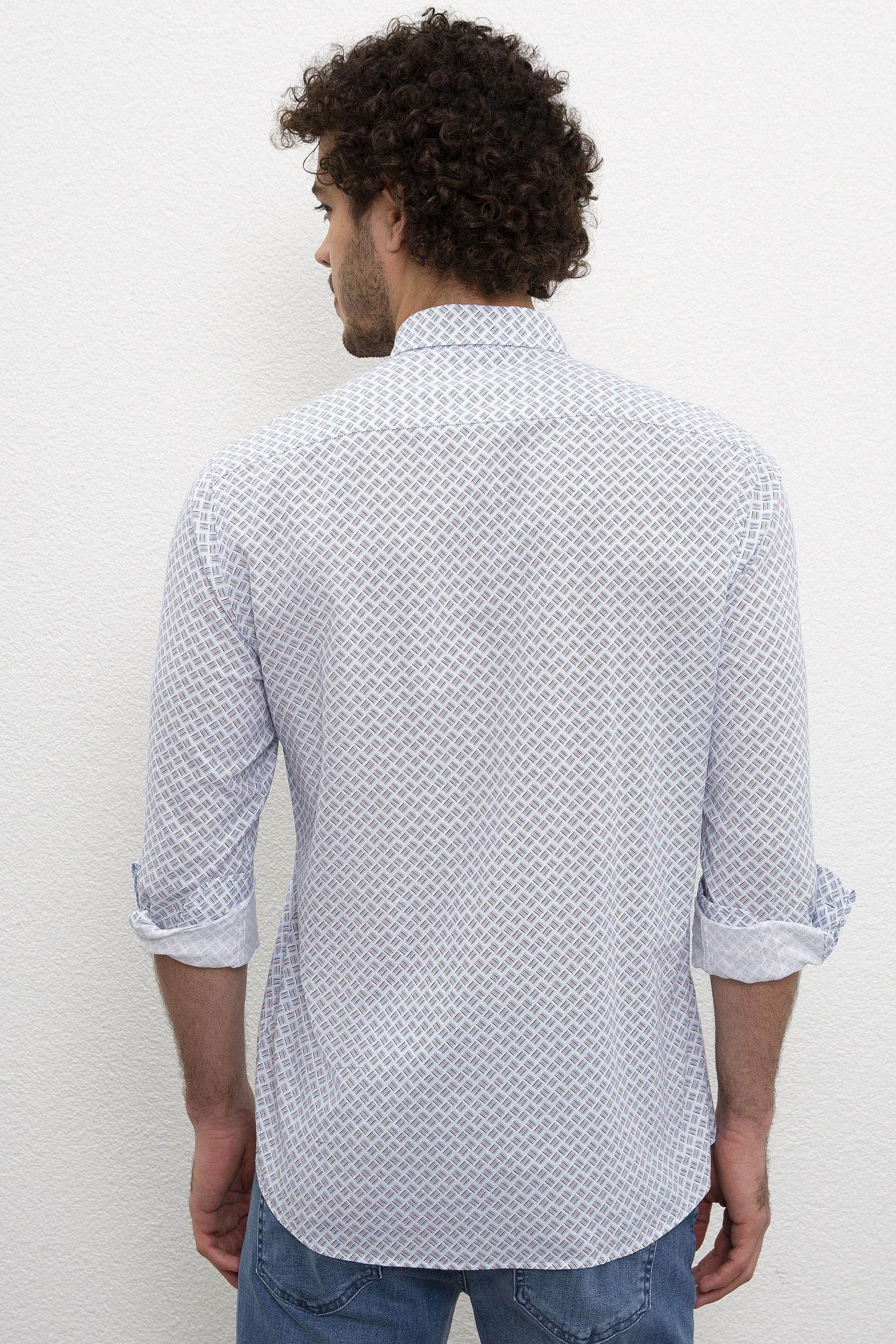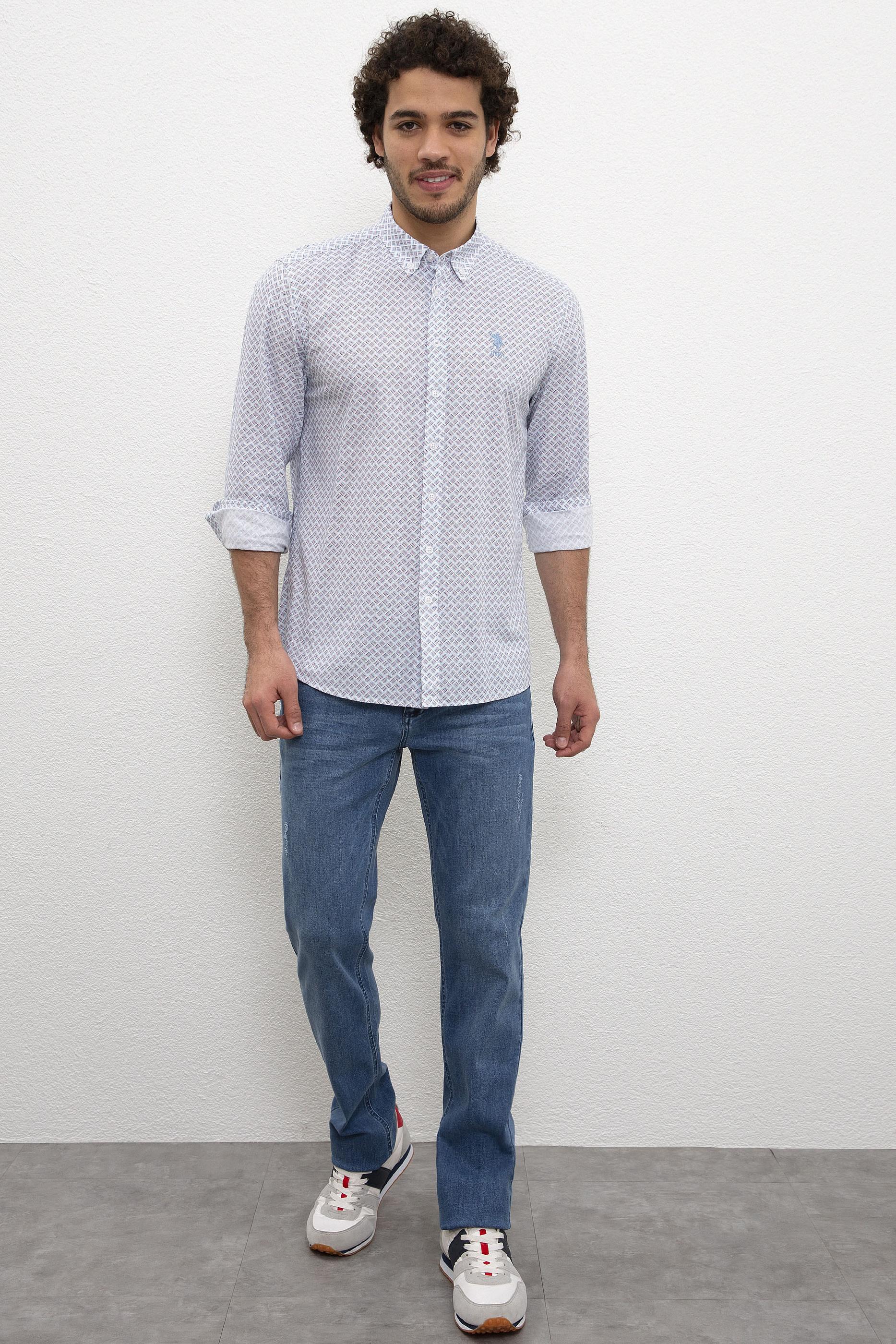 Dilediğiniz parçayla kombinleme imkânı sunan regular fit erkek gömlek modellimiz uzun kolludur ve düğmeli yaka detayıyla öne çıkar.
