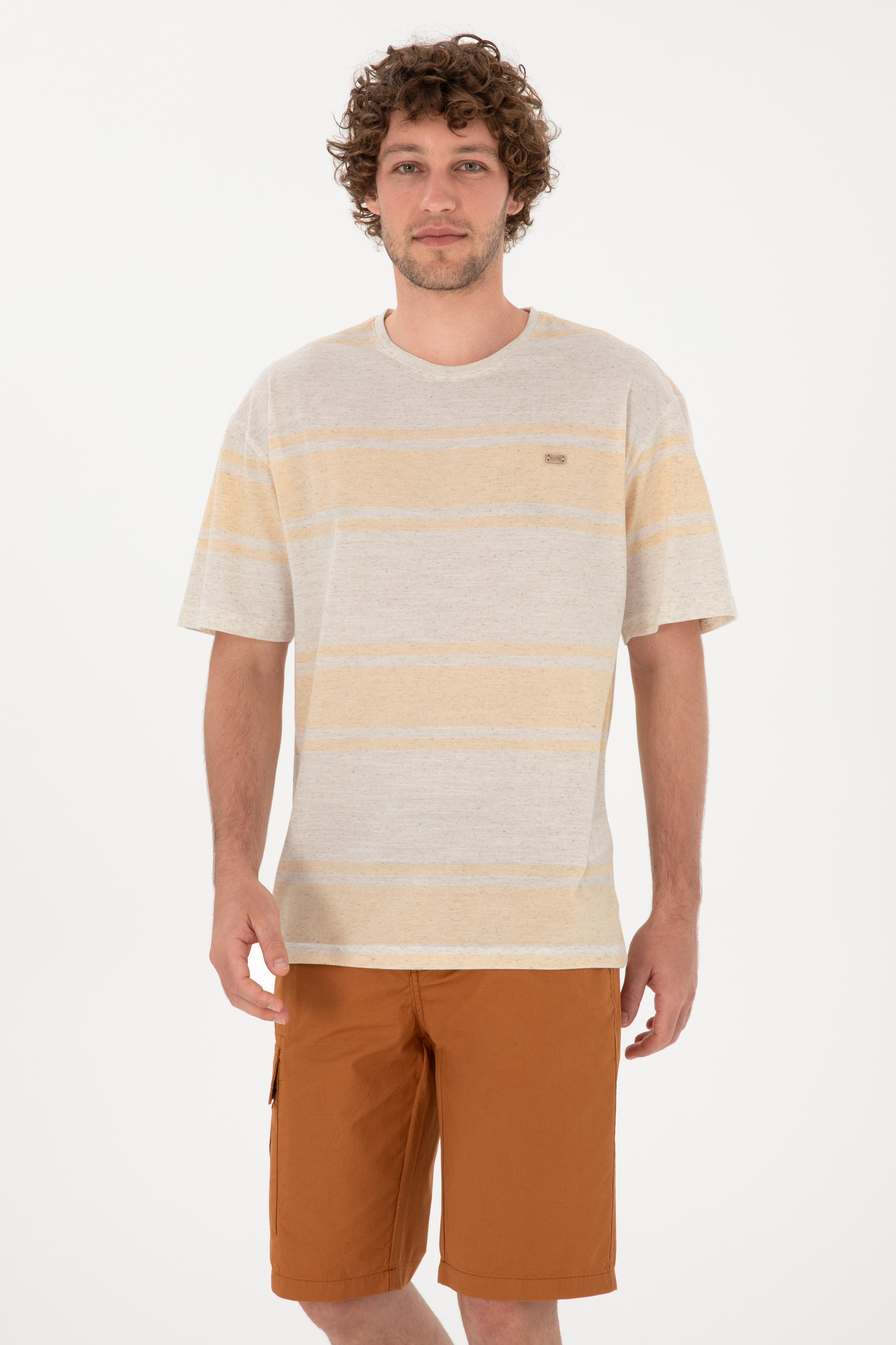 - Erkek Comfort Fit Bisiklet Yaka Turuncu Tişört