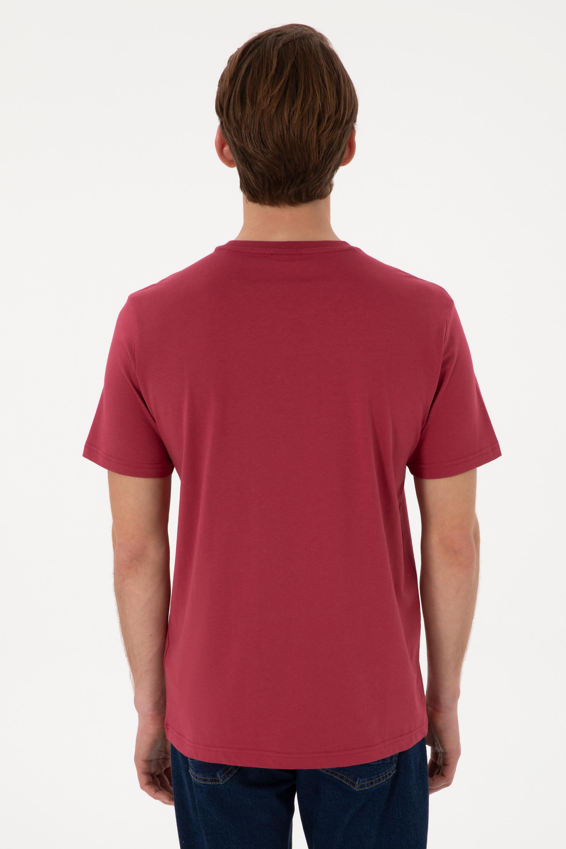 Erkek Regular Fit Bisiklet Yaka Vişne Basic Tişört