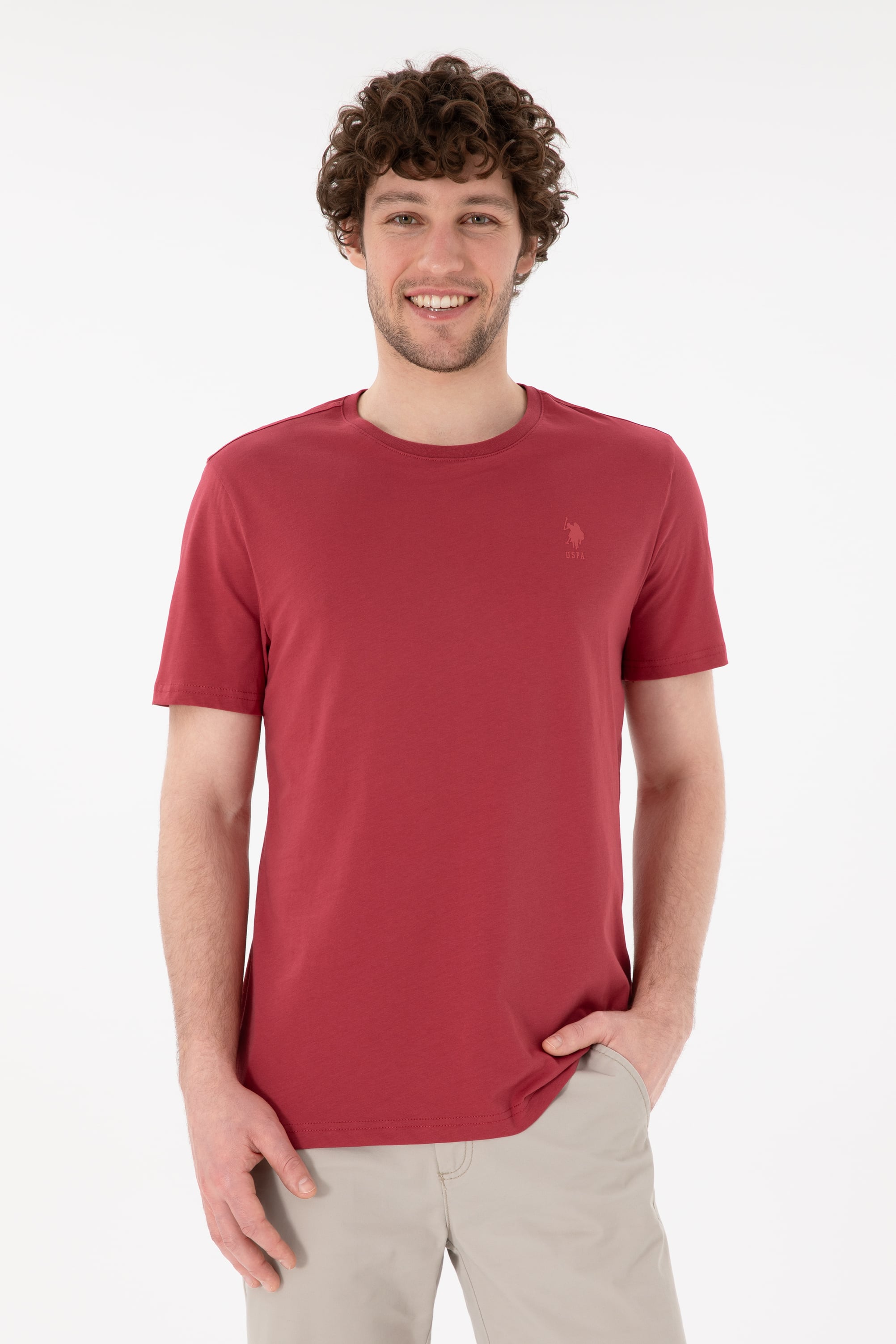 Erkek Regular Fit Bisiklet Yaka Vişne Basic Tişört