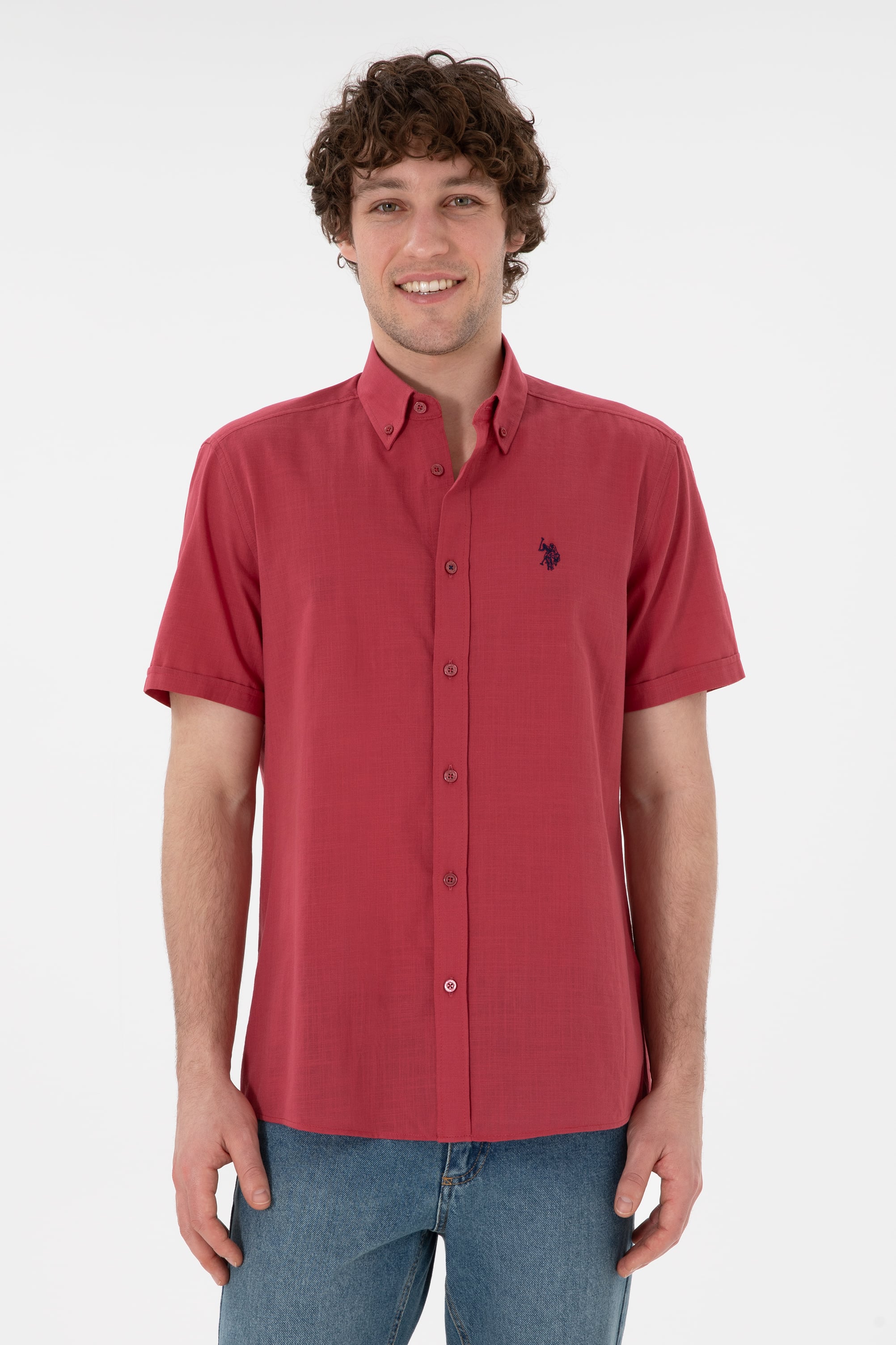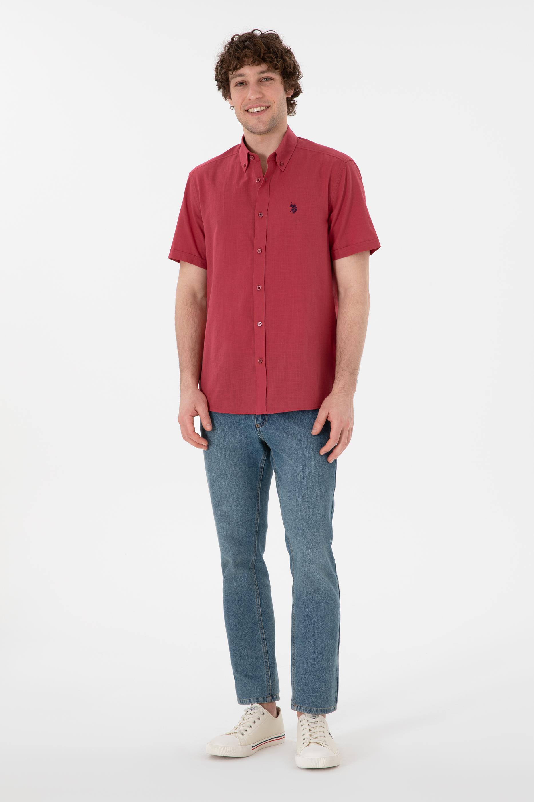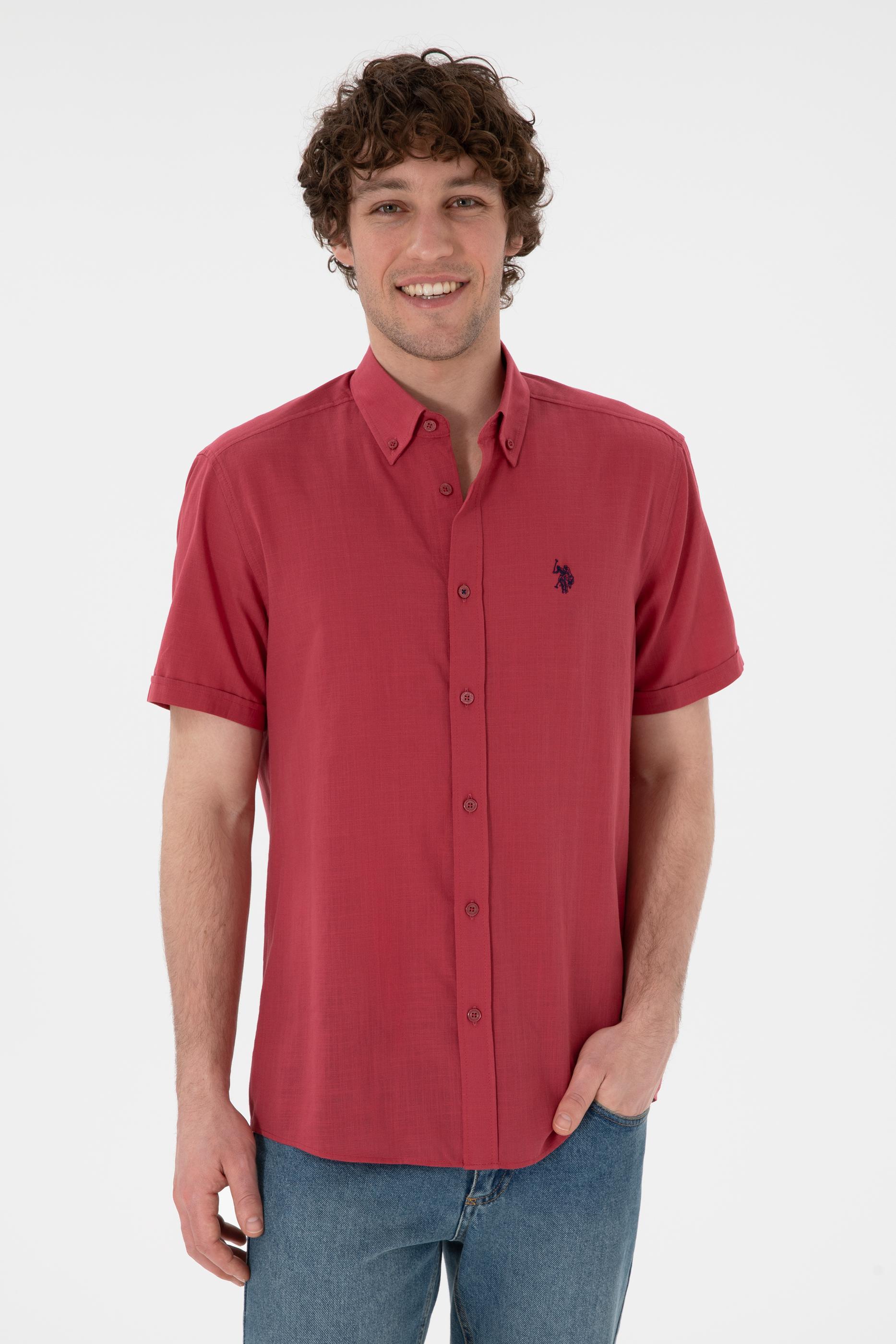 - Erkek Vişne Kısa Kollu Gömlek