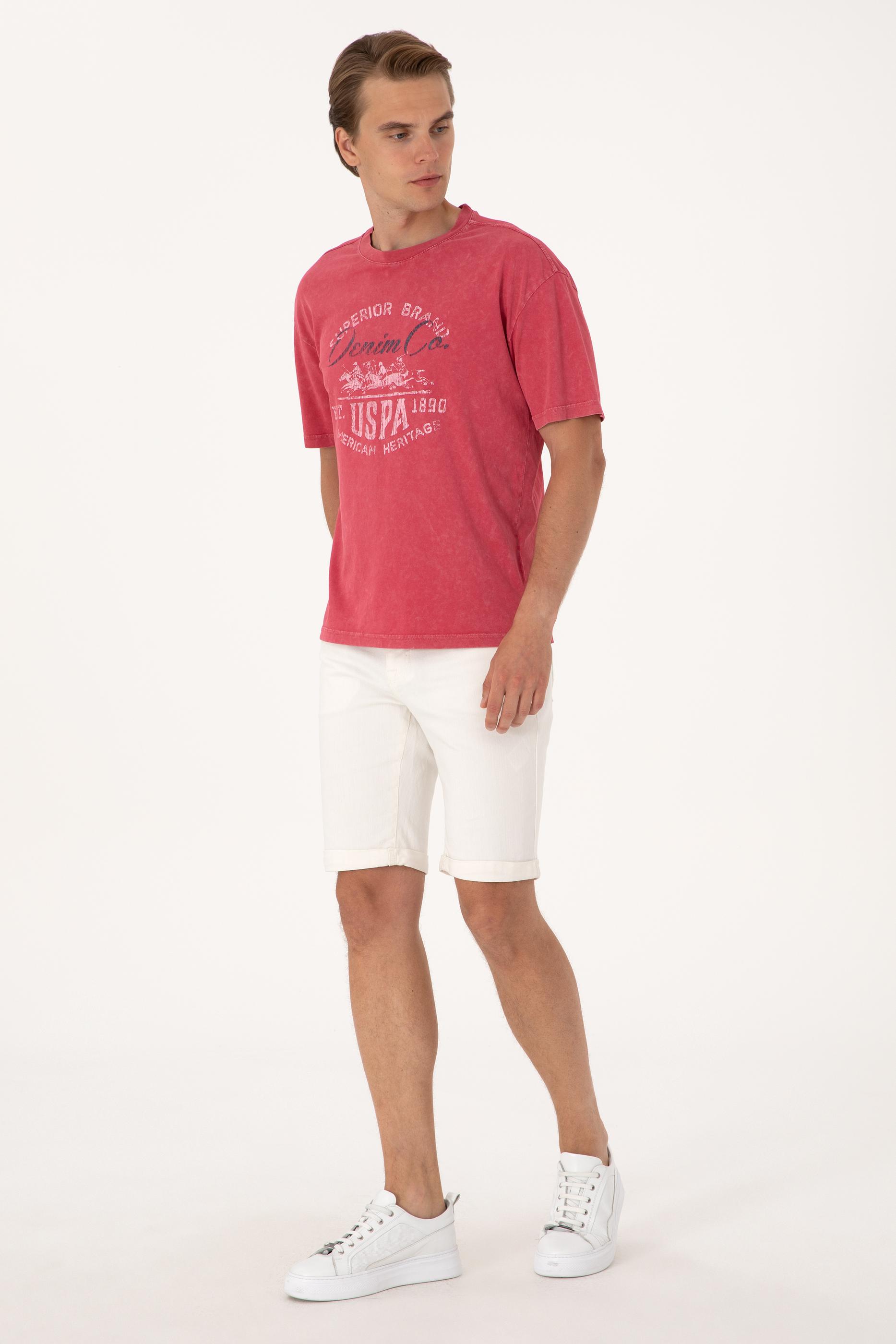 Erkek Comfort Fit Vişne Bisiklet Yaka Tişört