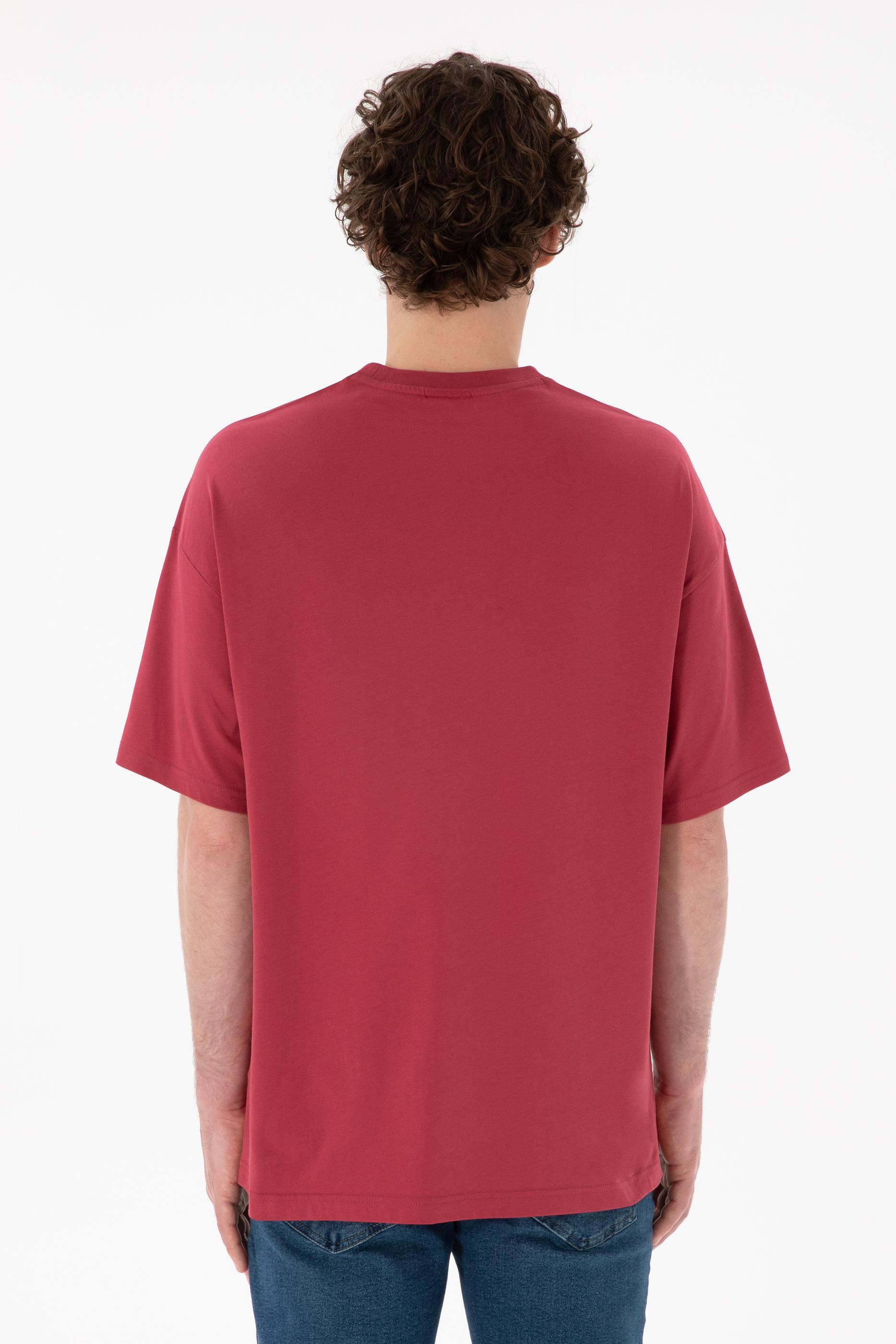 - Erkek Oversize Fit Bisiklet Yaka Vişne Tişört