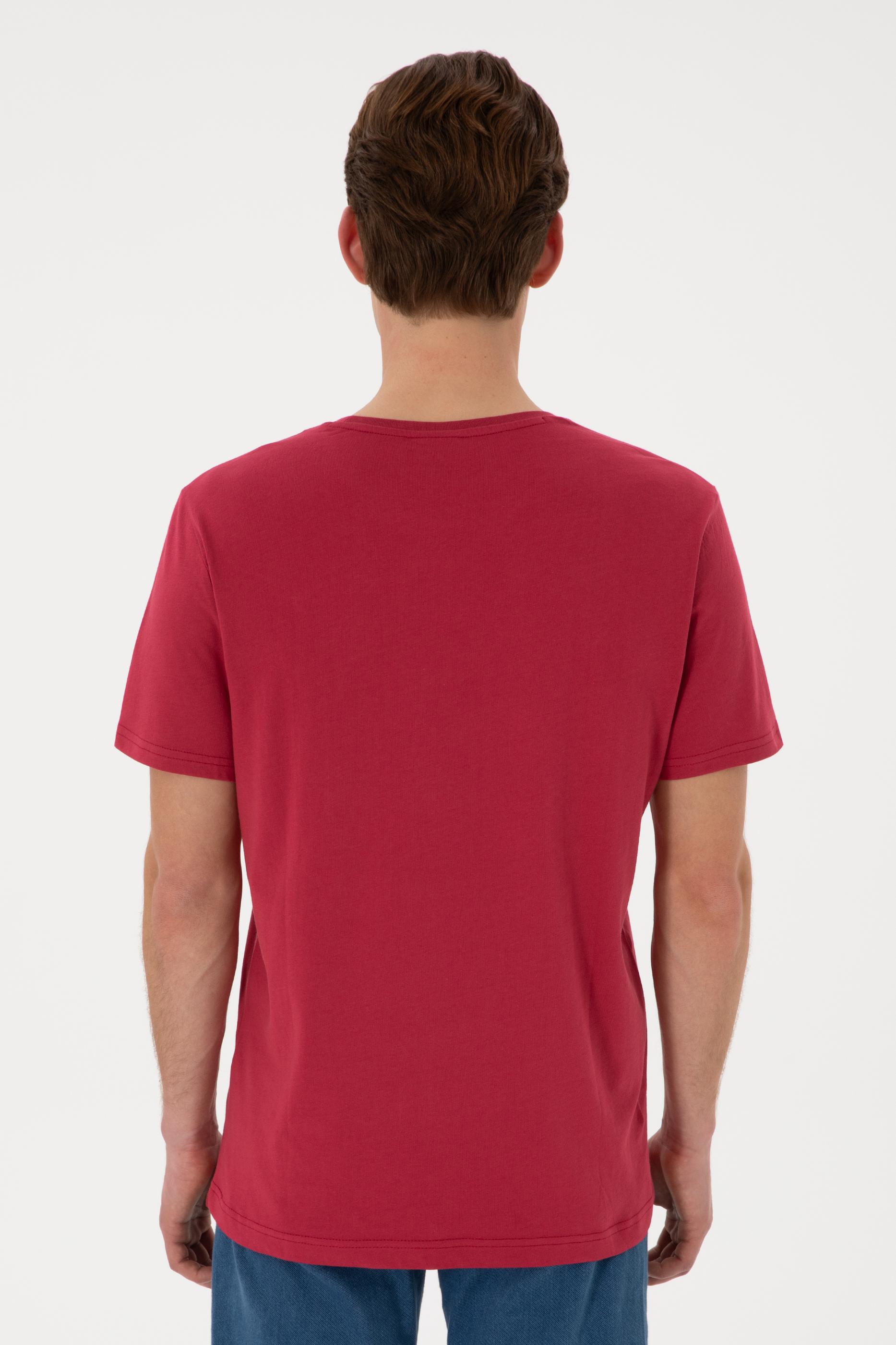 - Erkek Regular Fit Bisiklet Yaka Vişne Tişört