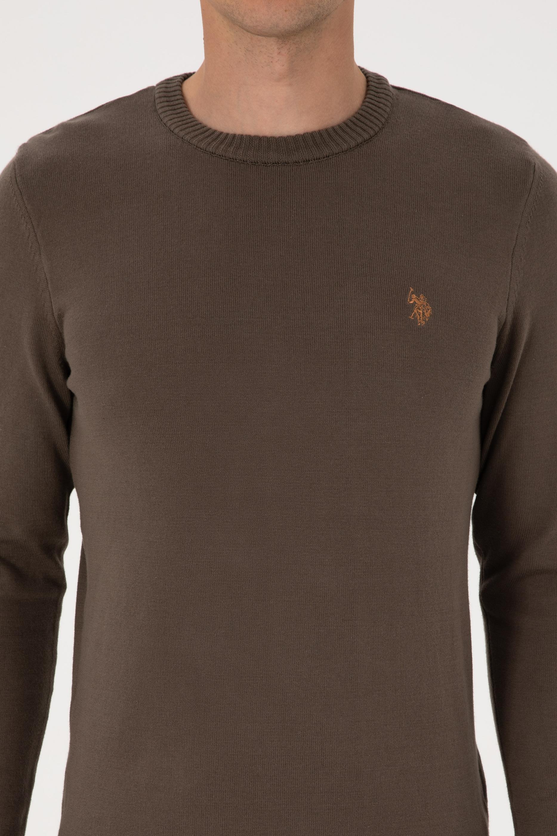 Erkek Slim Fit Bisiklet Yaka Vizon Basic Kazak