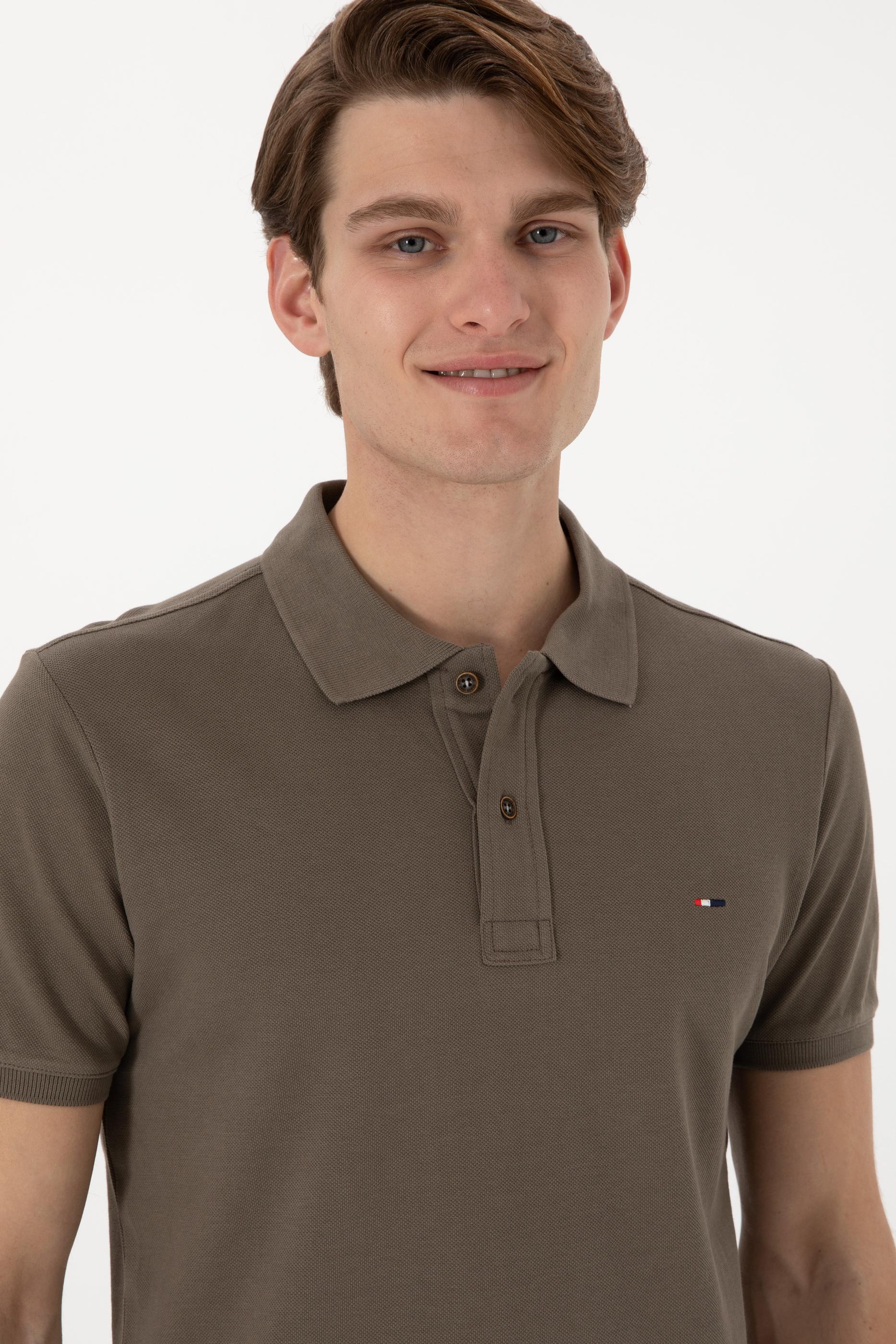Erkek Slim Fit Polo Yaka Vizon Basic Tişört