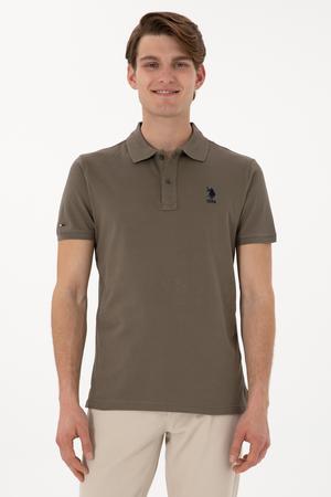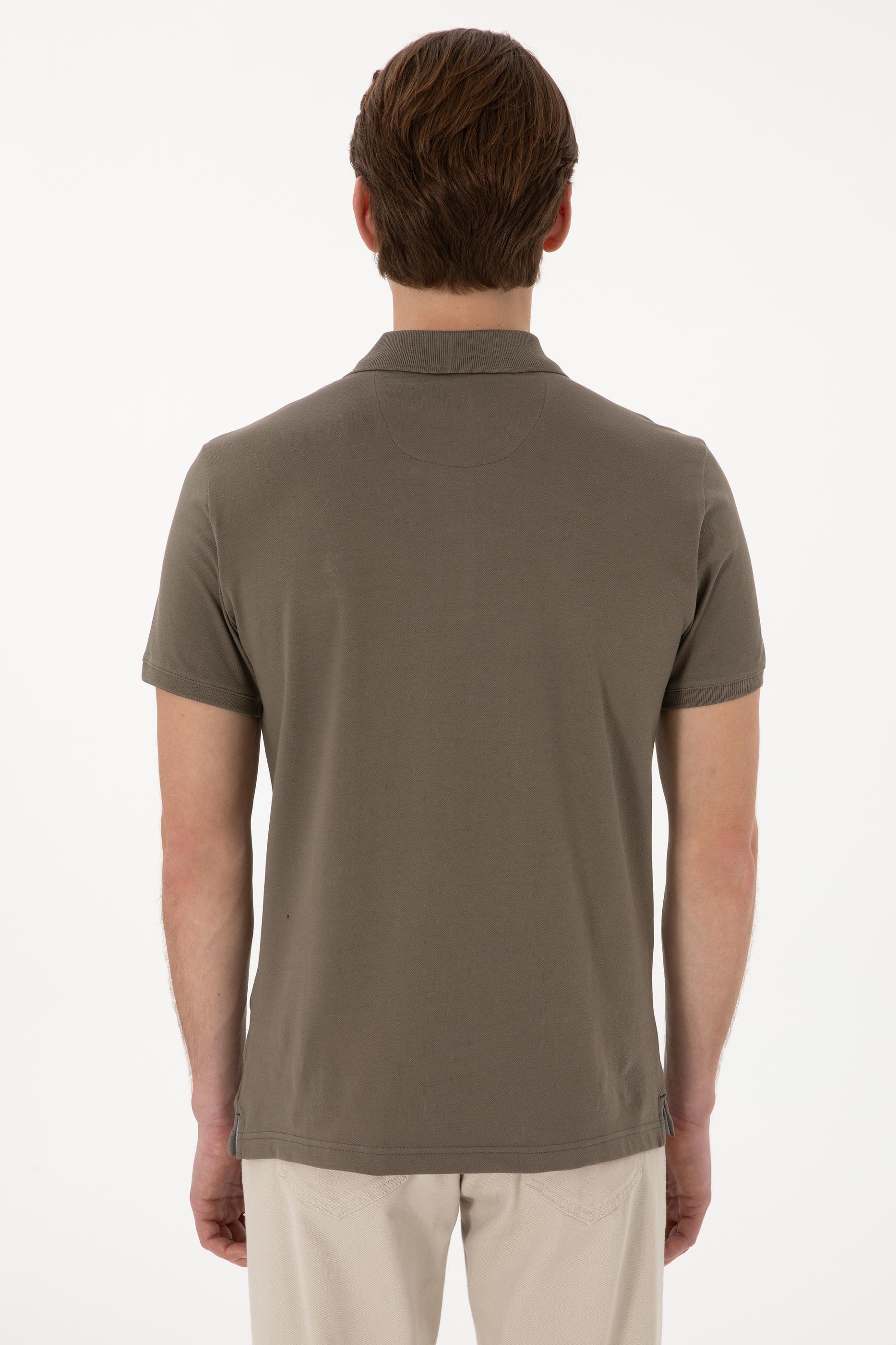 Erkek Slim Fit Polo Yaka Vizon Basic Tişört