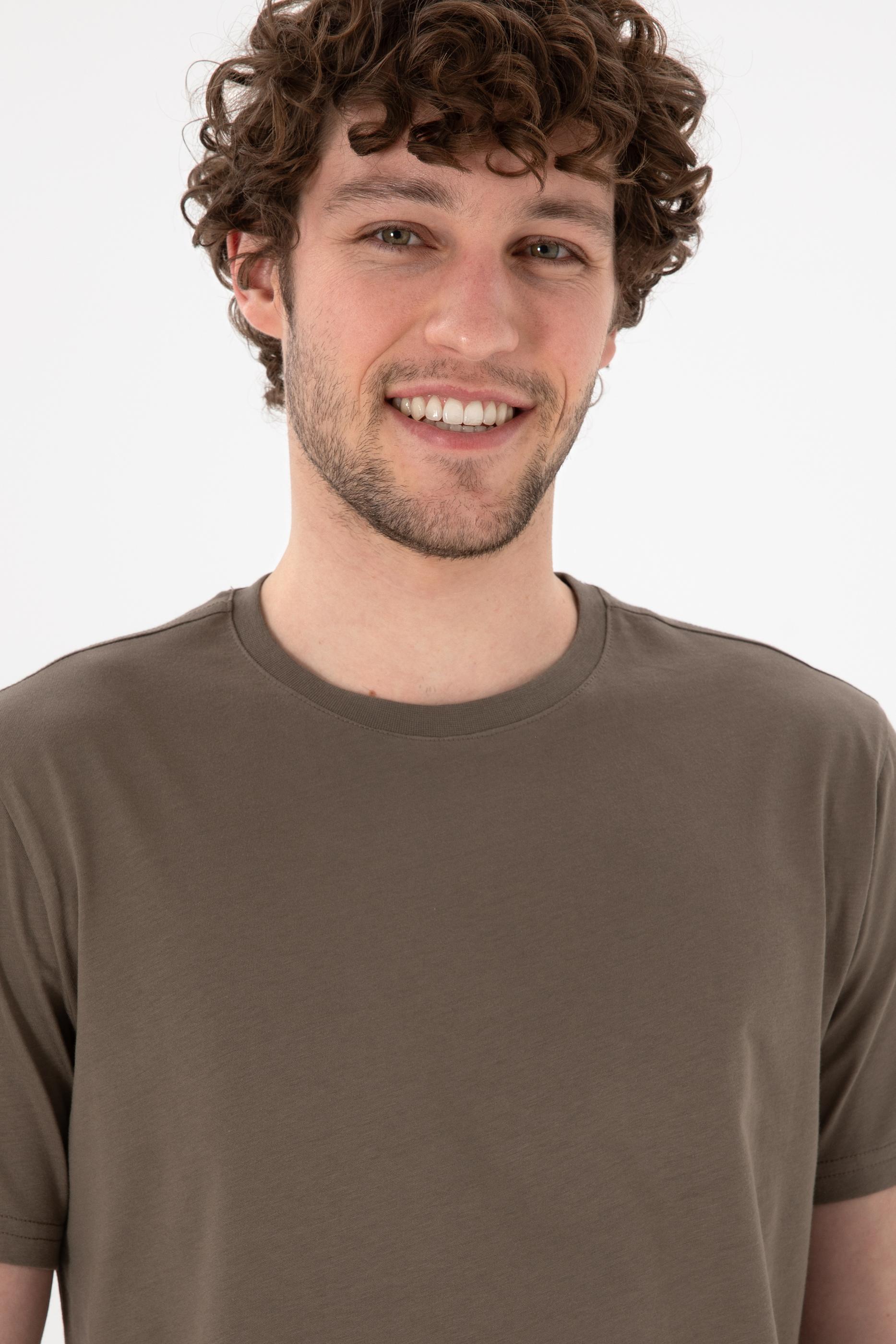 Erkek Regular Fit Bisiklet Yaka Vizon Basic Tişört