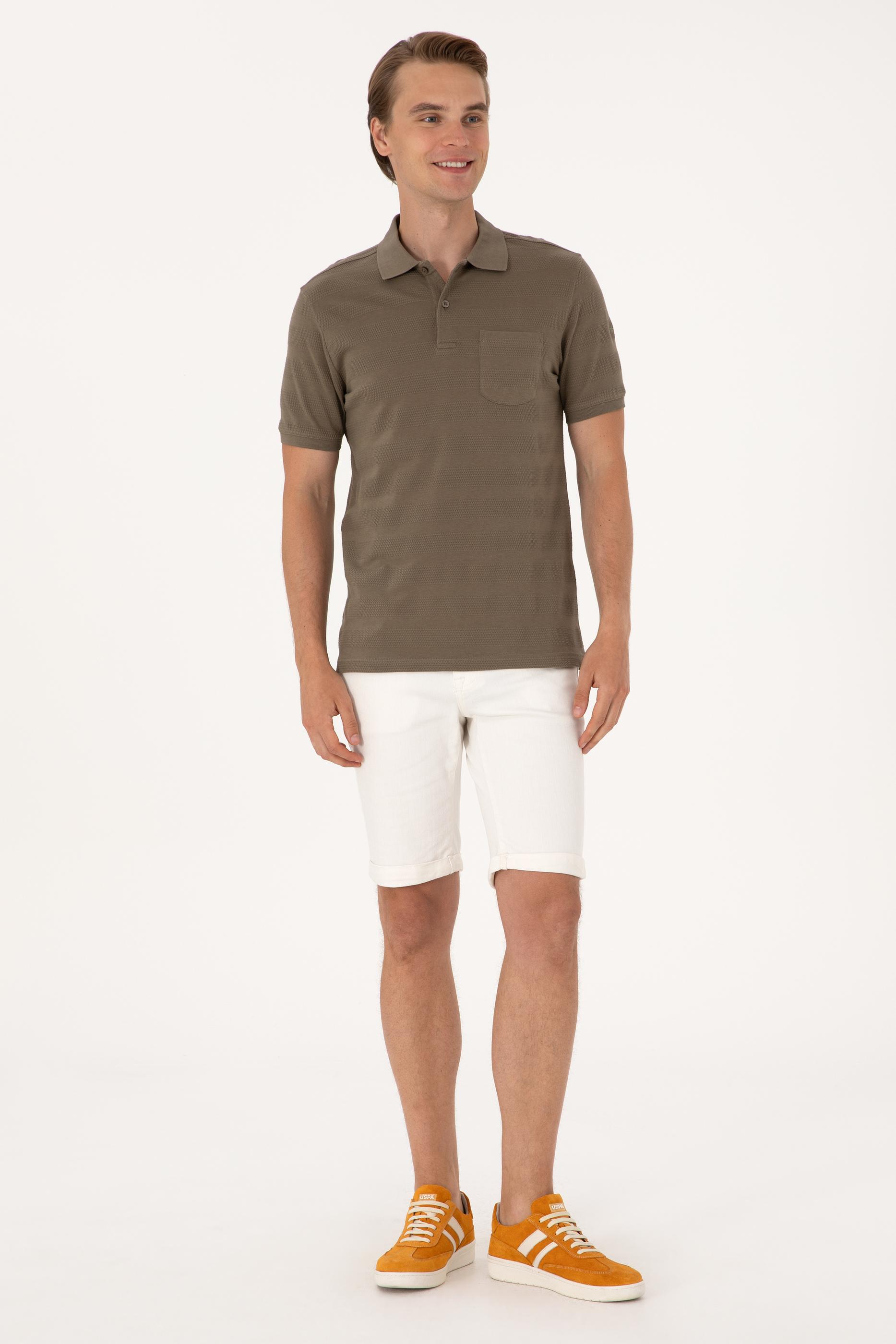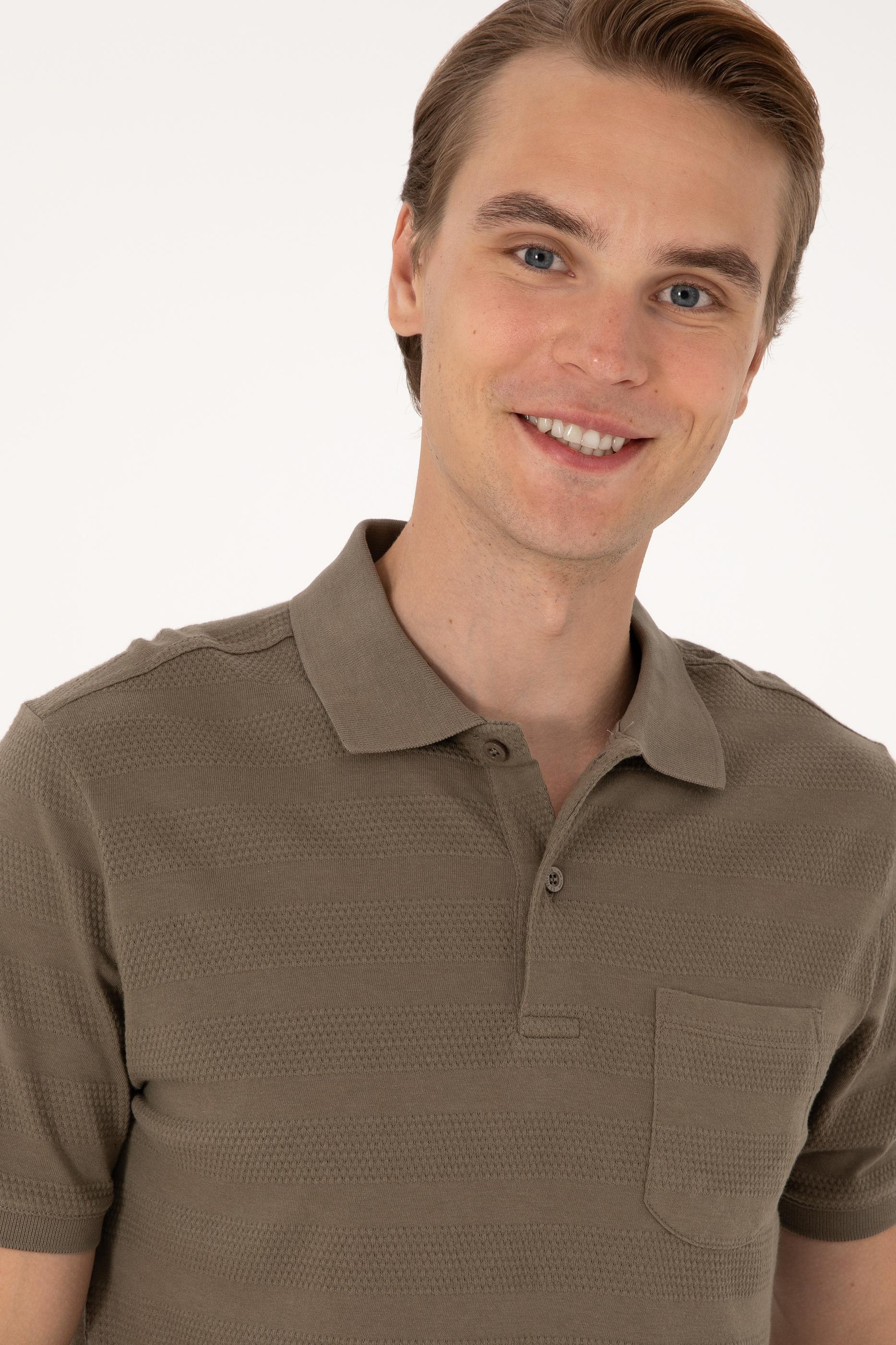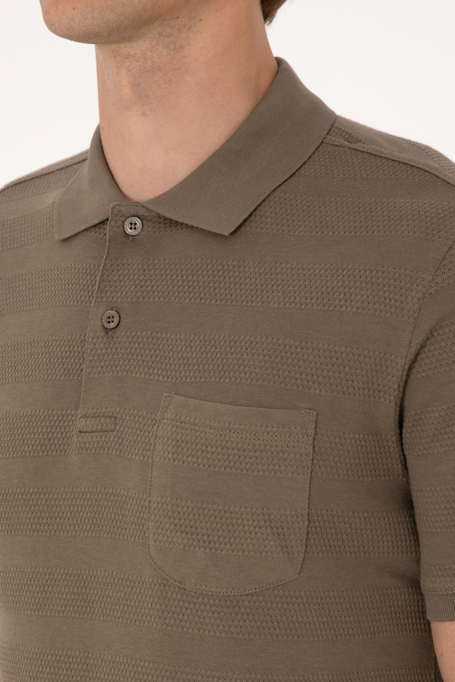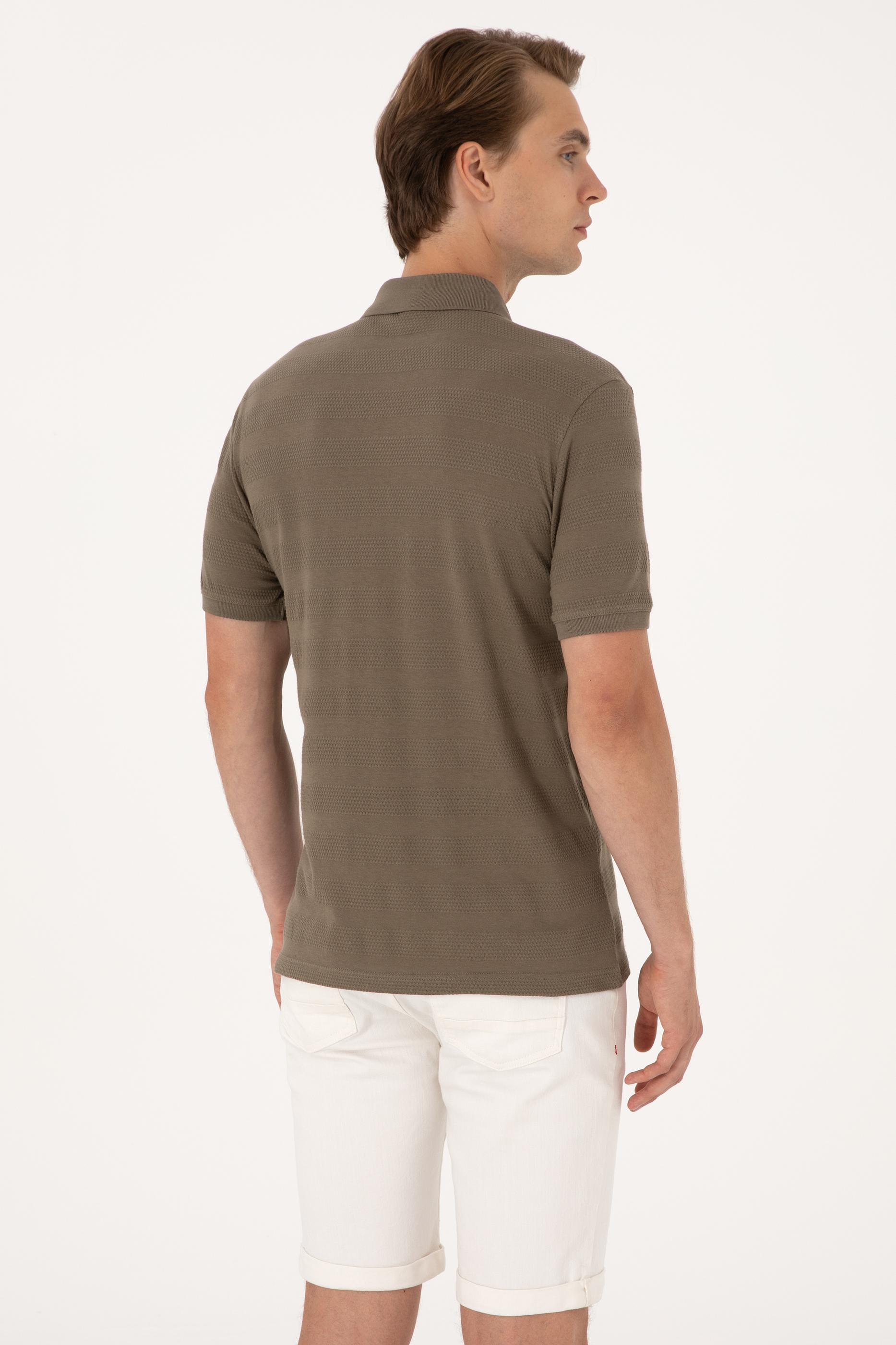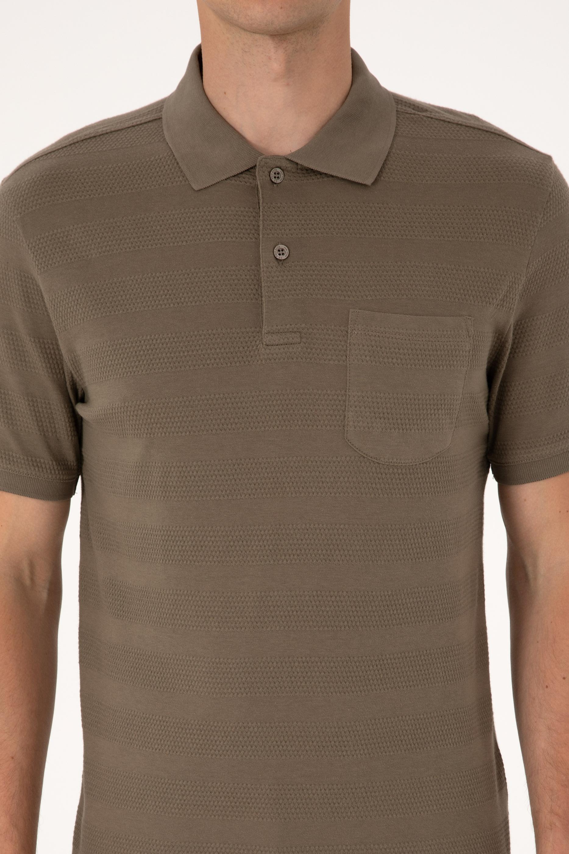 Erkek Regular Fit Vizon Polo Yaka Dokulu Tişört