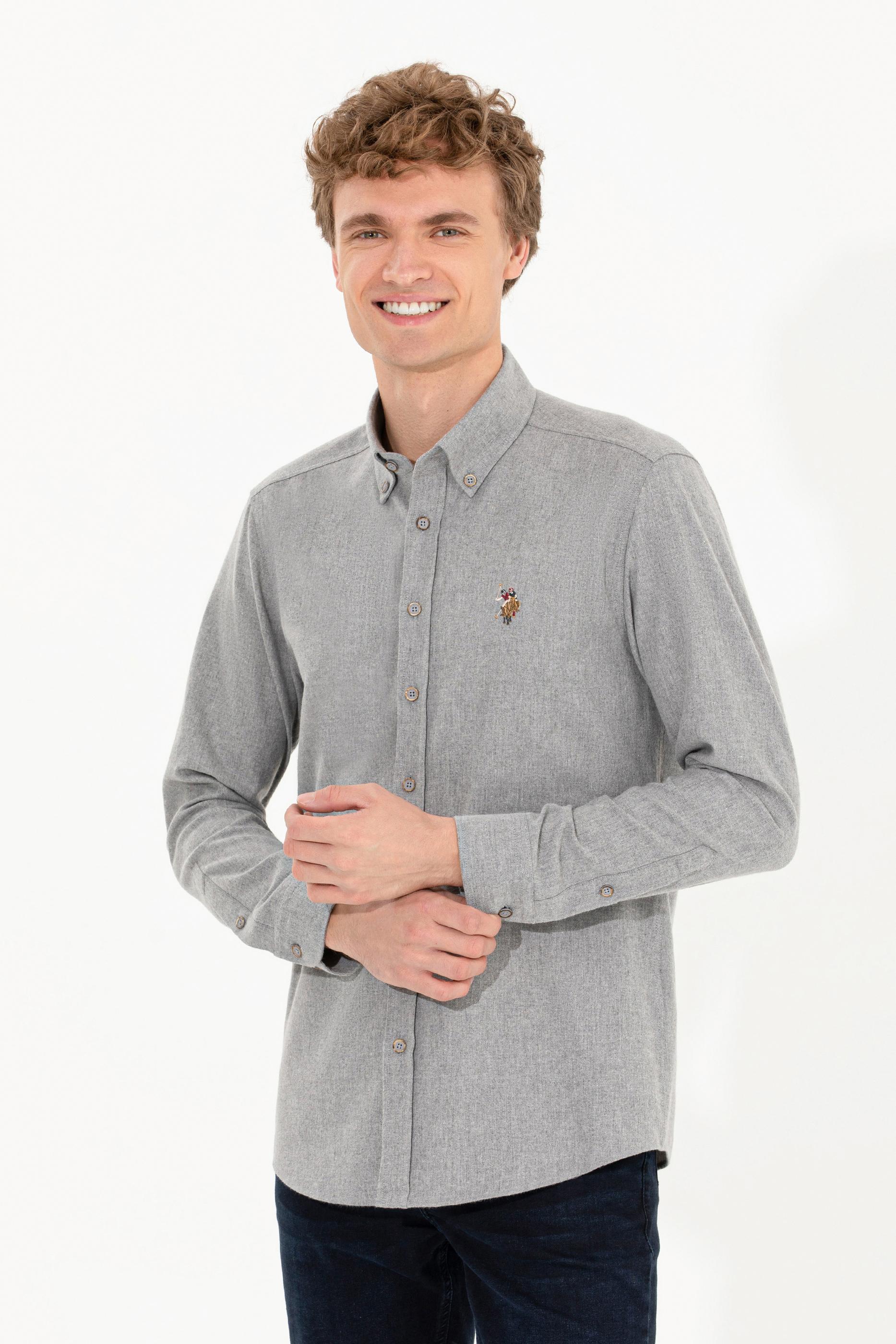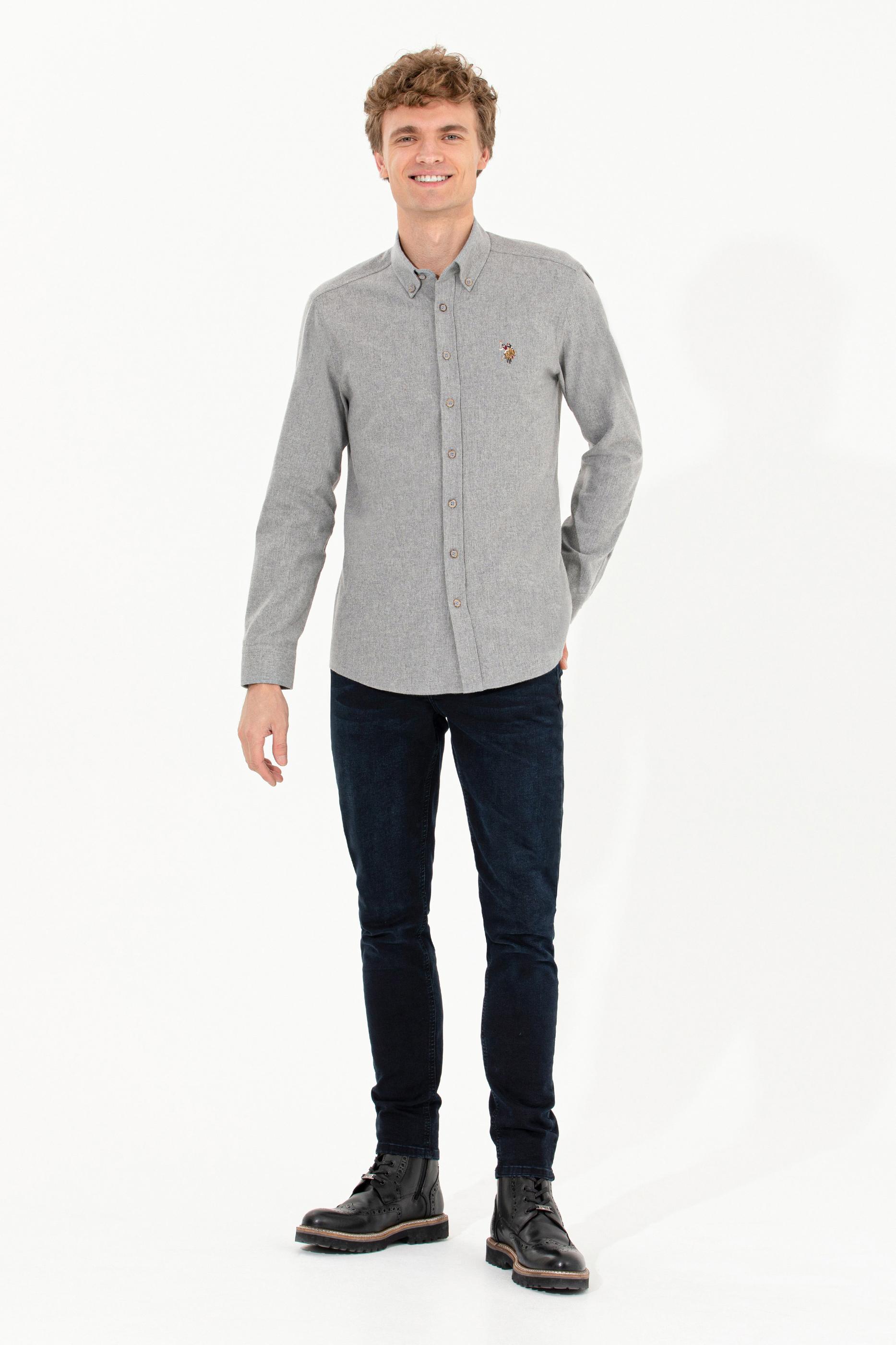 Erkek Vizon Uzun Kollu Basic Gömlek