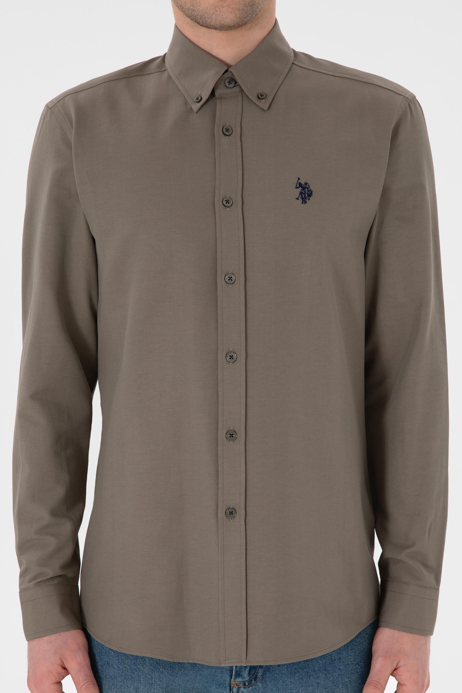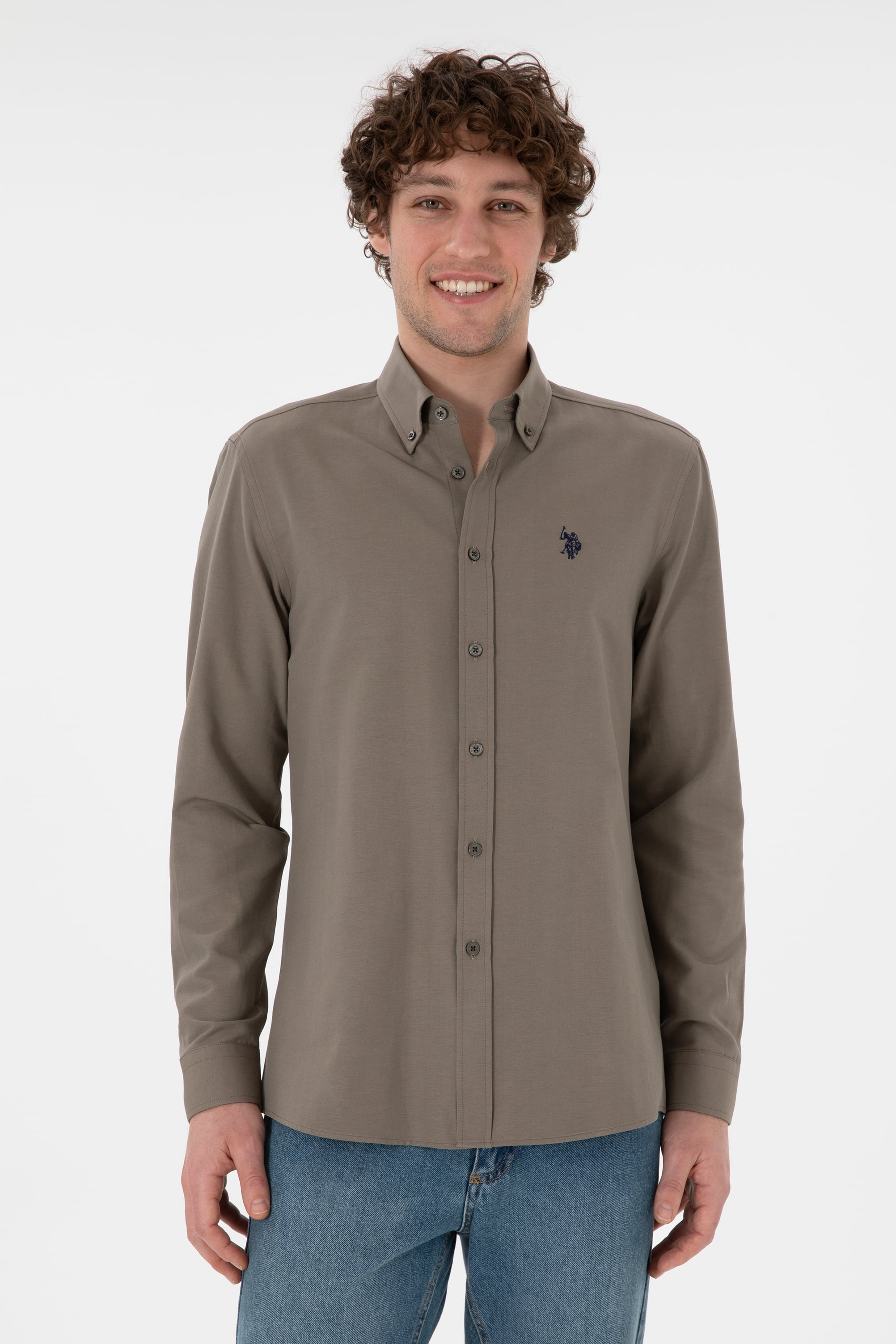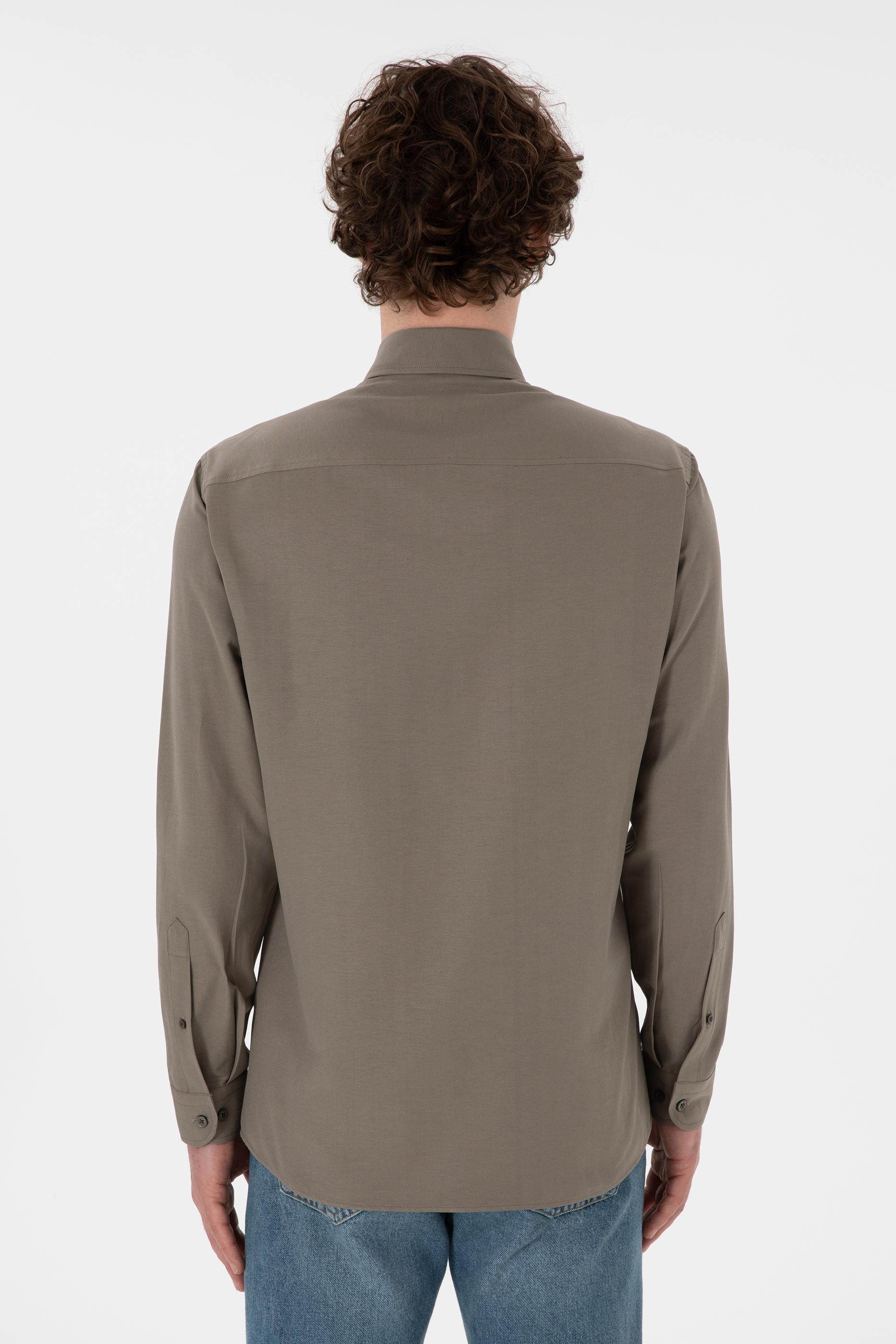 Erkek Vizon Uzun Kollu Basic Gömlek