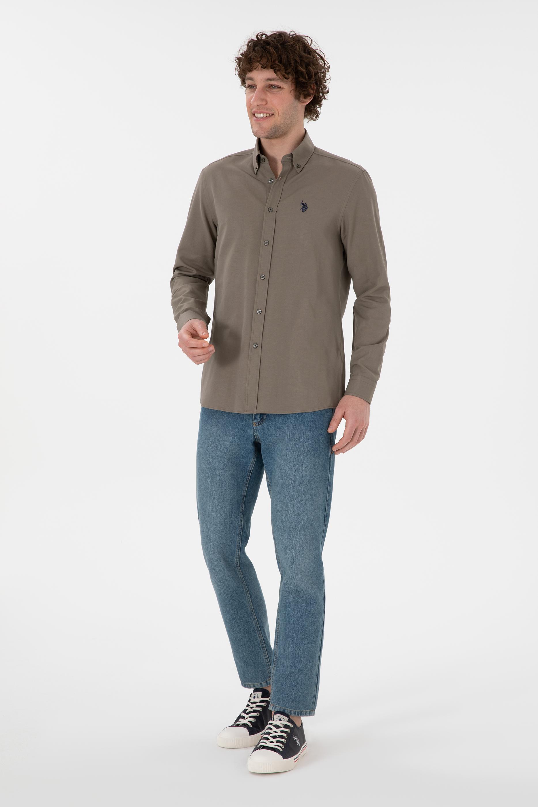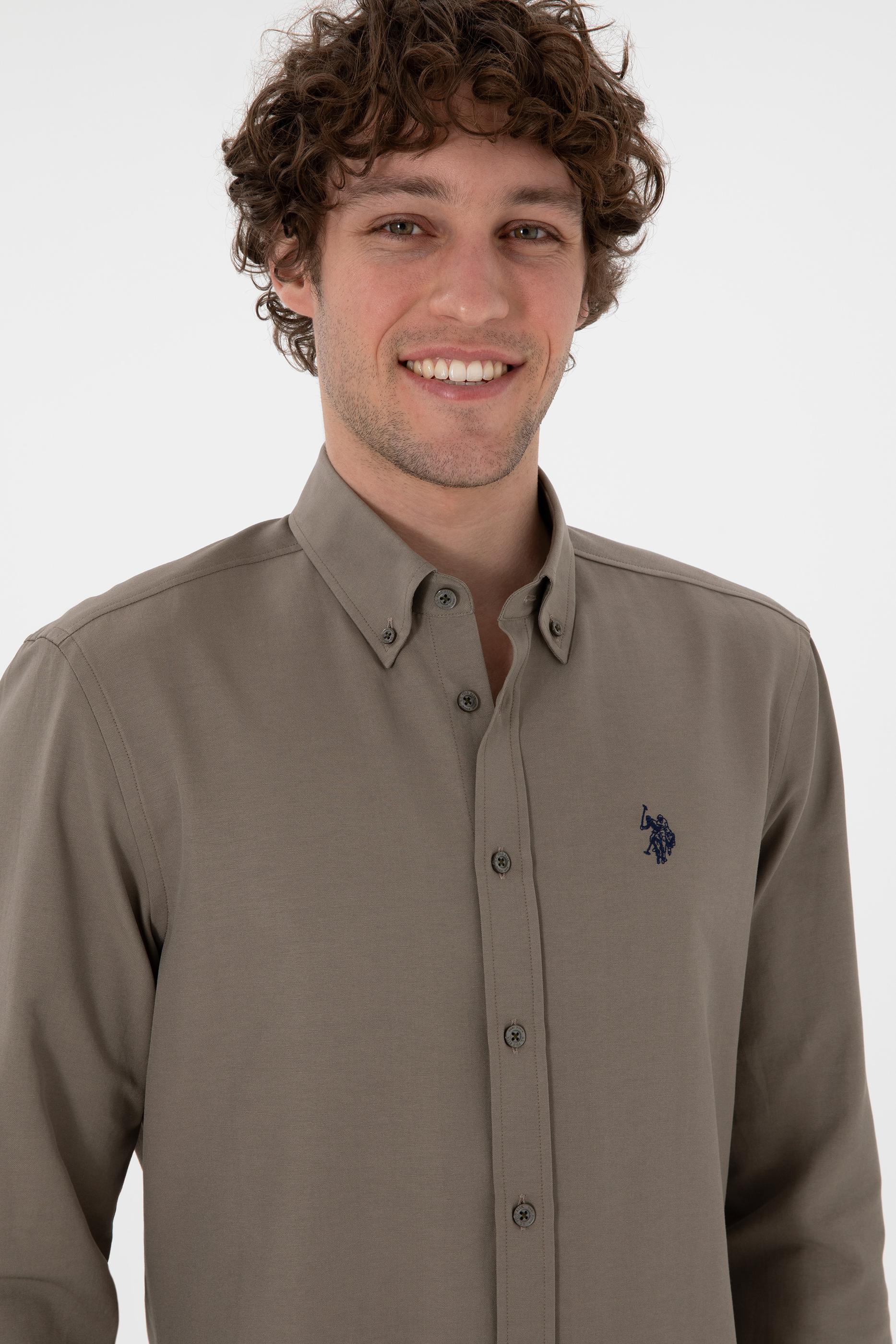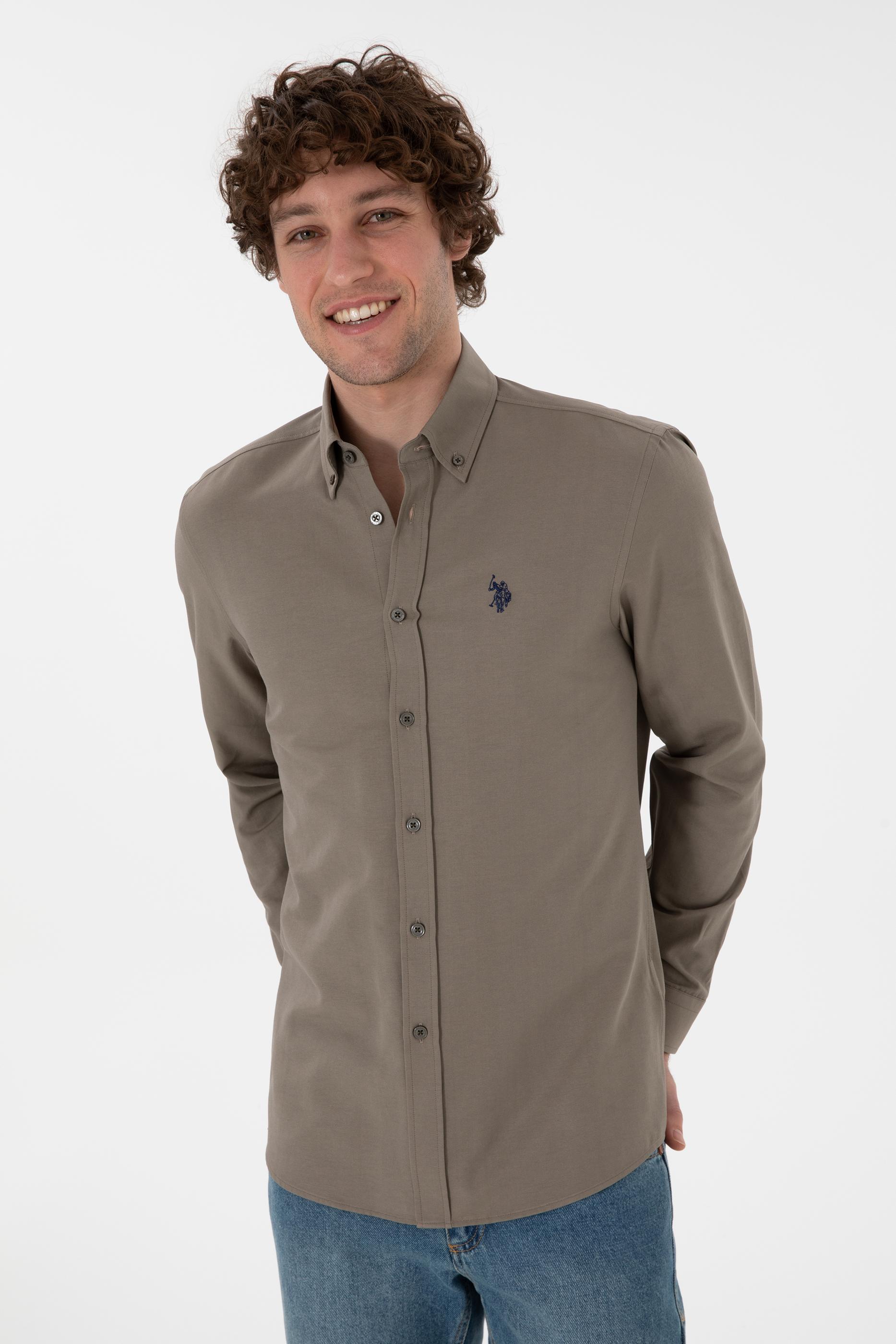 Erkek Vizon Uzun Kollu Basic Gömlek