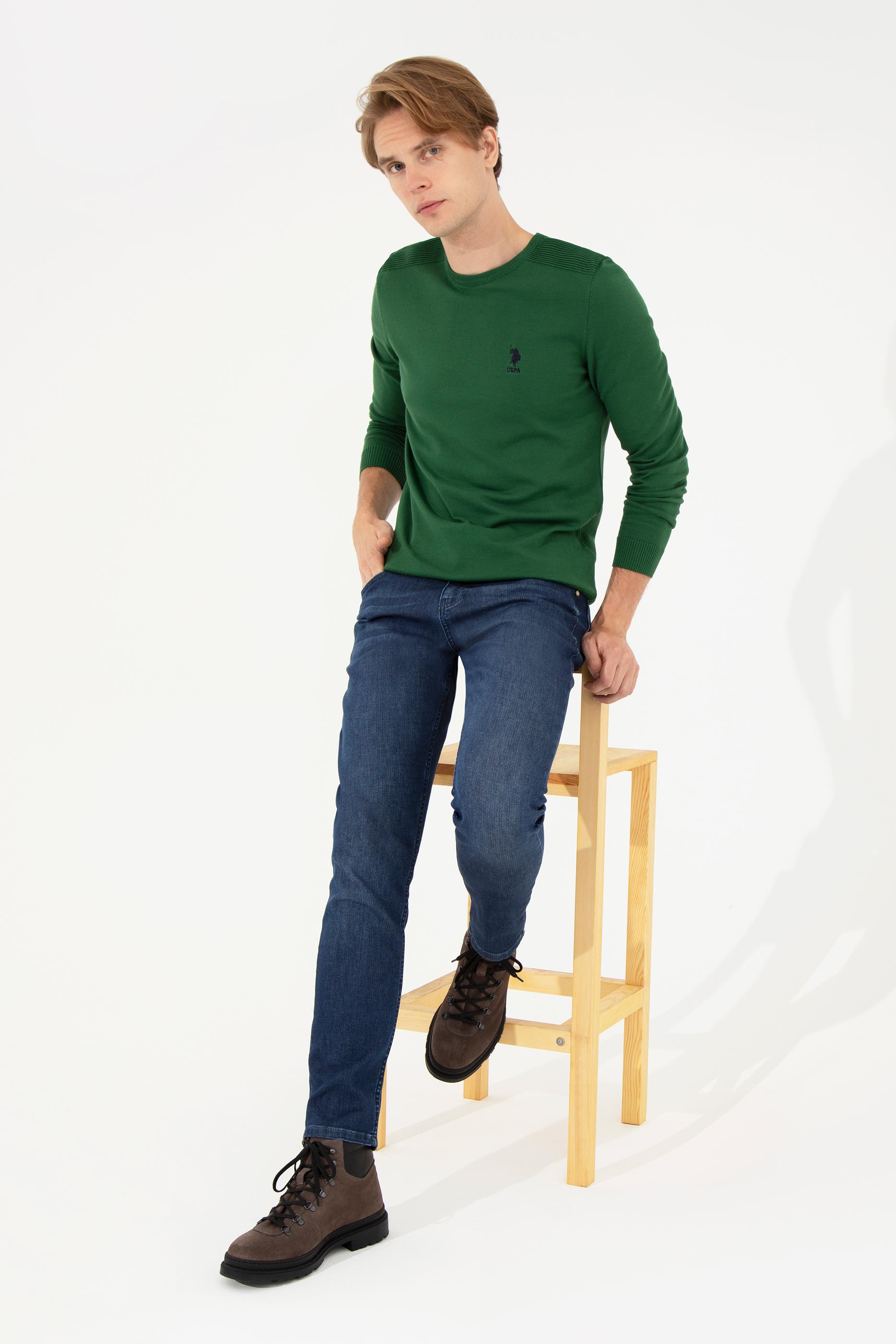 Omuzlarında çizgili detaylar bulunan basic bisiklet yaka erkek triko kazak modelimiz hayallerinizdeki spor görünümü zamansız şıklıkla harmanlar. Bedeninizin formda bir etki sunmasına yardımcı olan slim fit erkek triko kazağımız vücut hatlarınızı kusursuzca ortaya çıkarır. %100 pamuk erkek triko kazak modelimiz cilt sağlığını önemseyenlerin ve konforlu kıyafet deneyimi isteyenlerin favori kıyafetlerindendir.