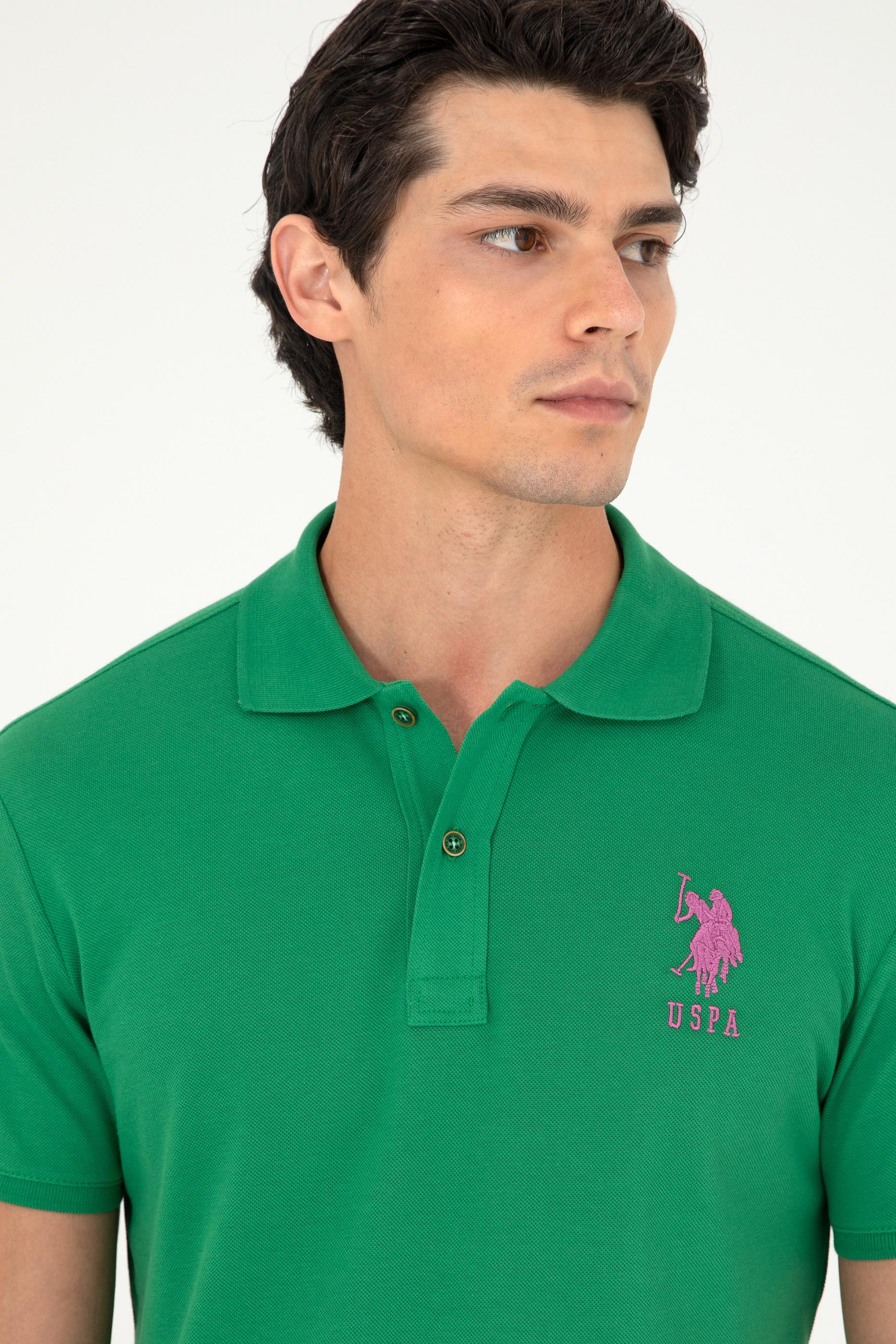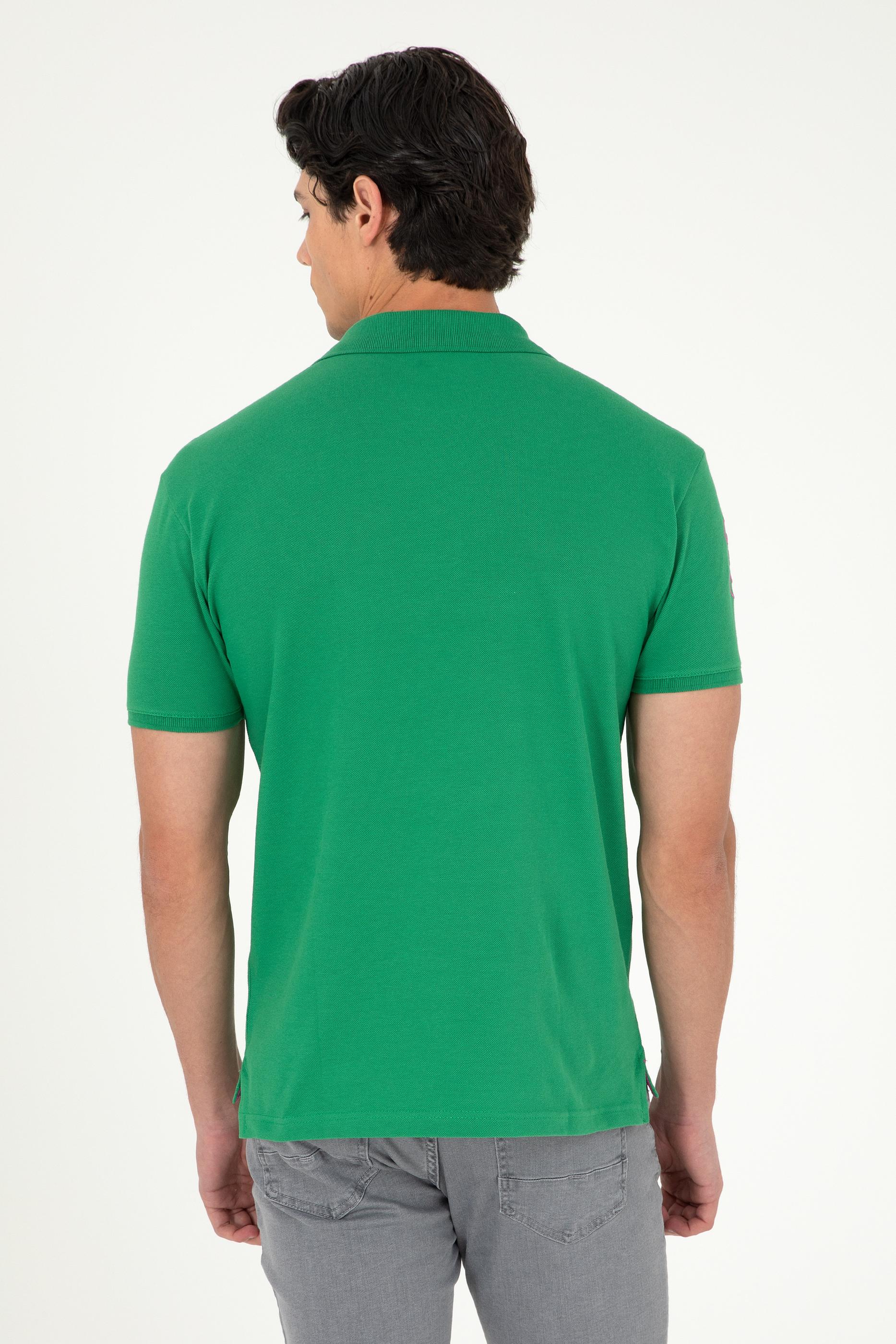 - Erkek Slim Fit Polo Yaka Yeşil Basic Tişört