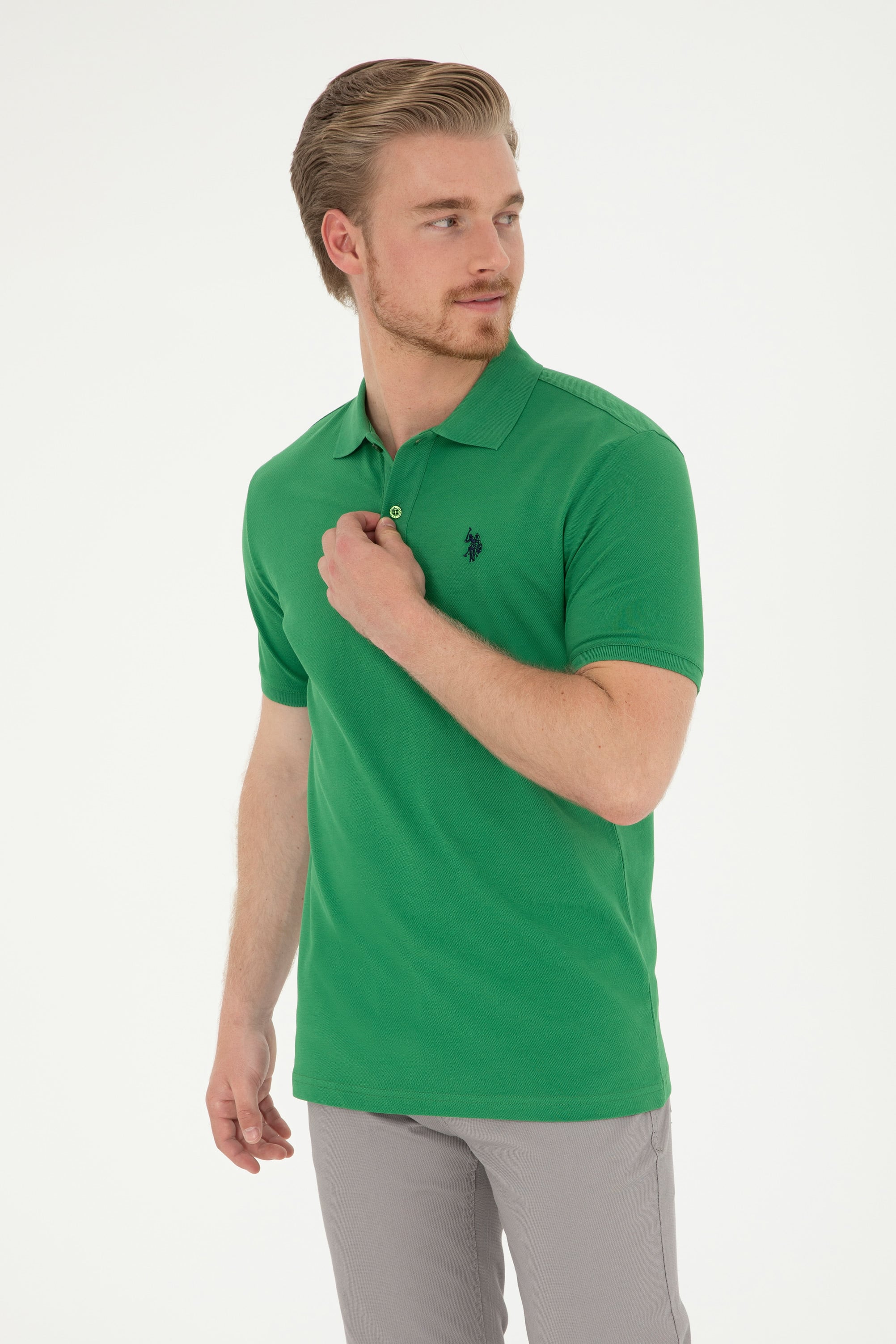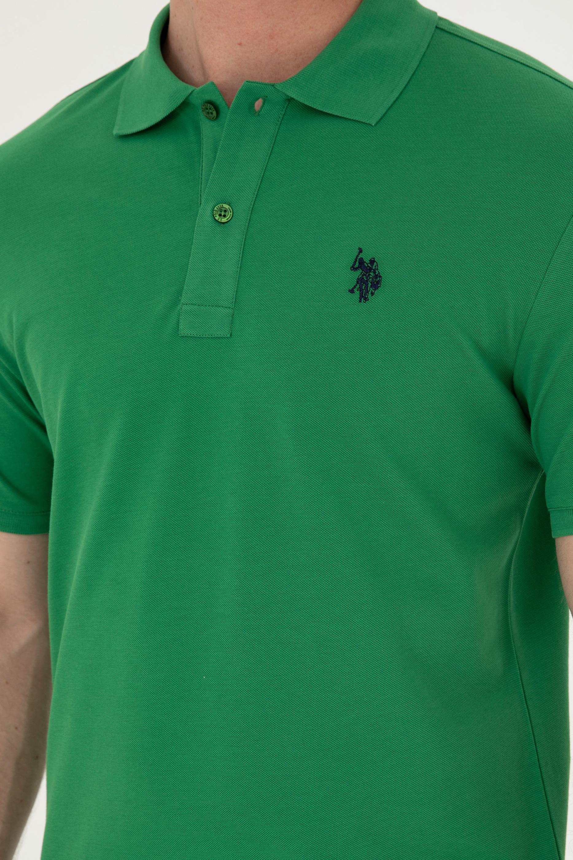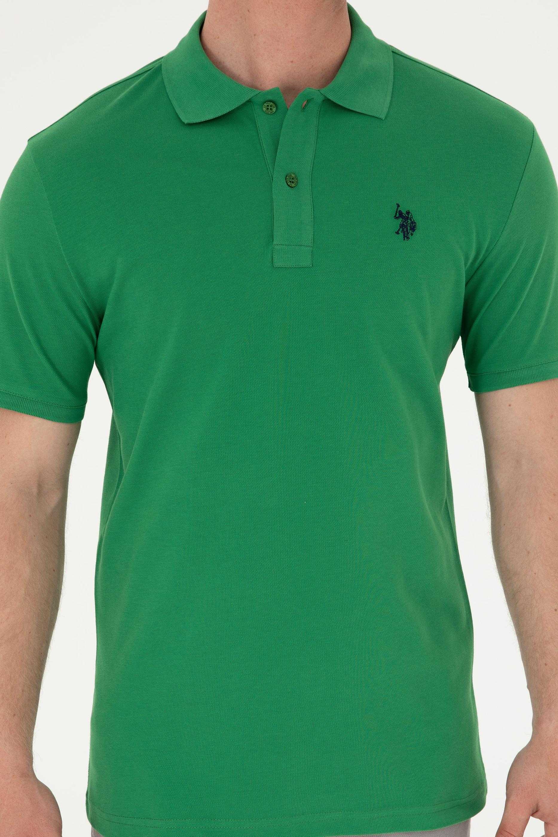 Erkek Slim Fit Polo Yaka Yeşil Basic Tişört