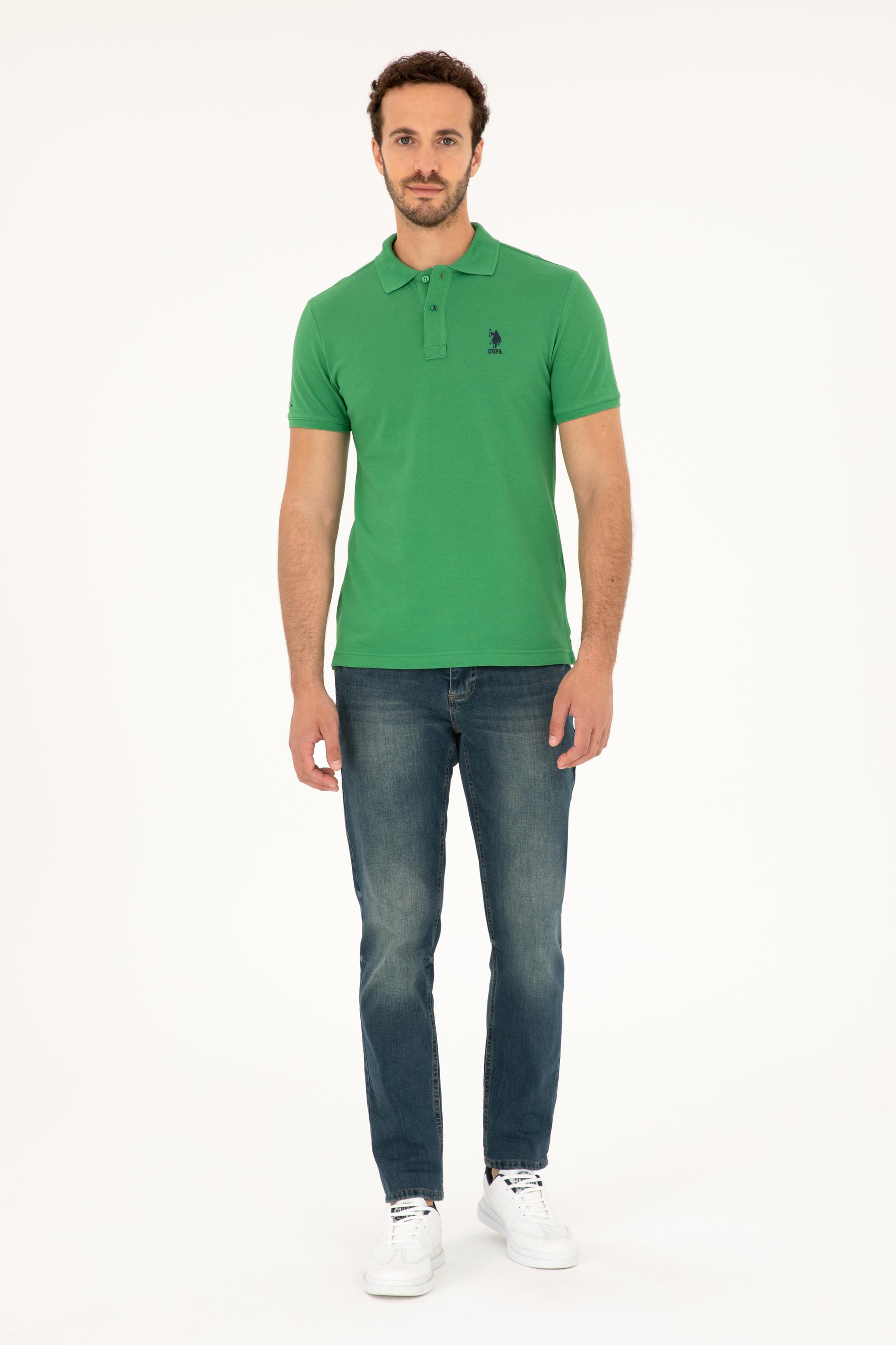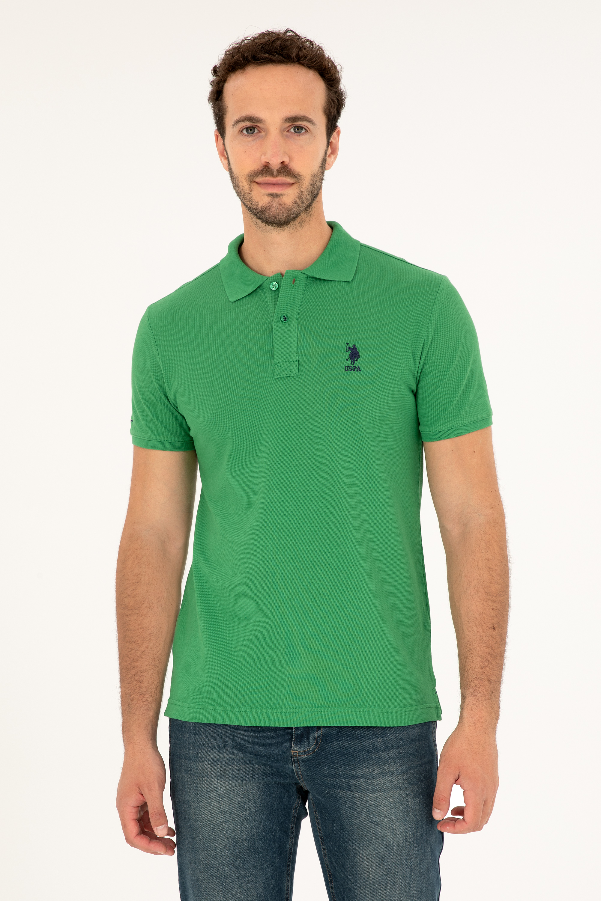 - Erkek Slim Fit Polo Yaka Yeşil Basic Tişört