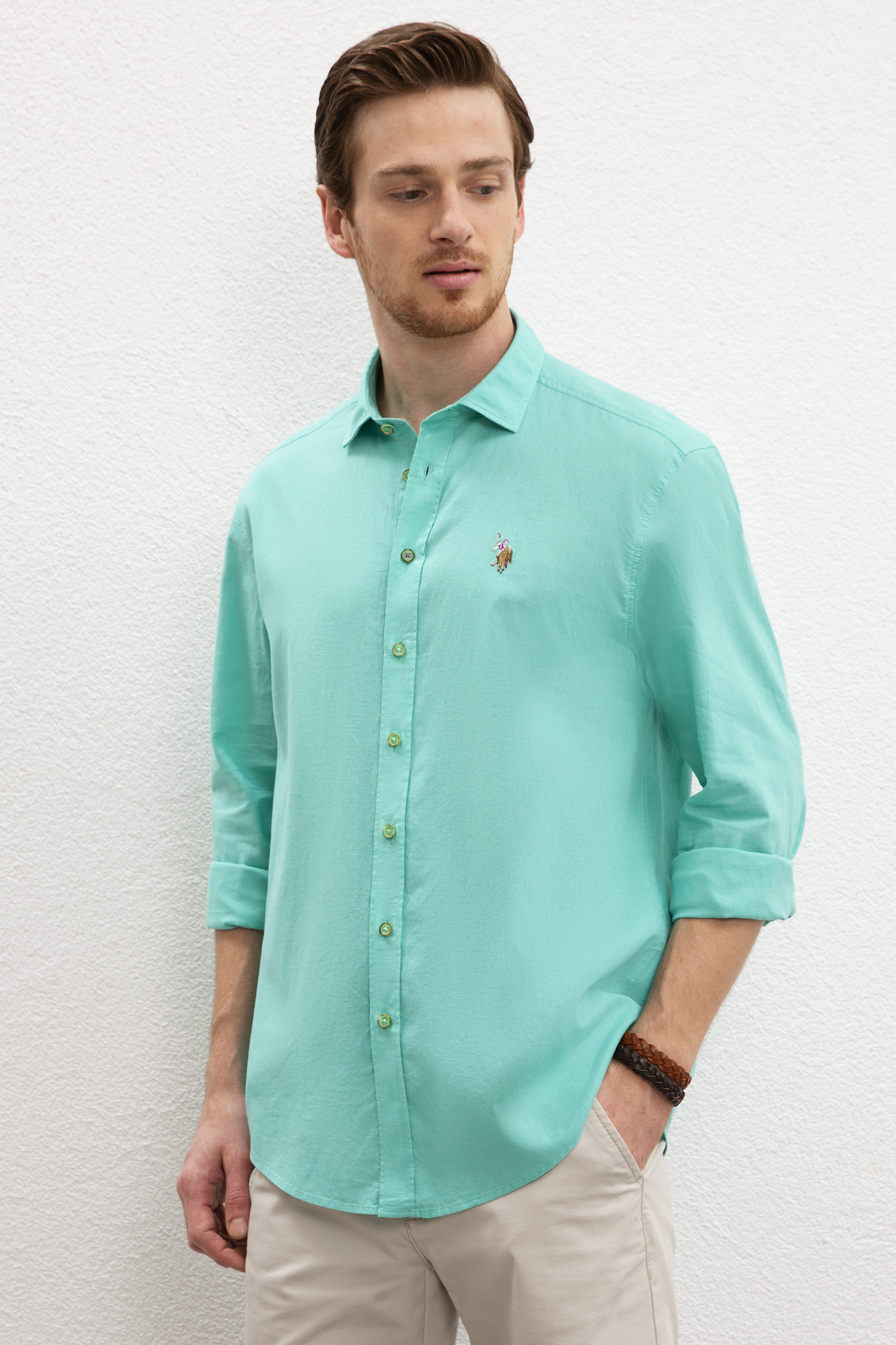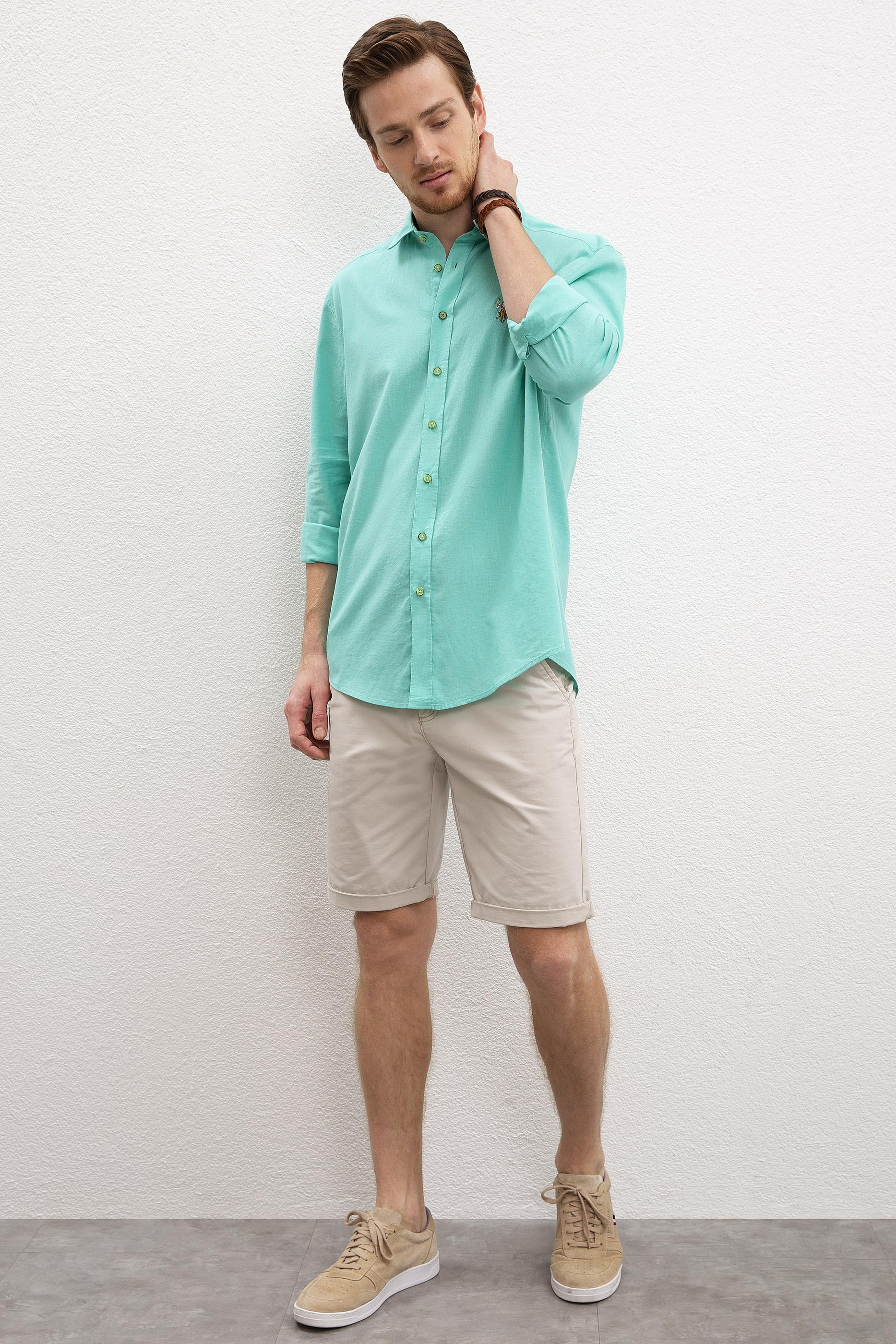 Erkek Yeşil Gömlek Uzunkol Basic
