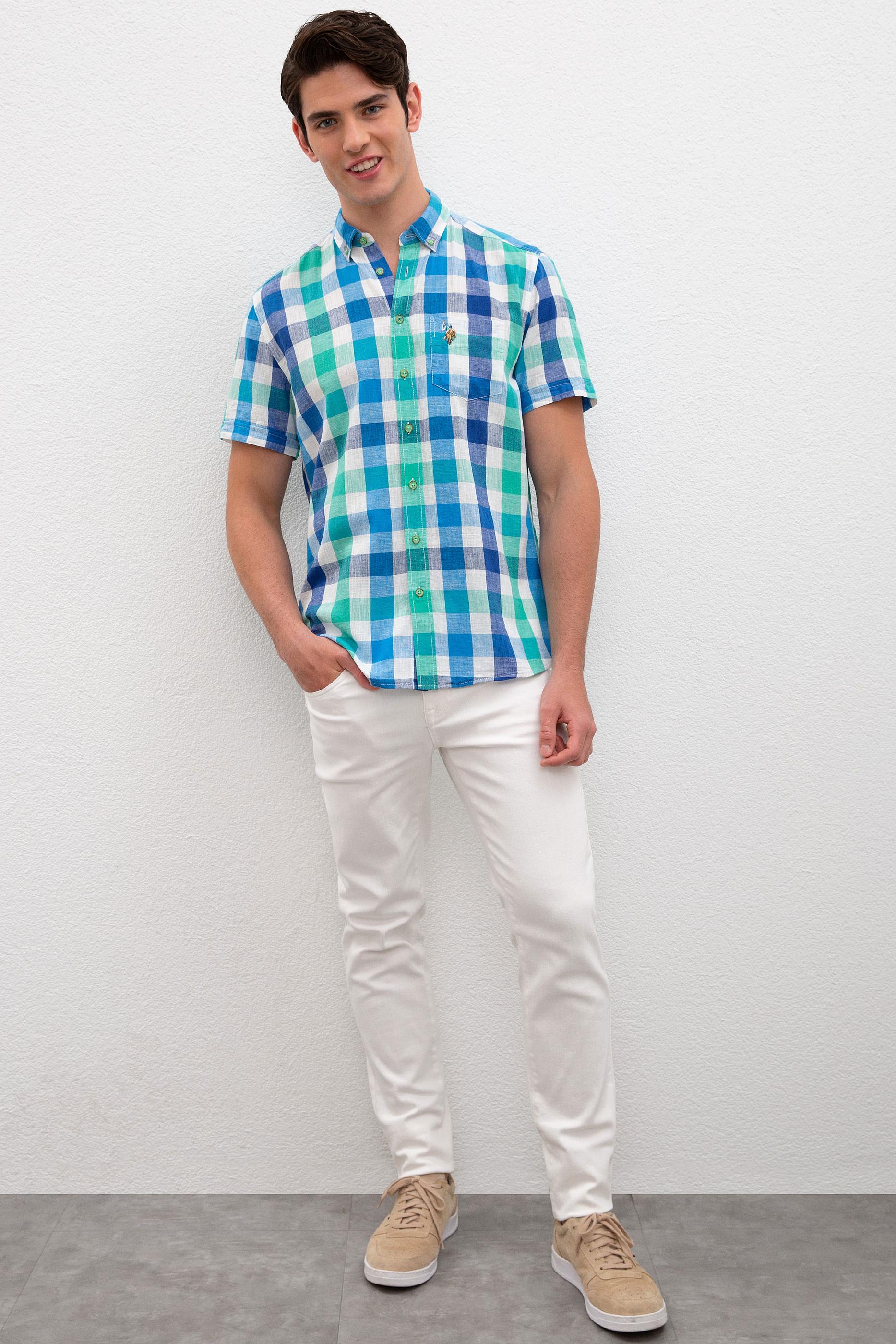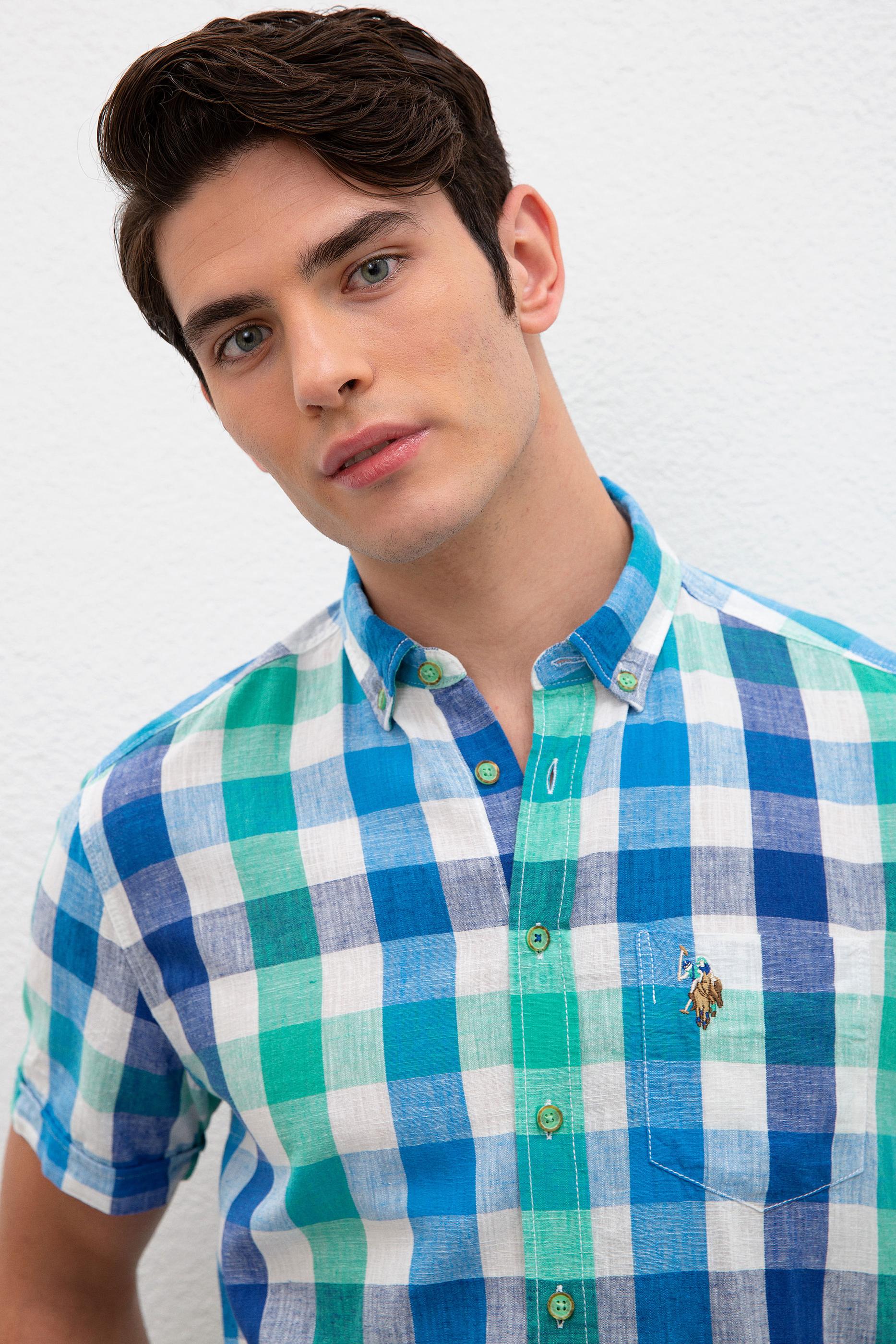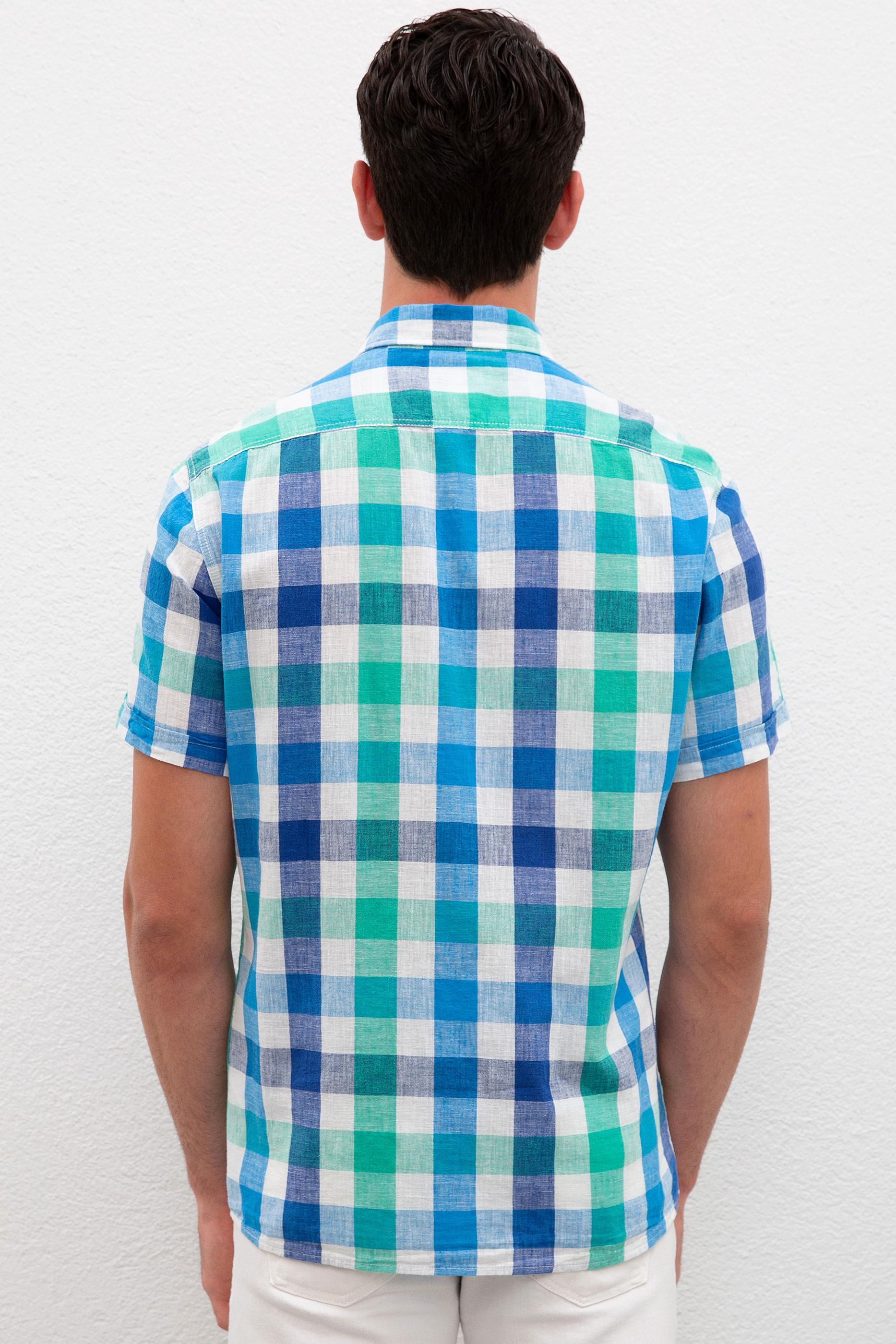 Erkek Yeşil Kareli Gömlek Kısakol