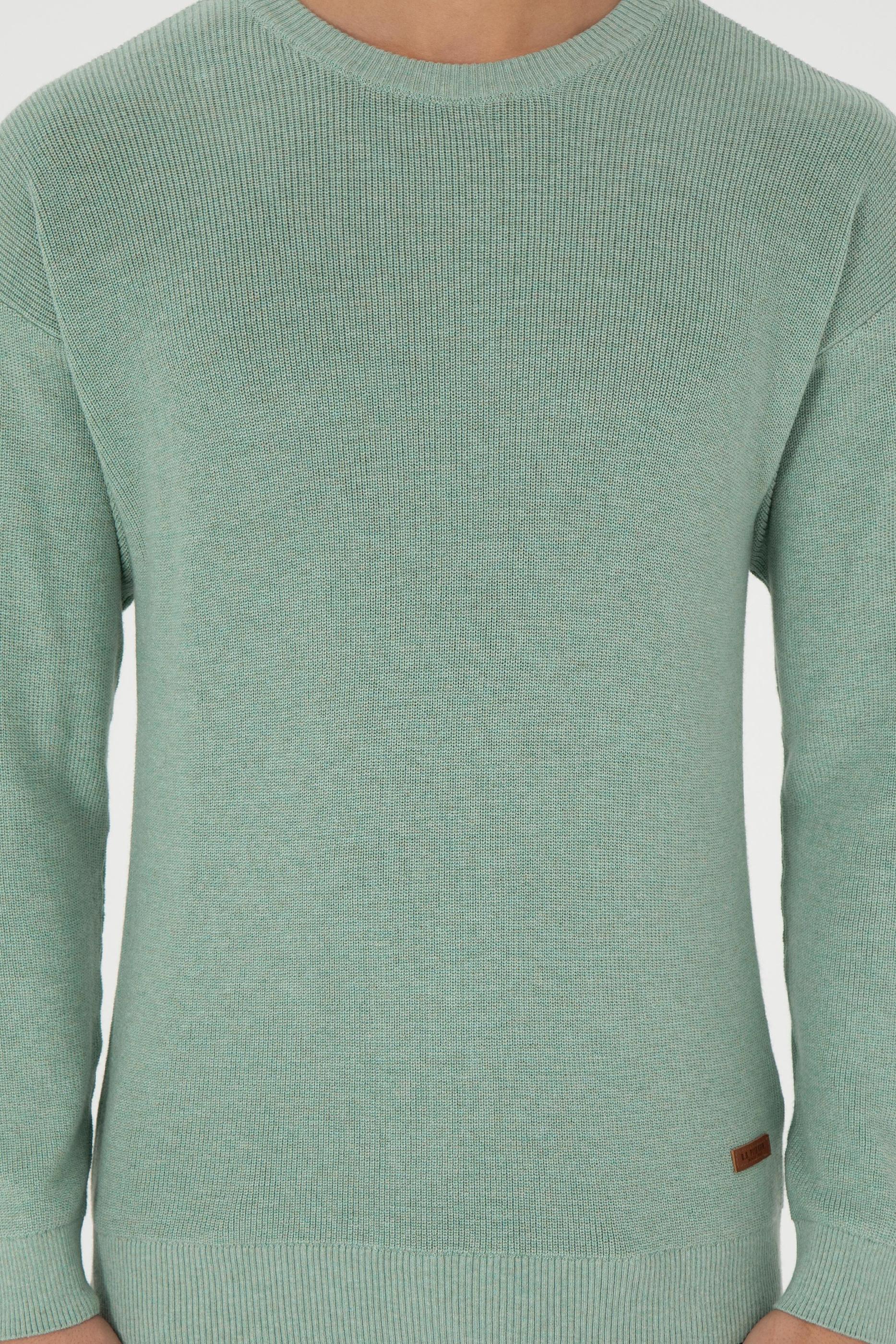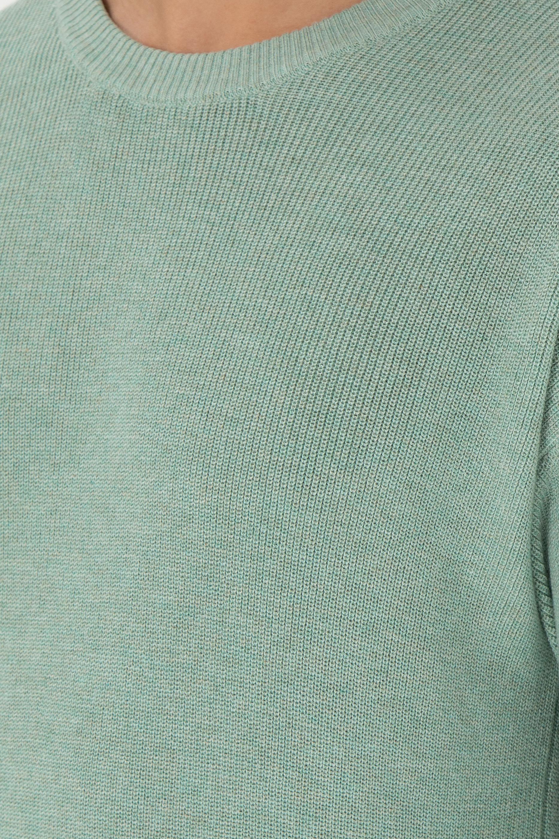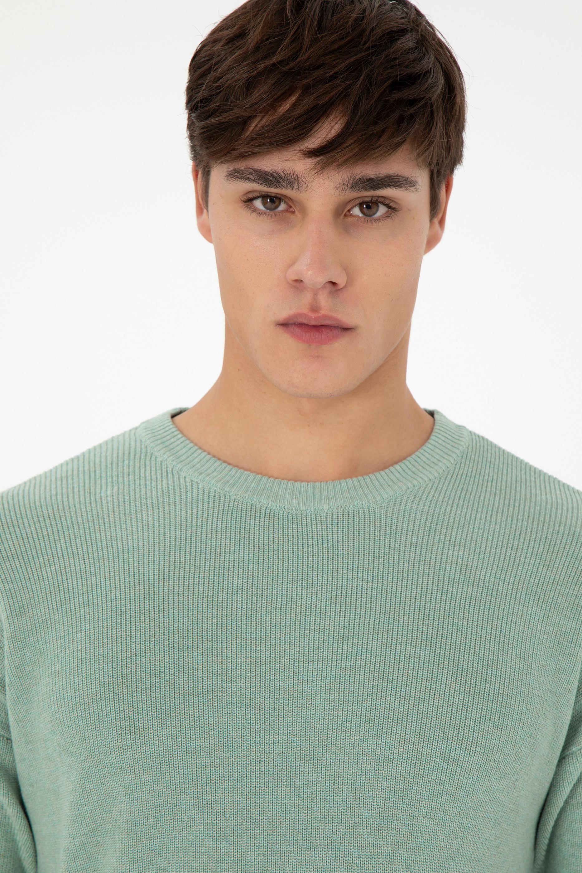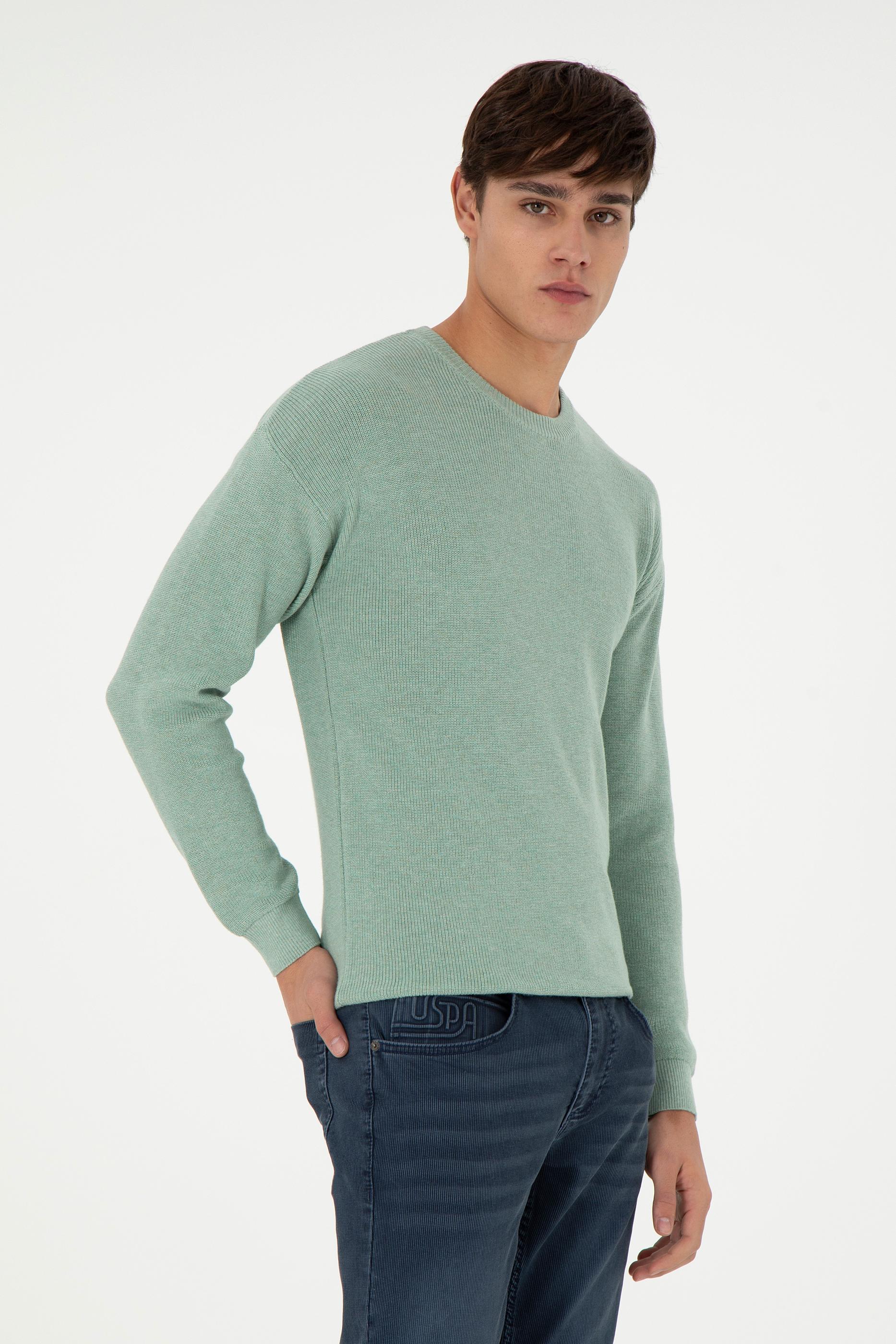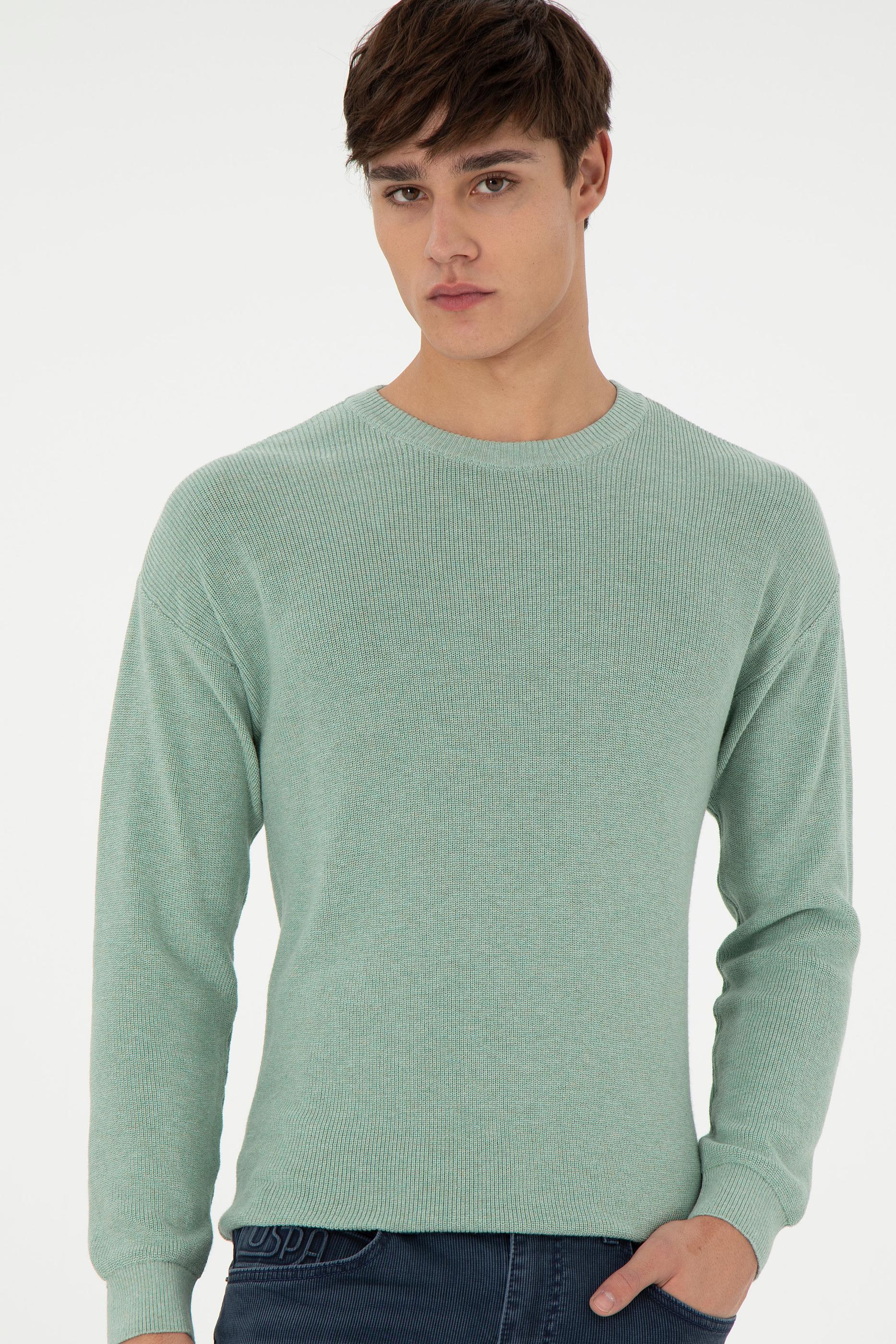 - Erkek Regular Fit Bisiklet Yaka Yeşil Melanj Basic Kazak