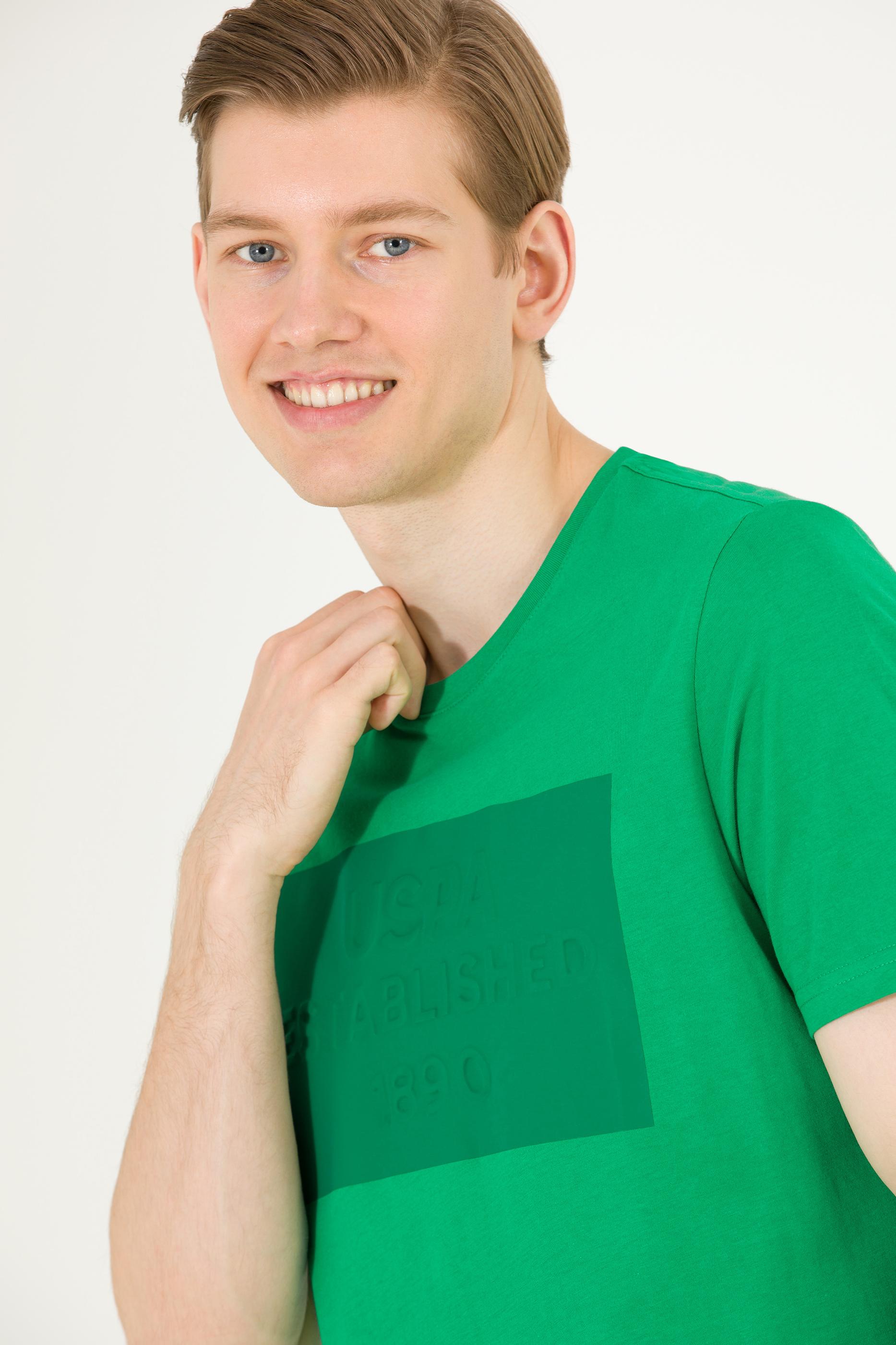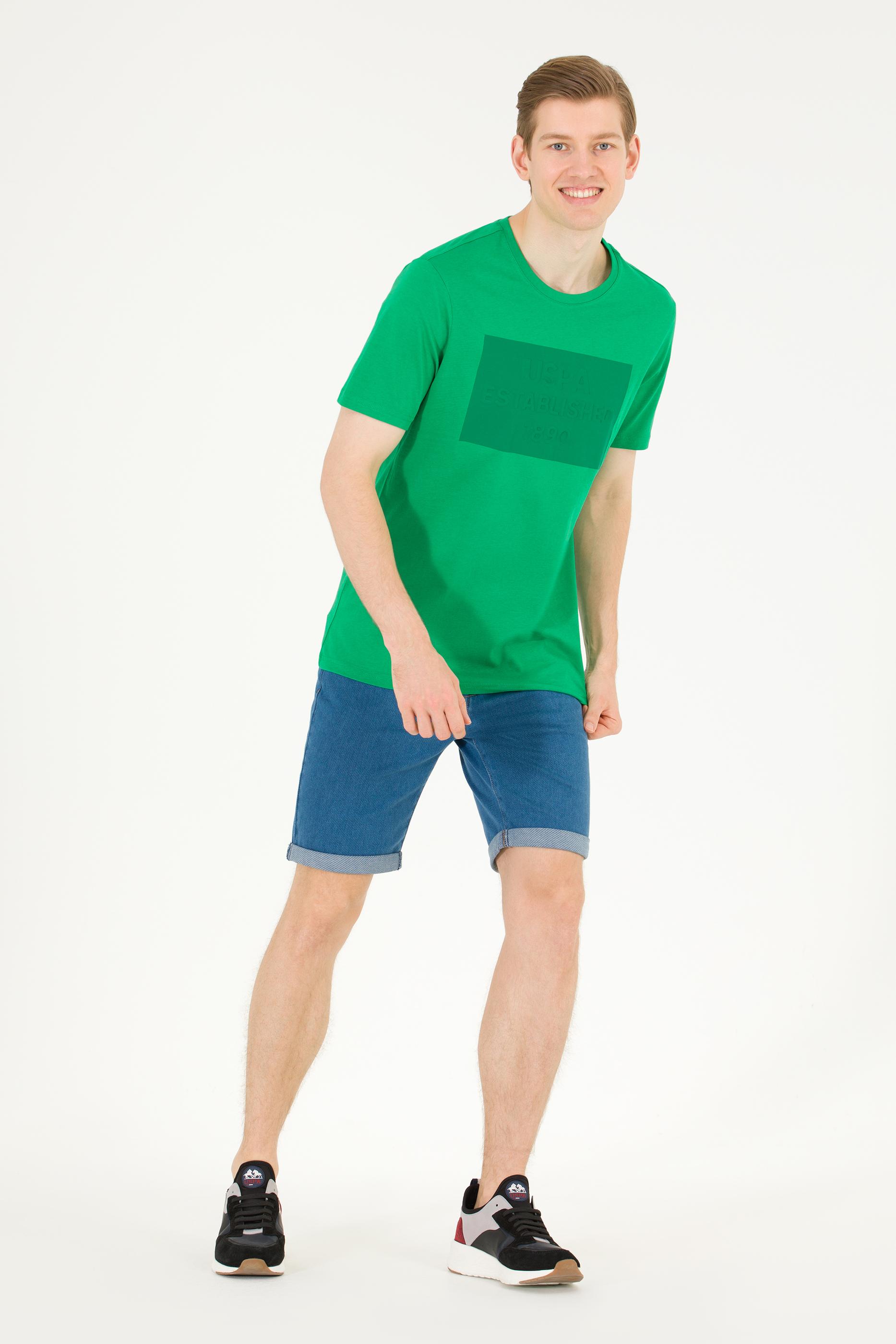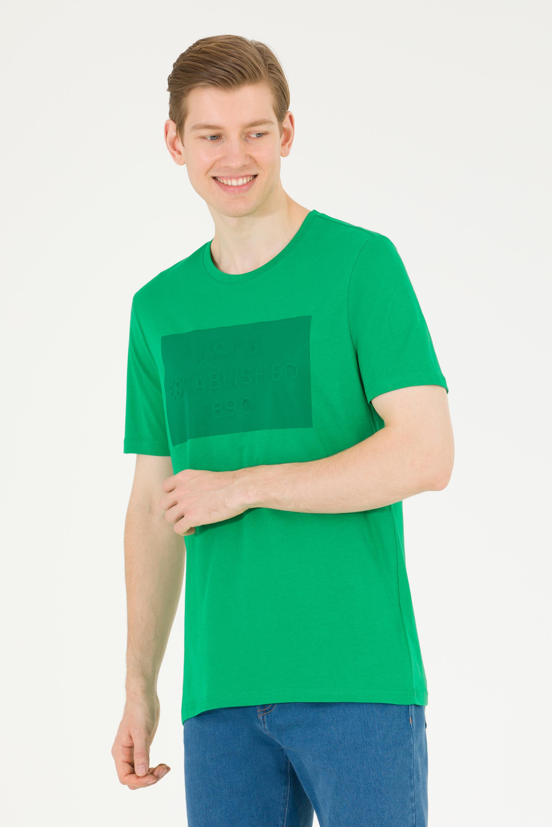 Erkek Yeşil Bisiklet Yaka Tişört