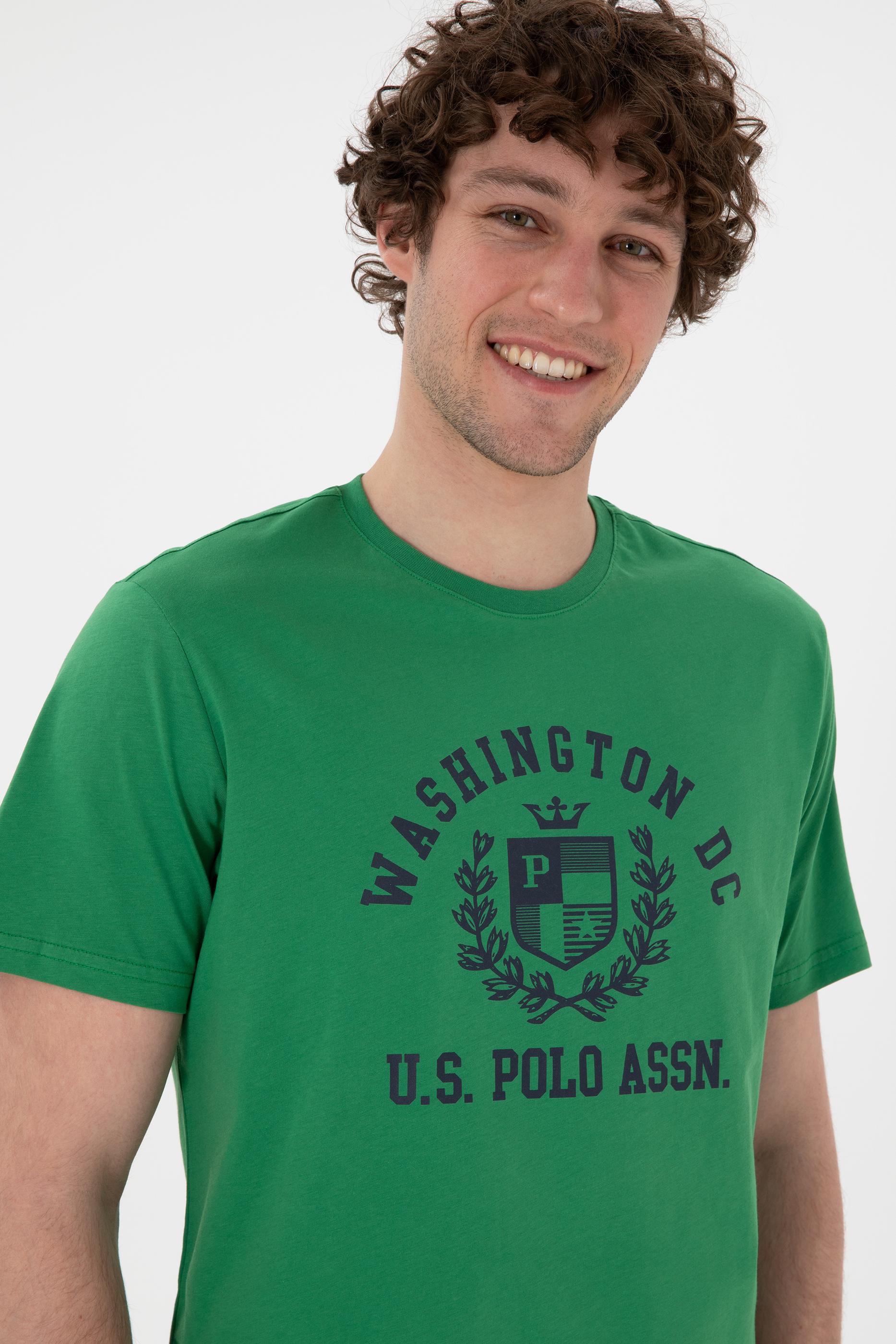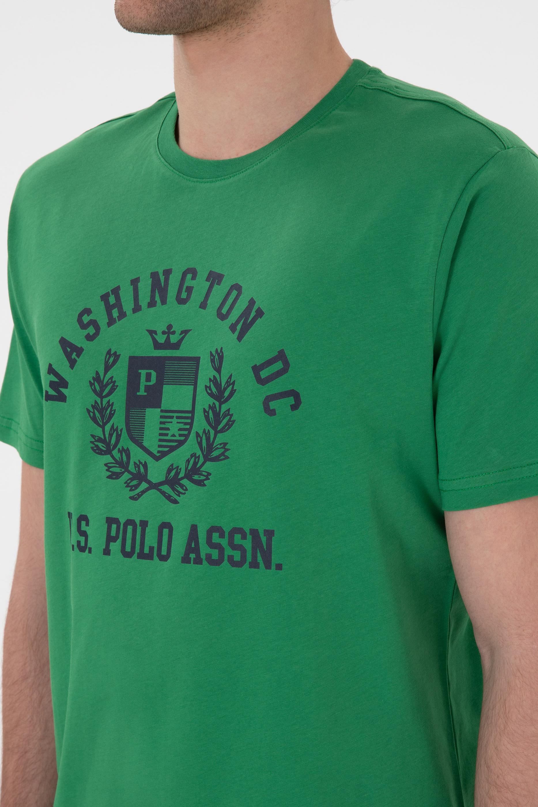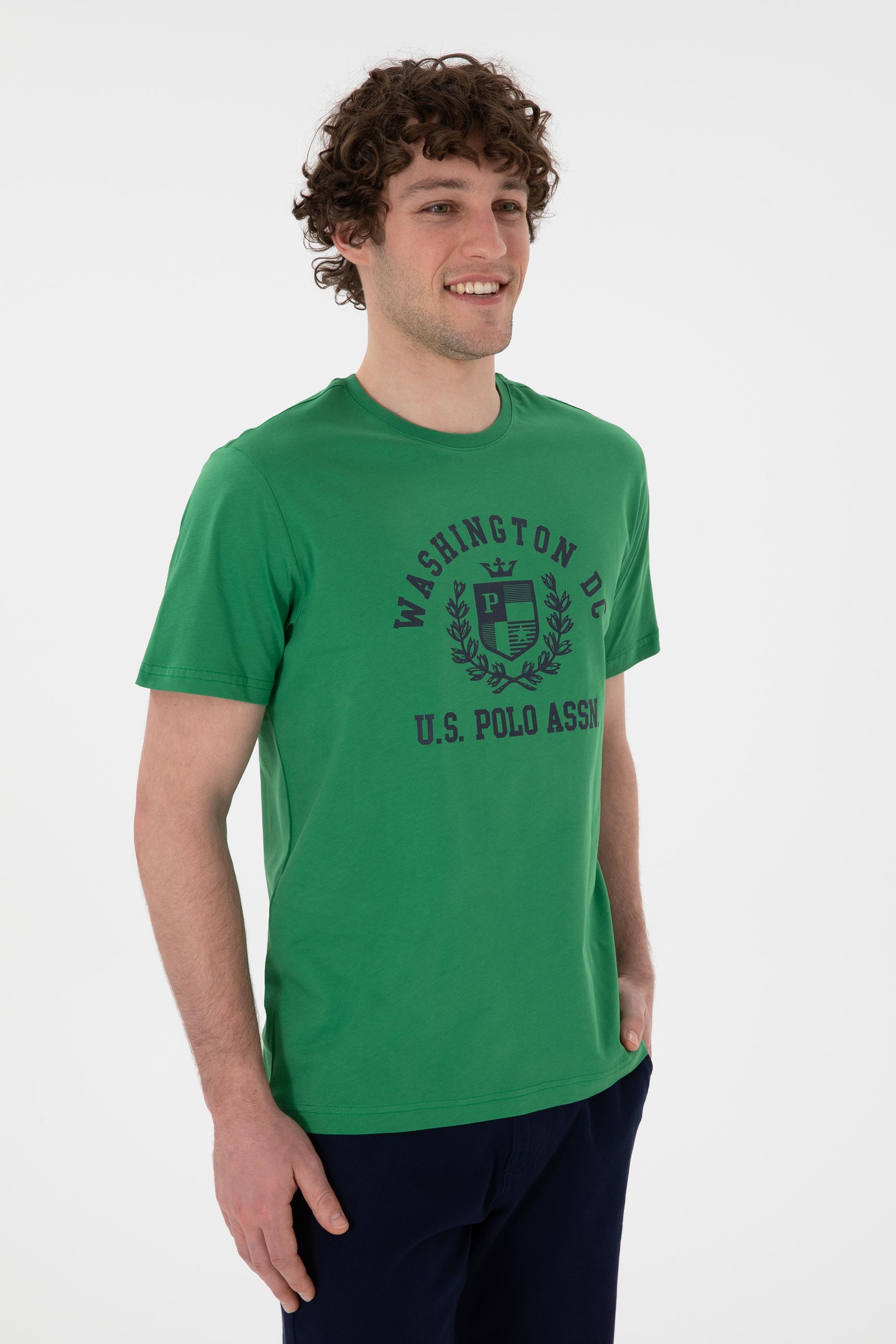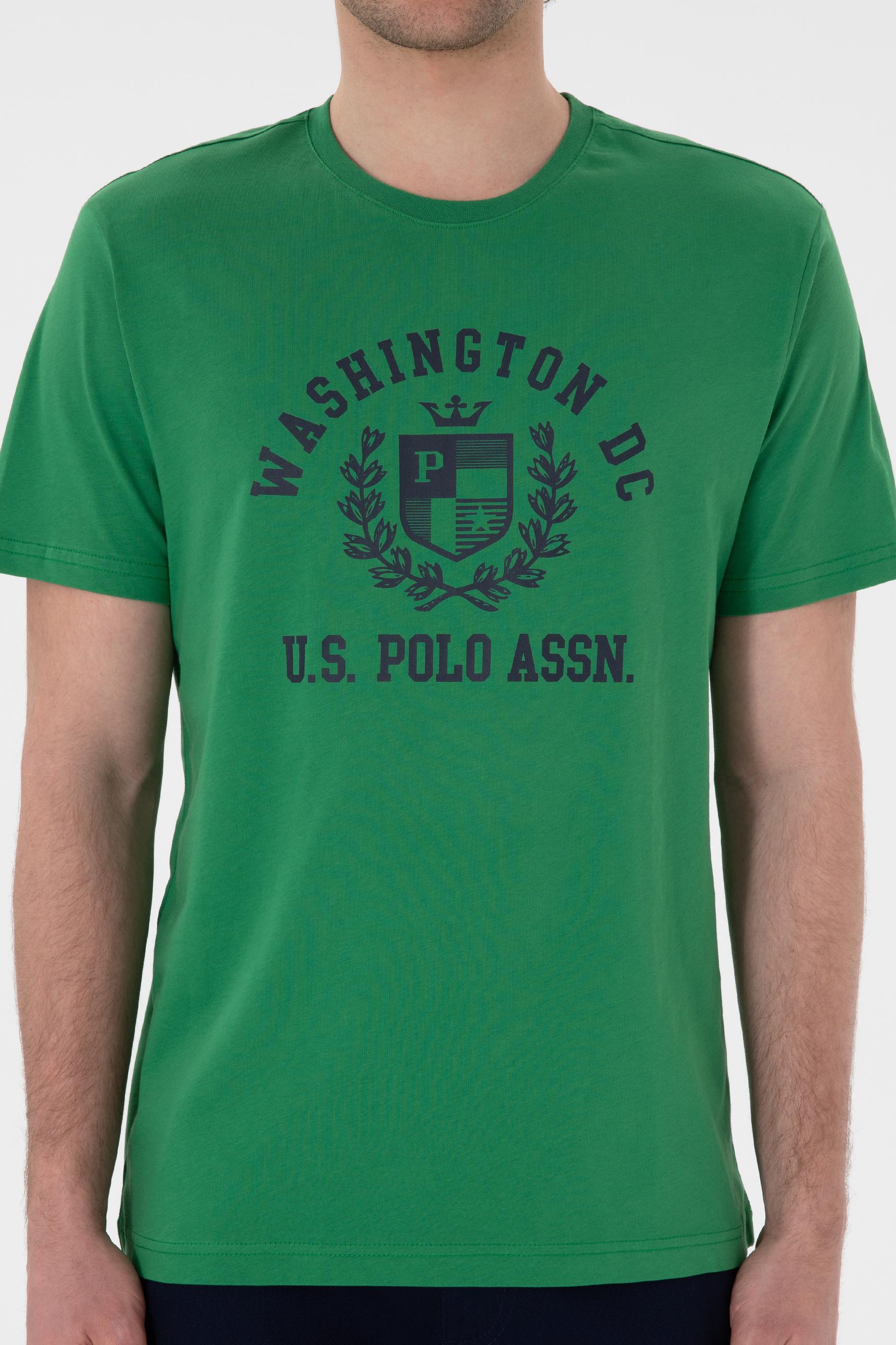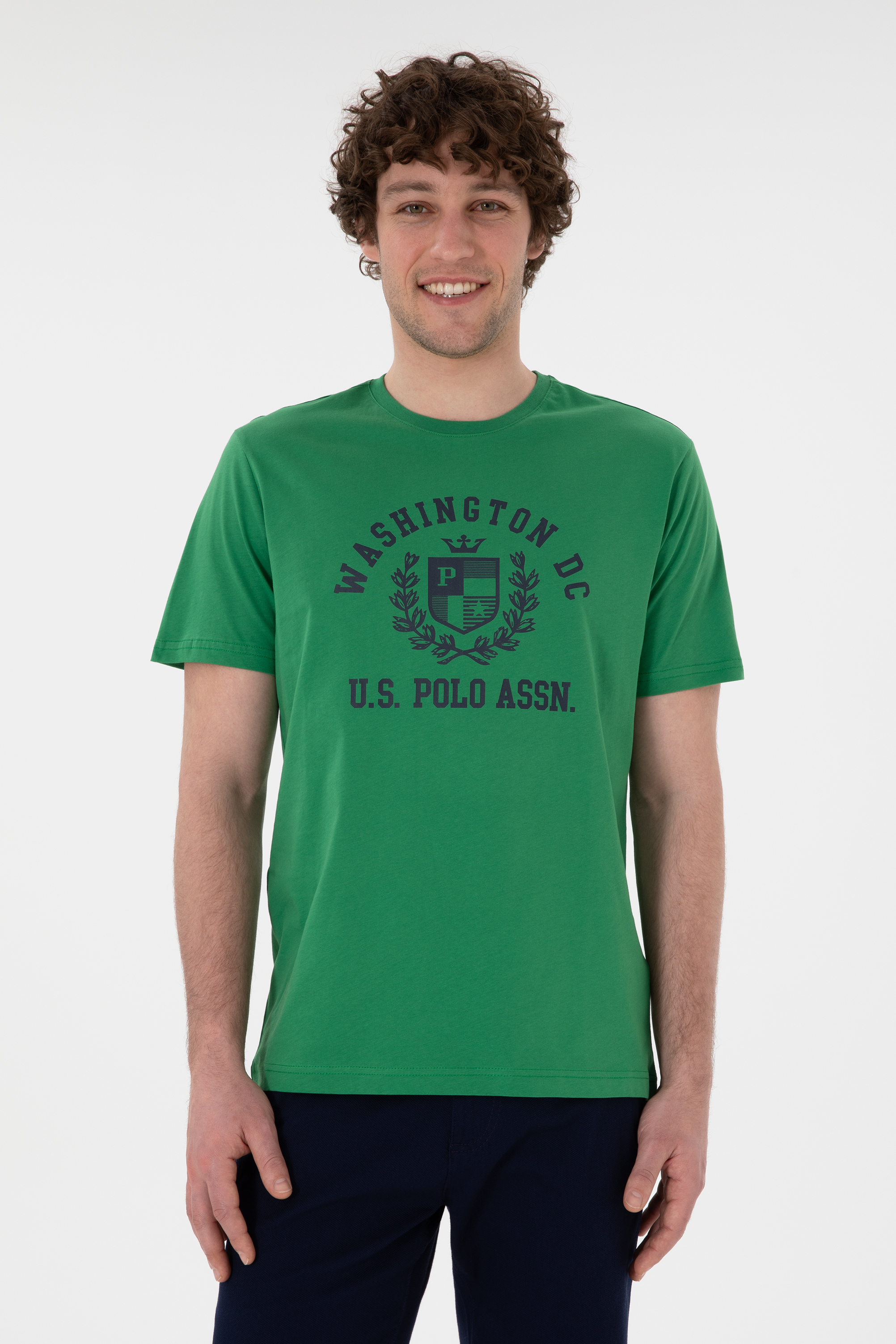 Erkek Regular Fit Bisiklet Yaka Baskılı Yeşil Tişört
