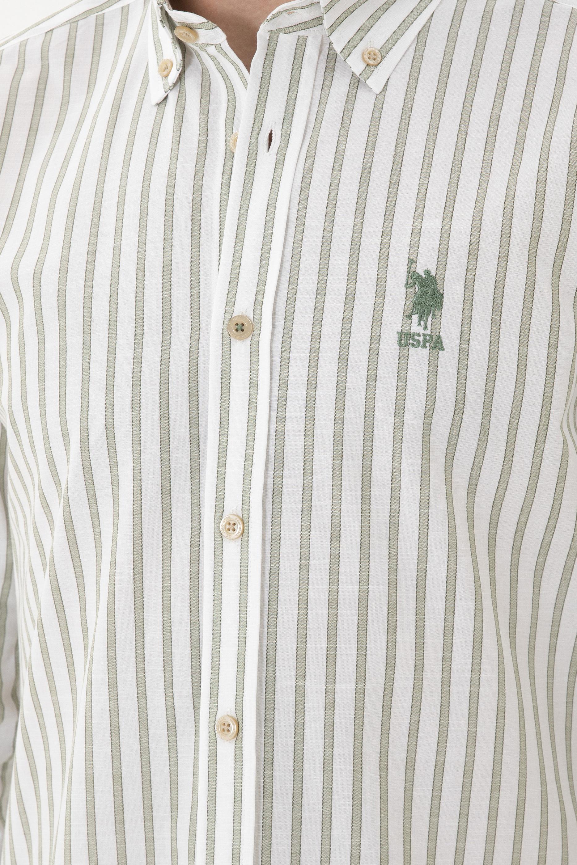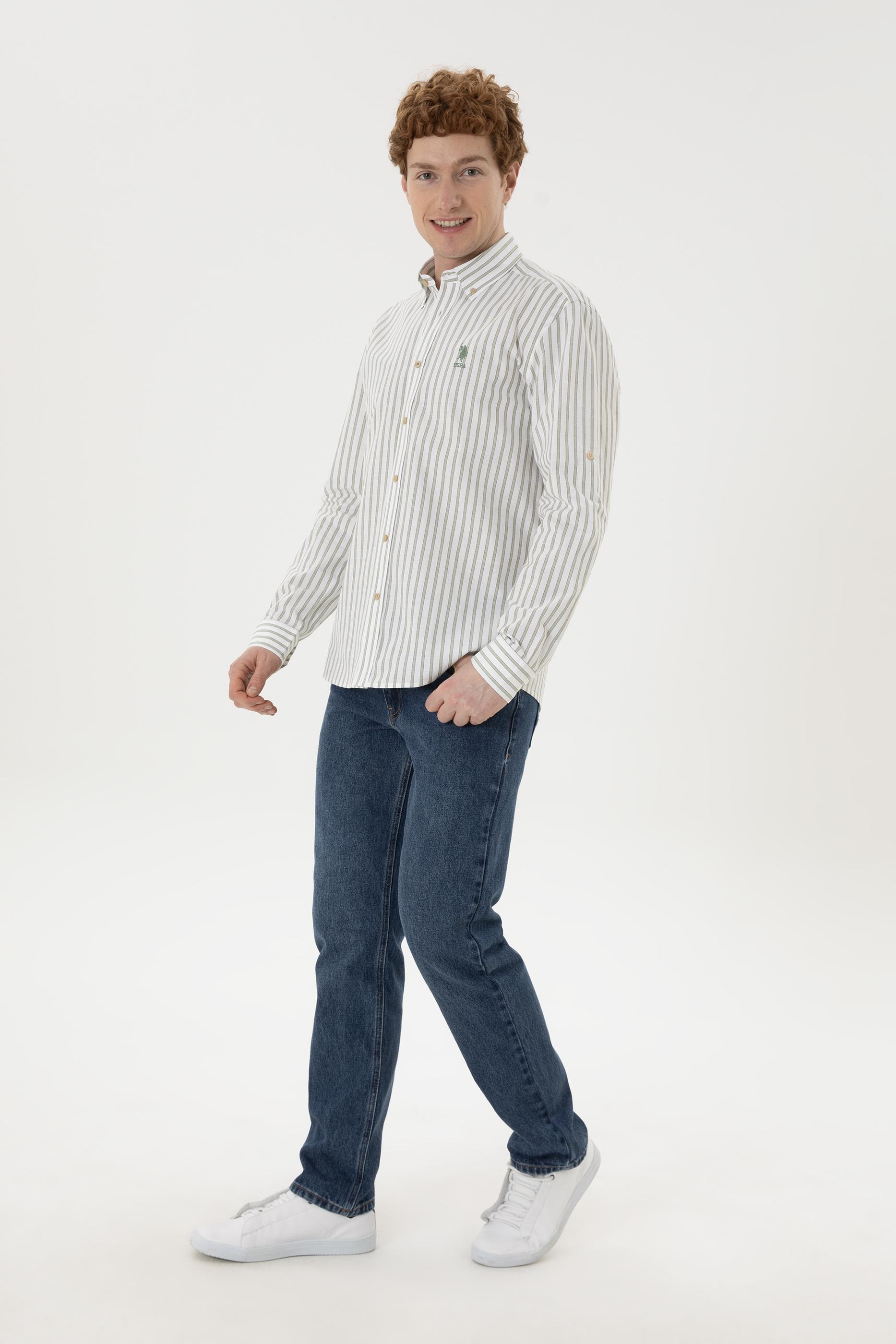 Erkek Yeşil Çizgili Beyaz Gömlek