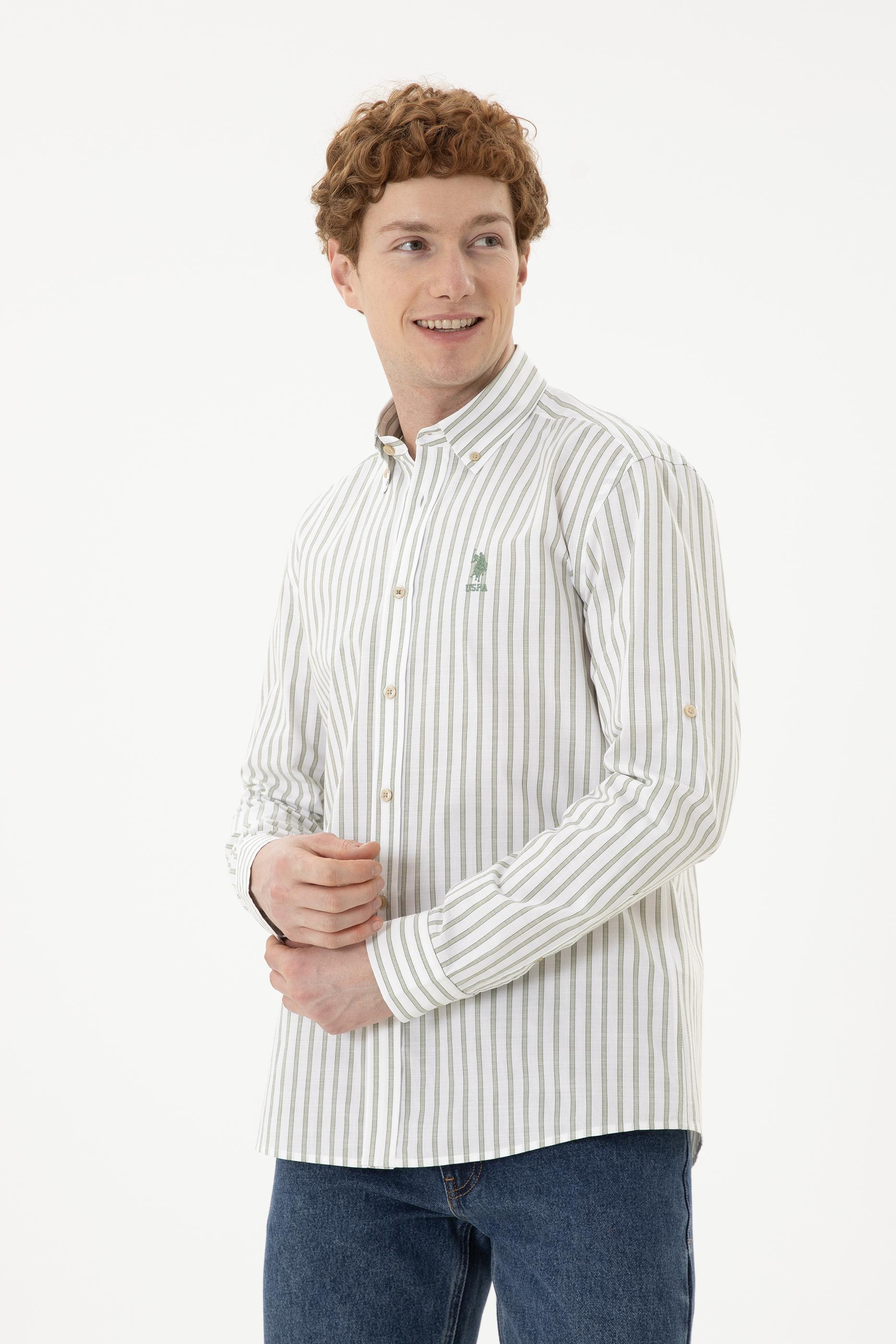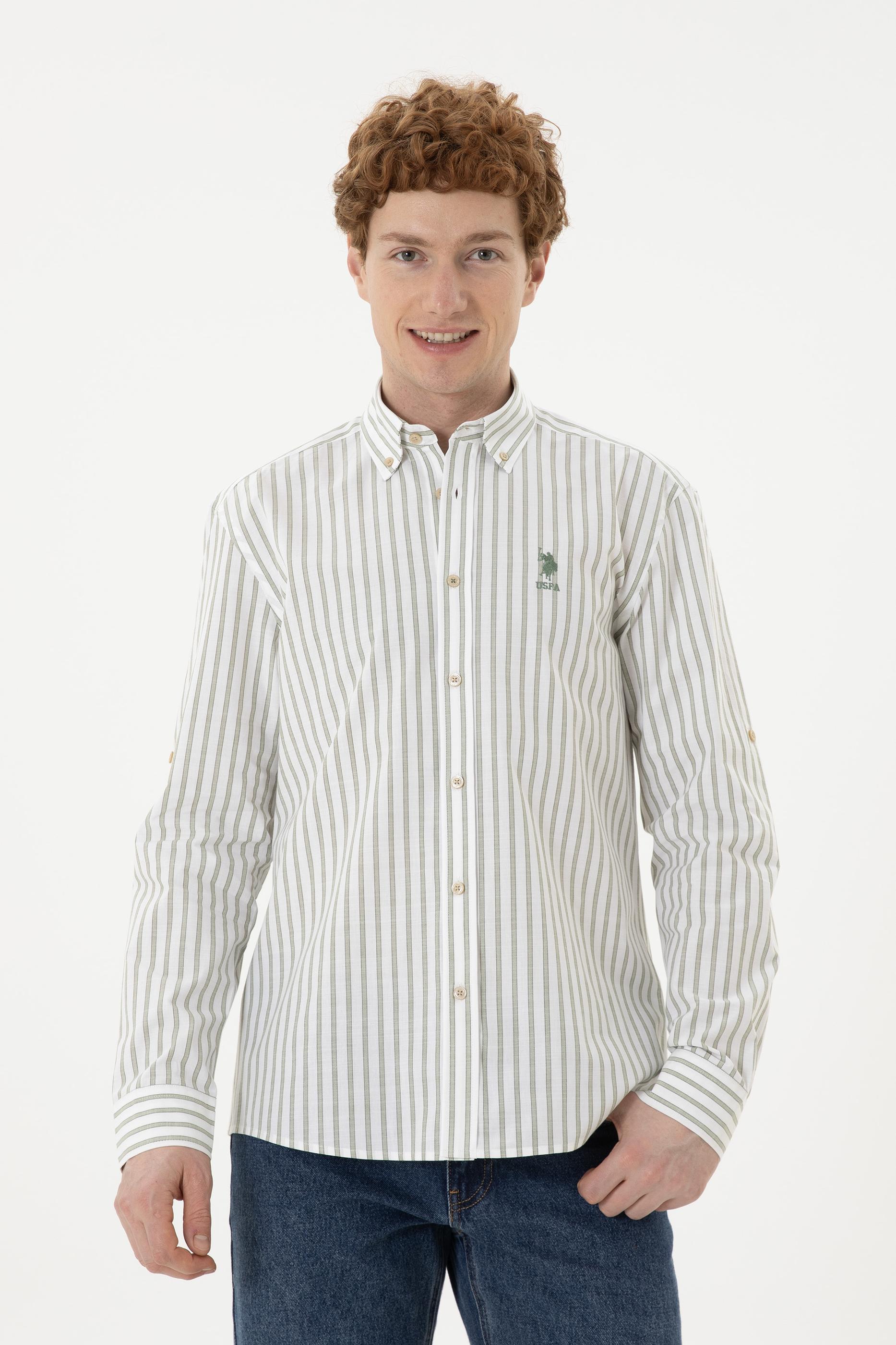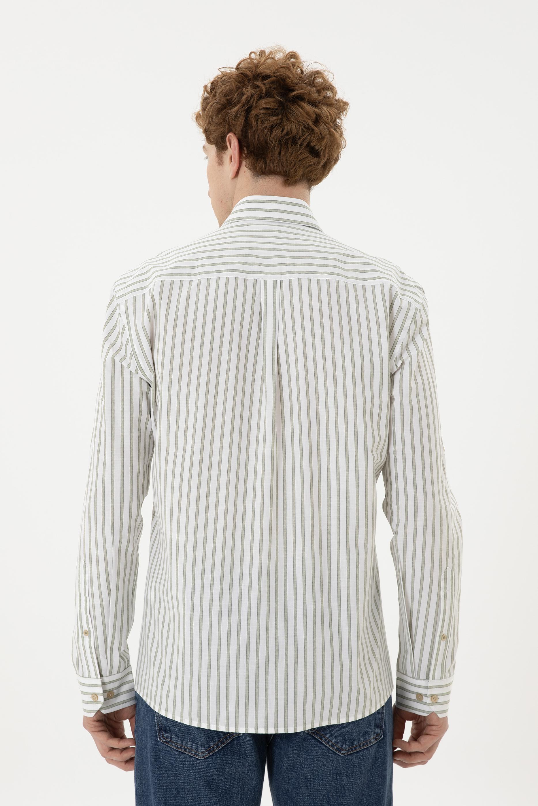 - Erkek Yeşil Çizgili Beyaz Gömlek