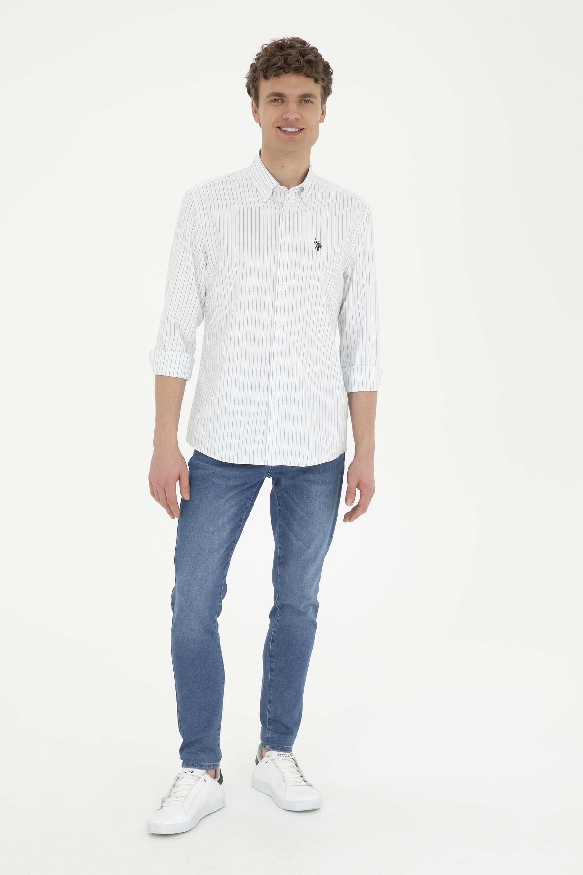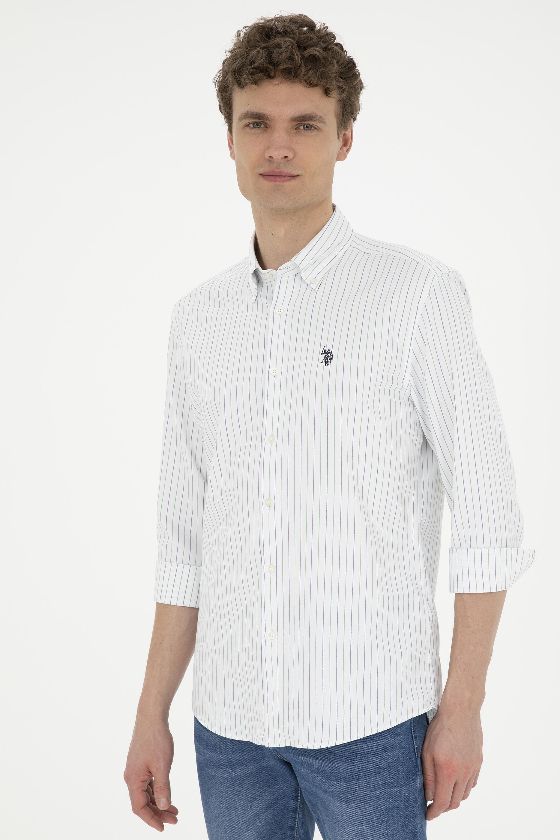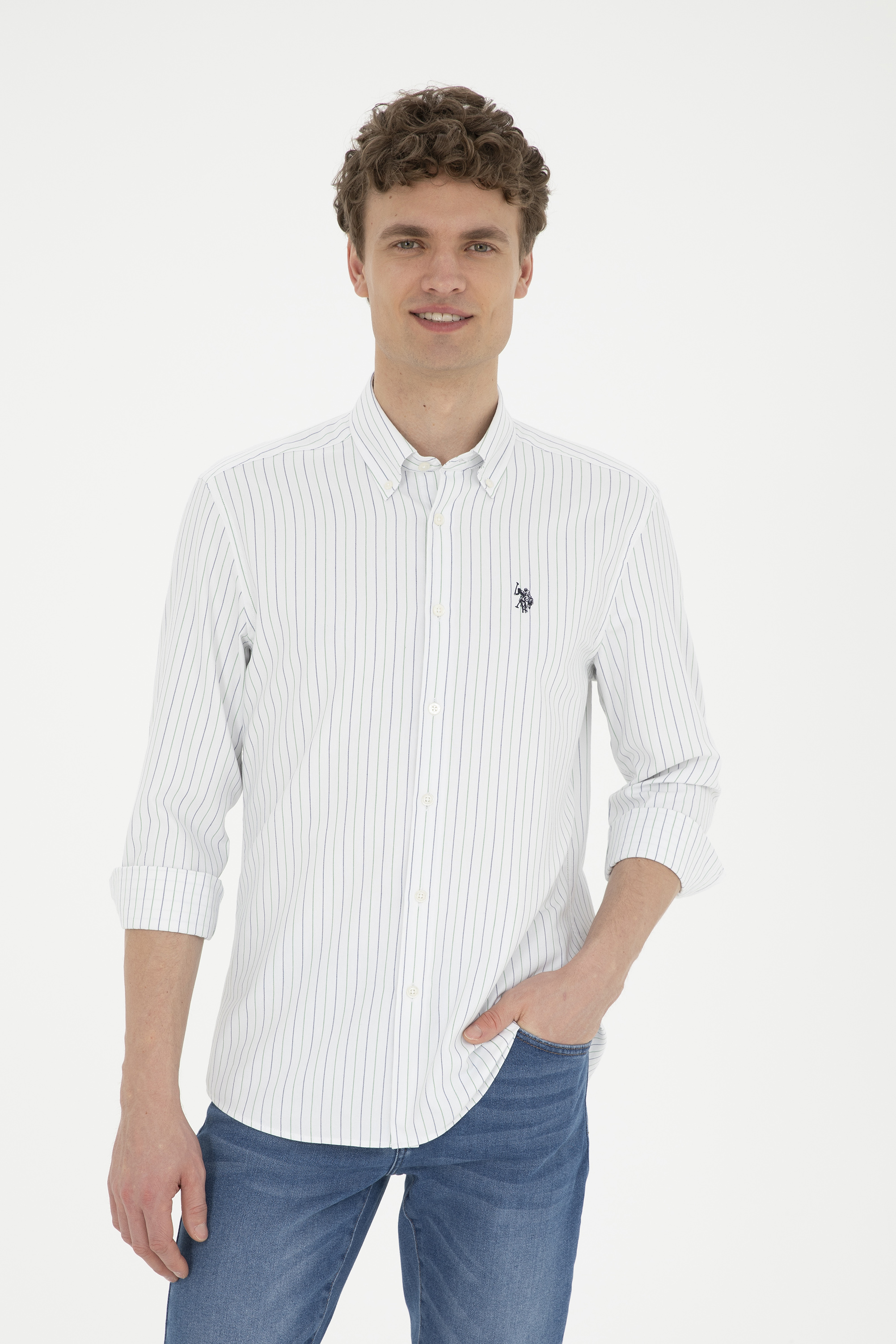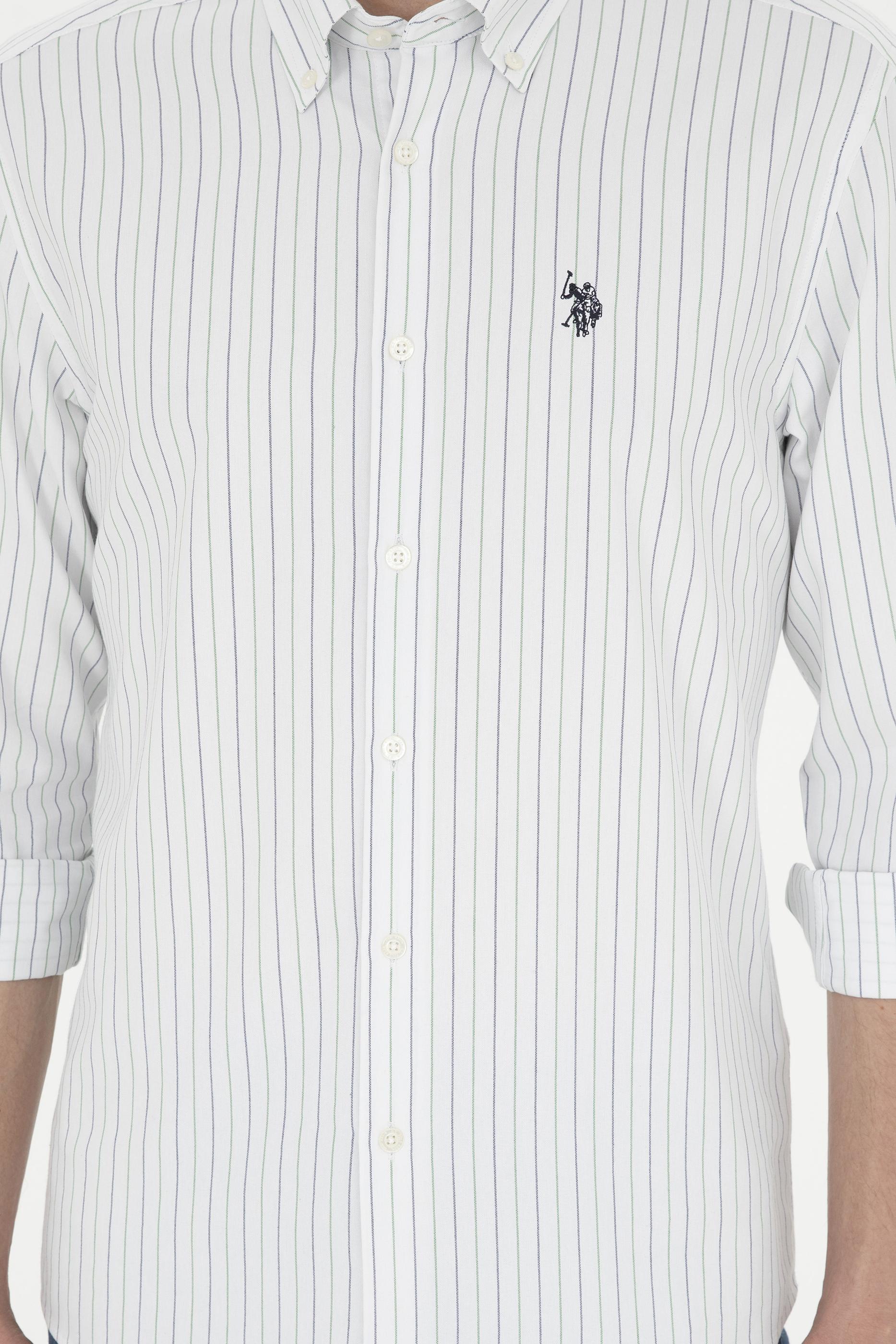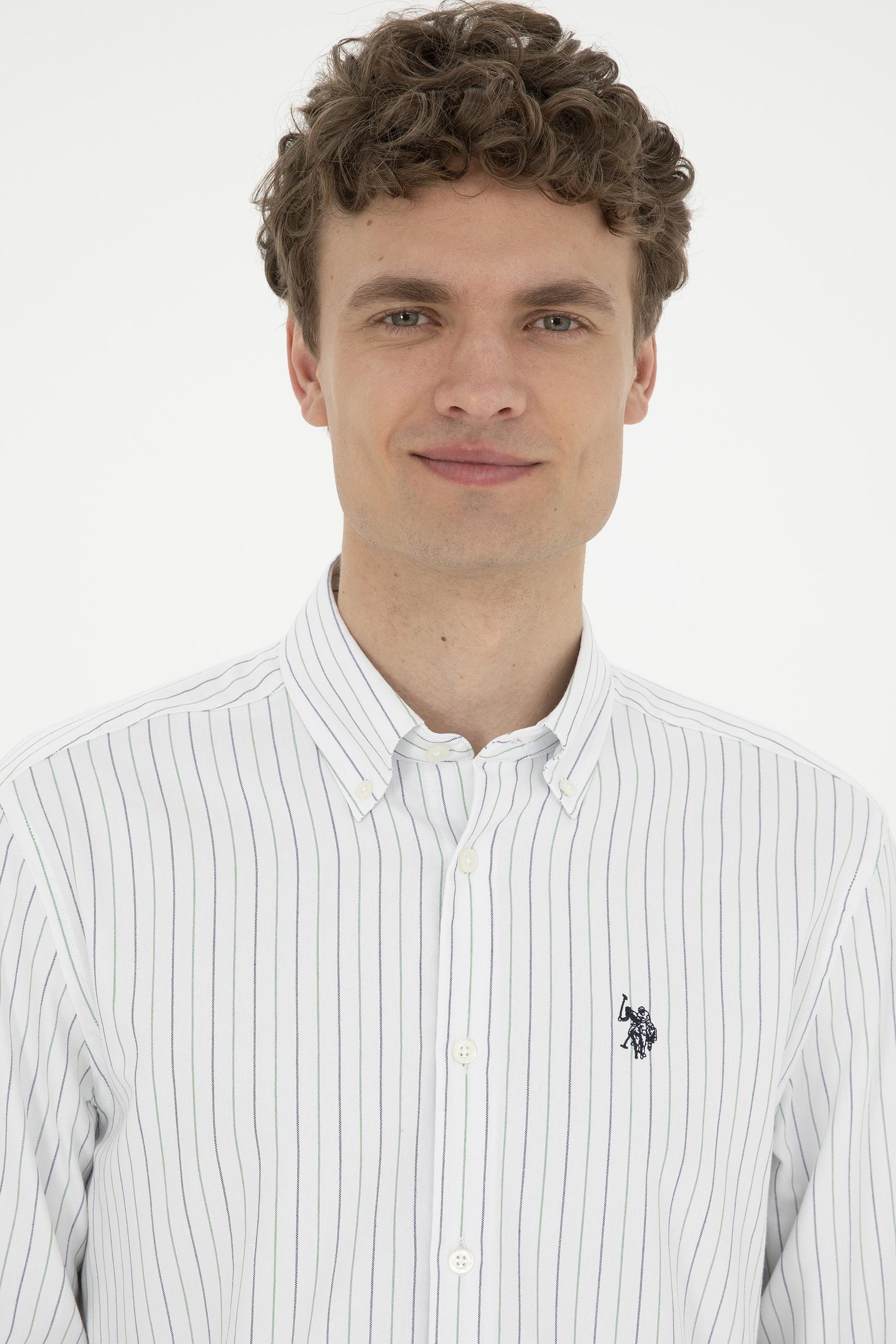 Erkek Yeşil Çizgili Beyaz Gömlek